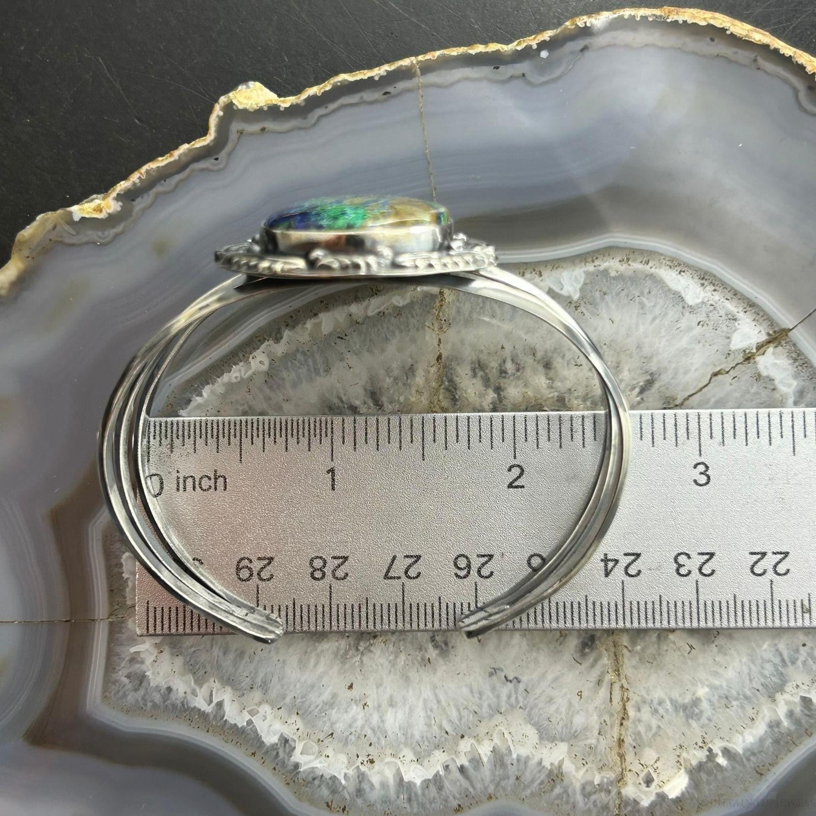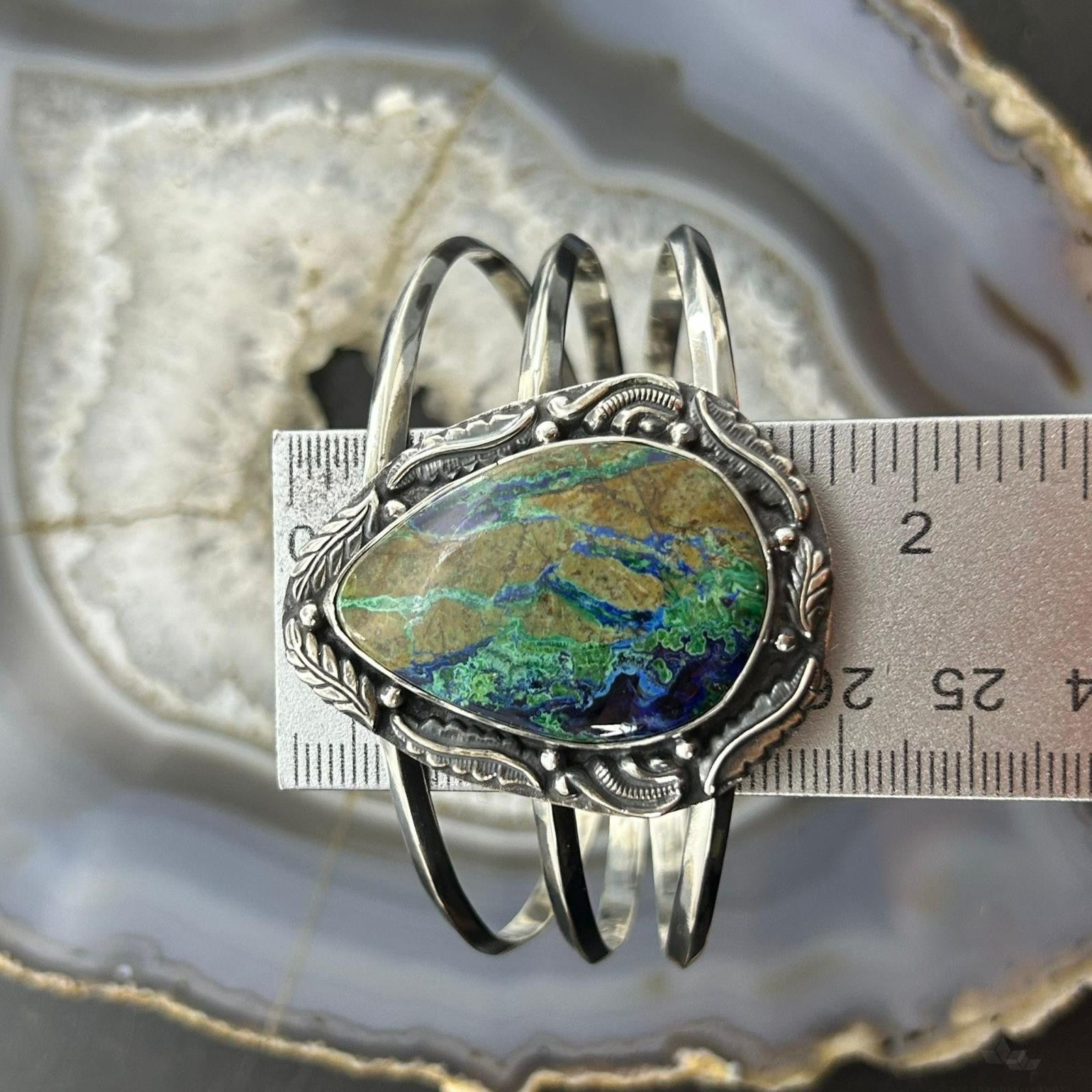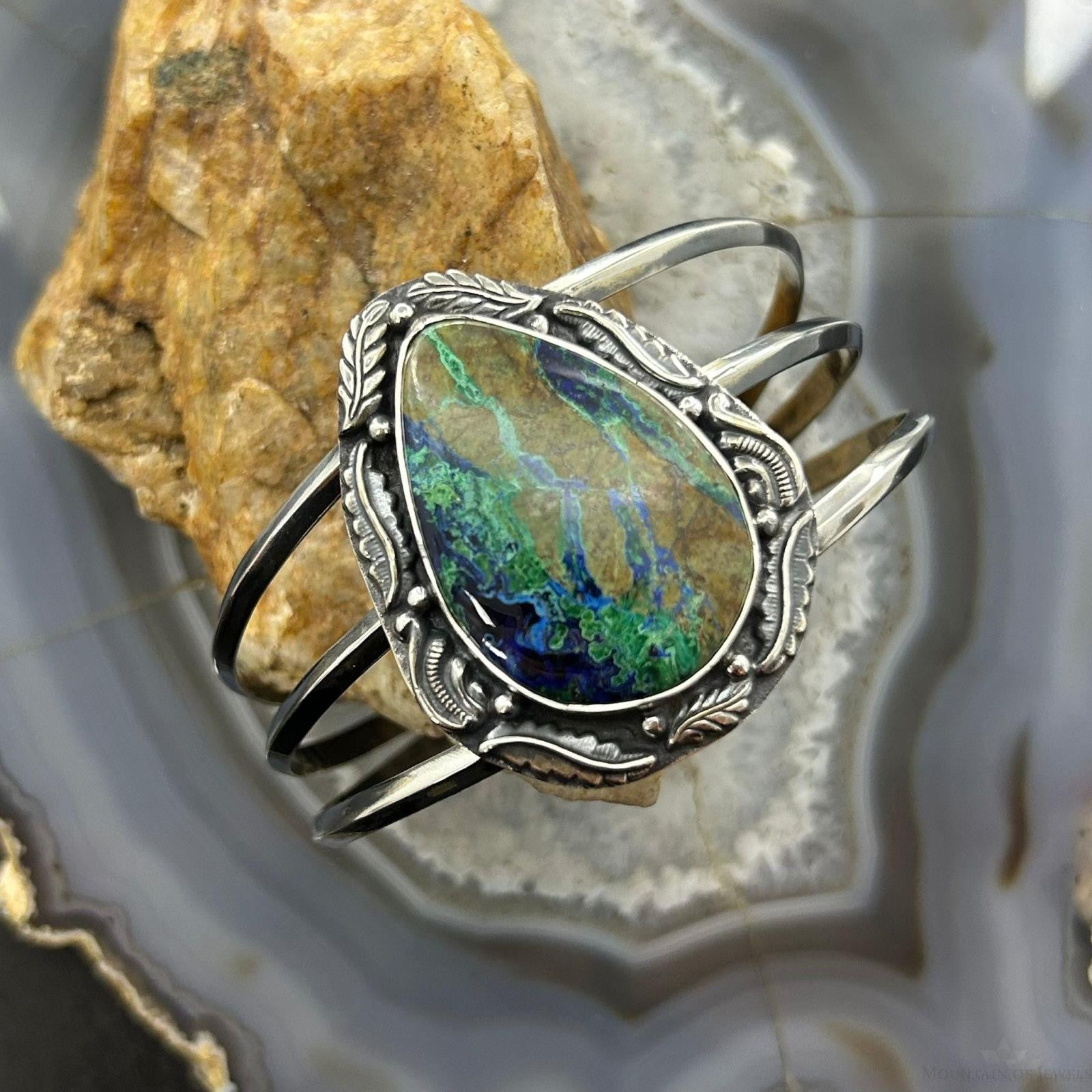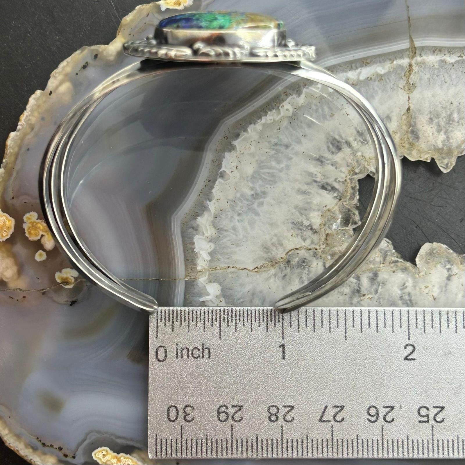 Sterling Silver Southwestern Style Large Teardrop Azurite Malachite Bracelet For Women