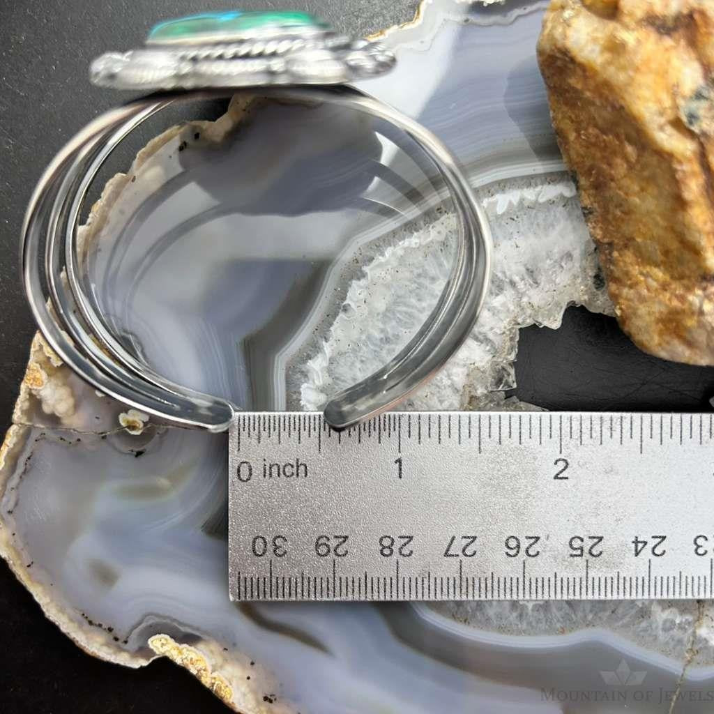 Sterling Silver Southwestern Style Large Teardrop Azurite Malachite Bracelet For Women