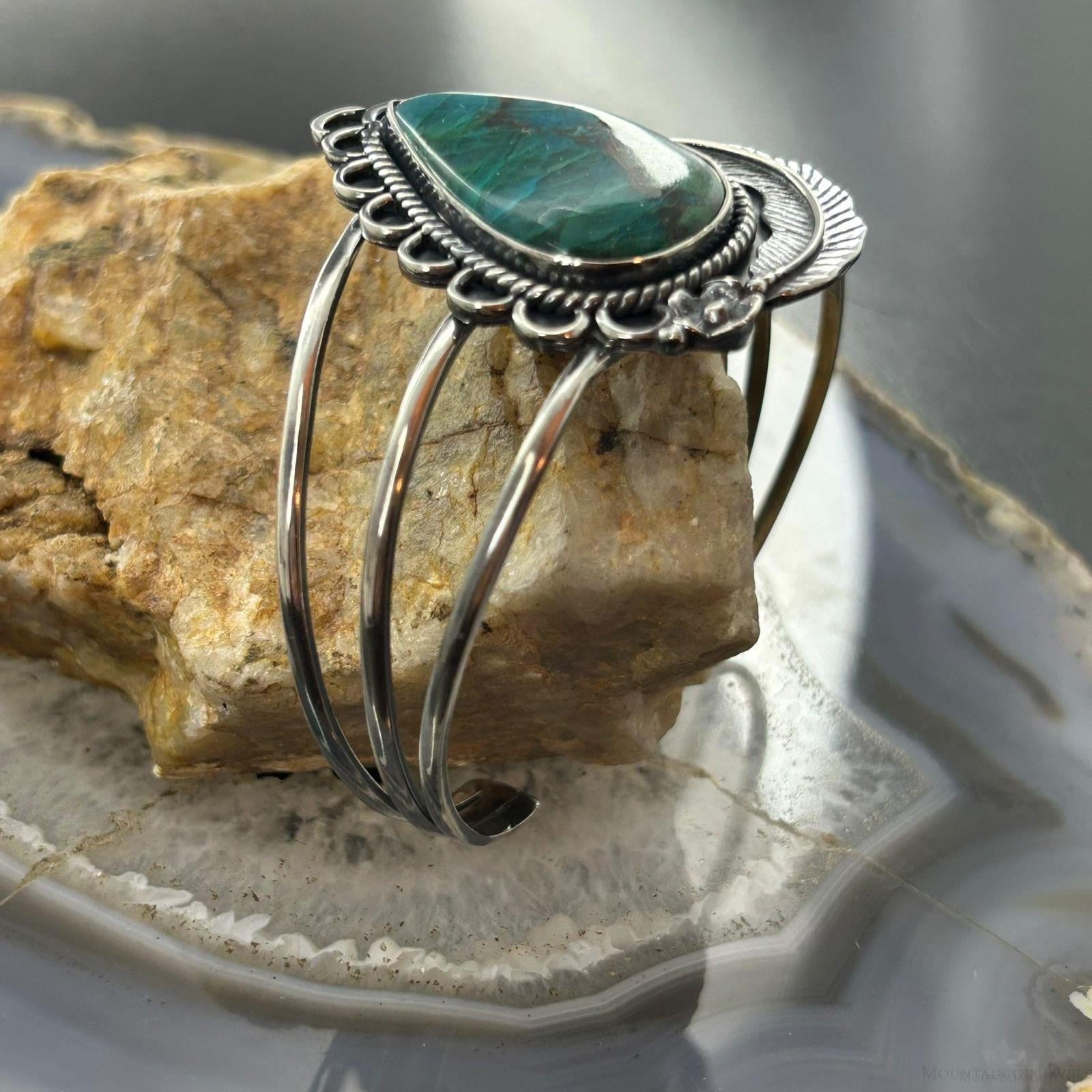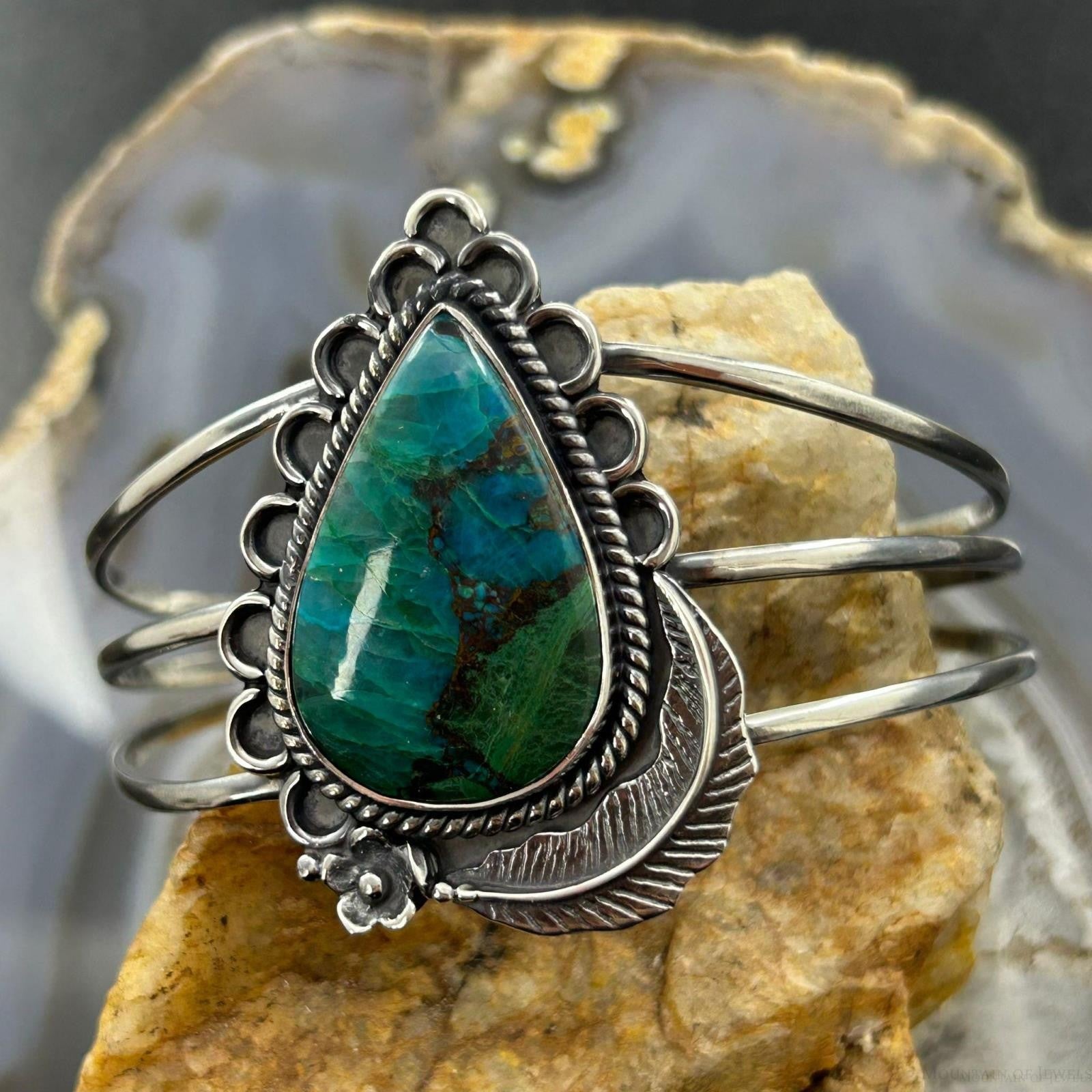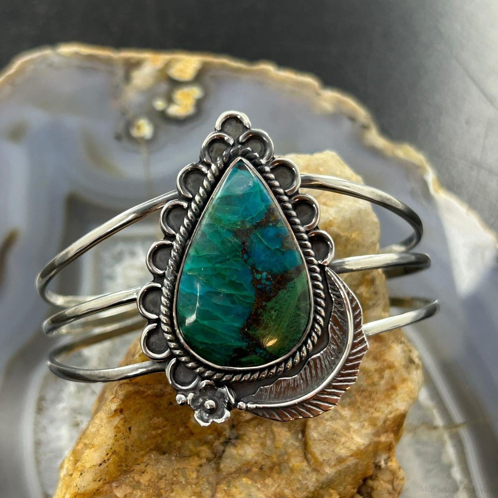 Sterling Silver Southwestern Style Large Teardrop Shattuckite Bracelet For Women #1