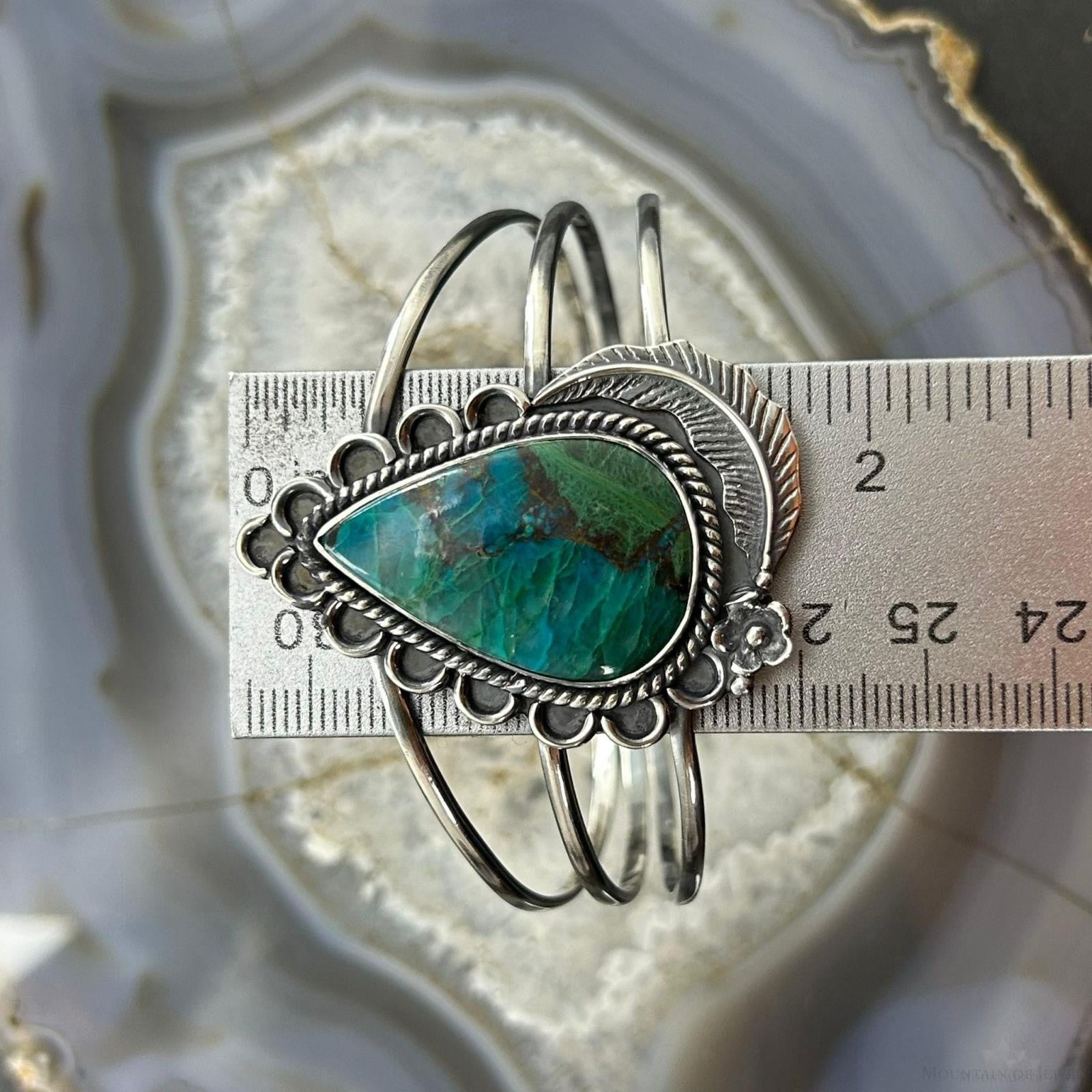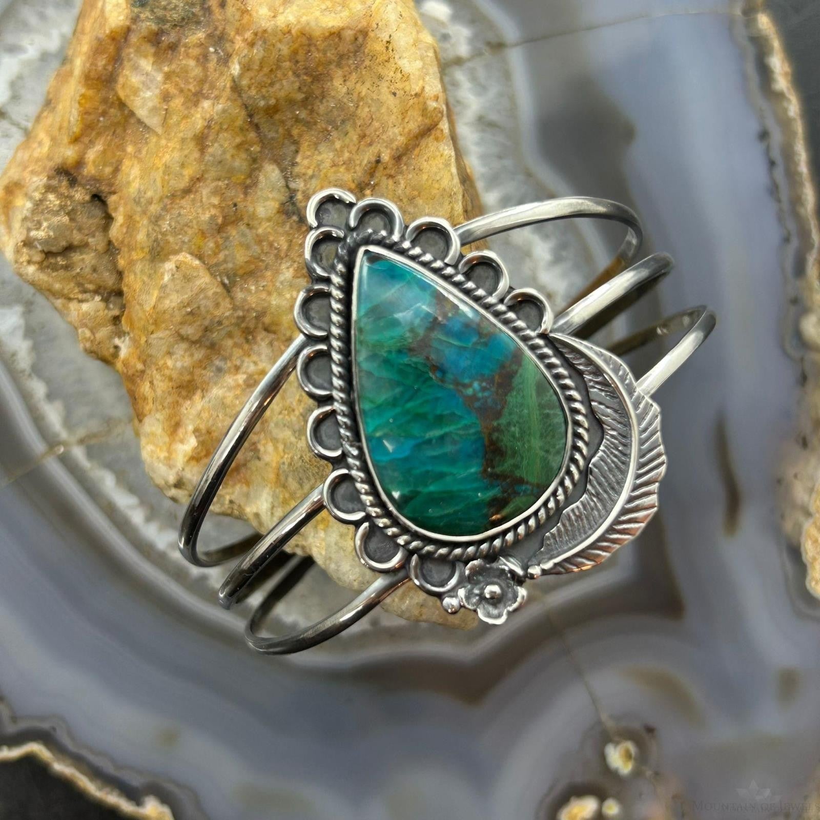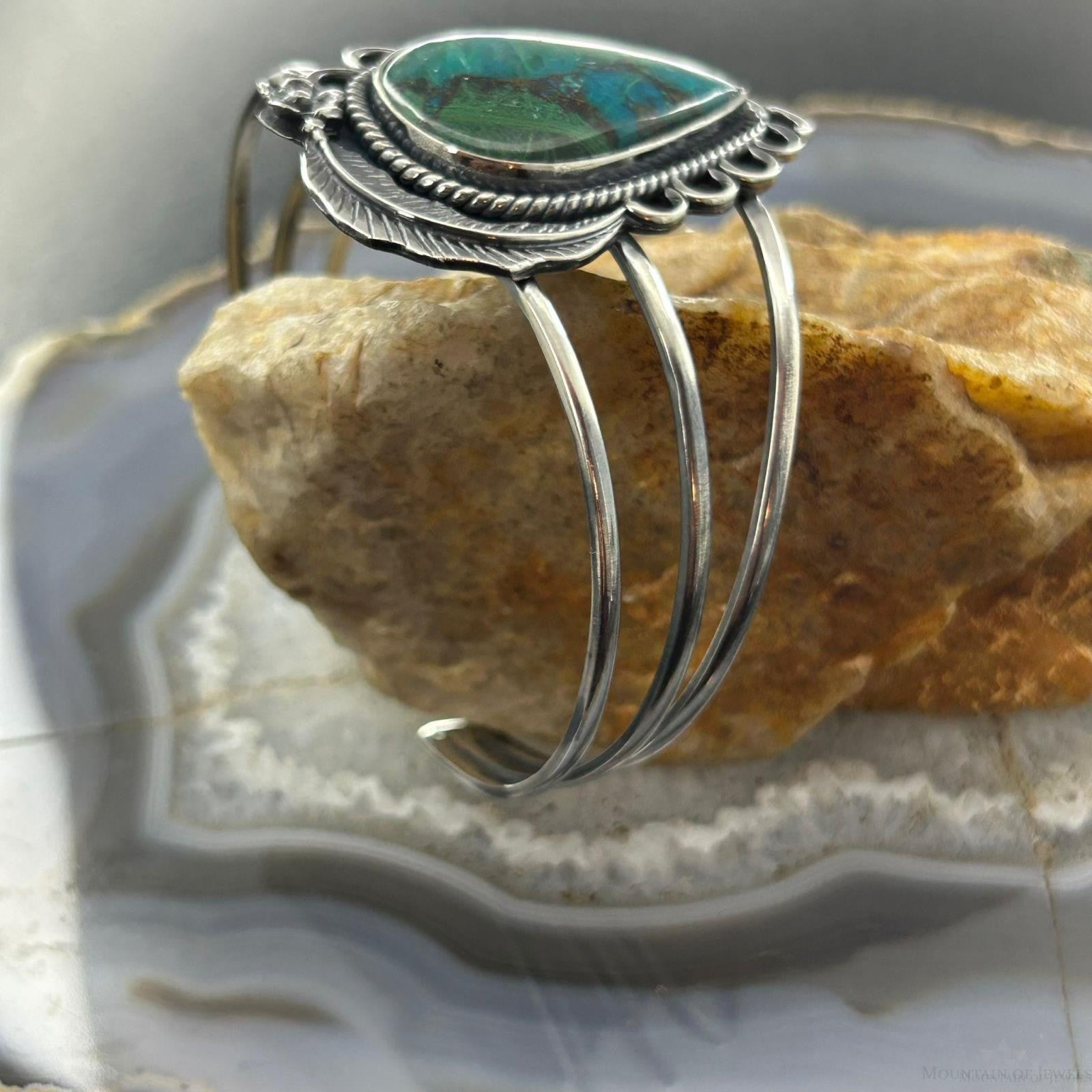 Sterling Silver Southwestern Style Large Teardrop Shattuckite Bracelet For Women #1