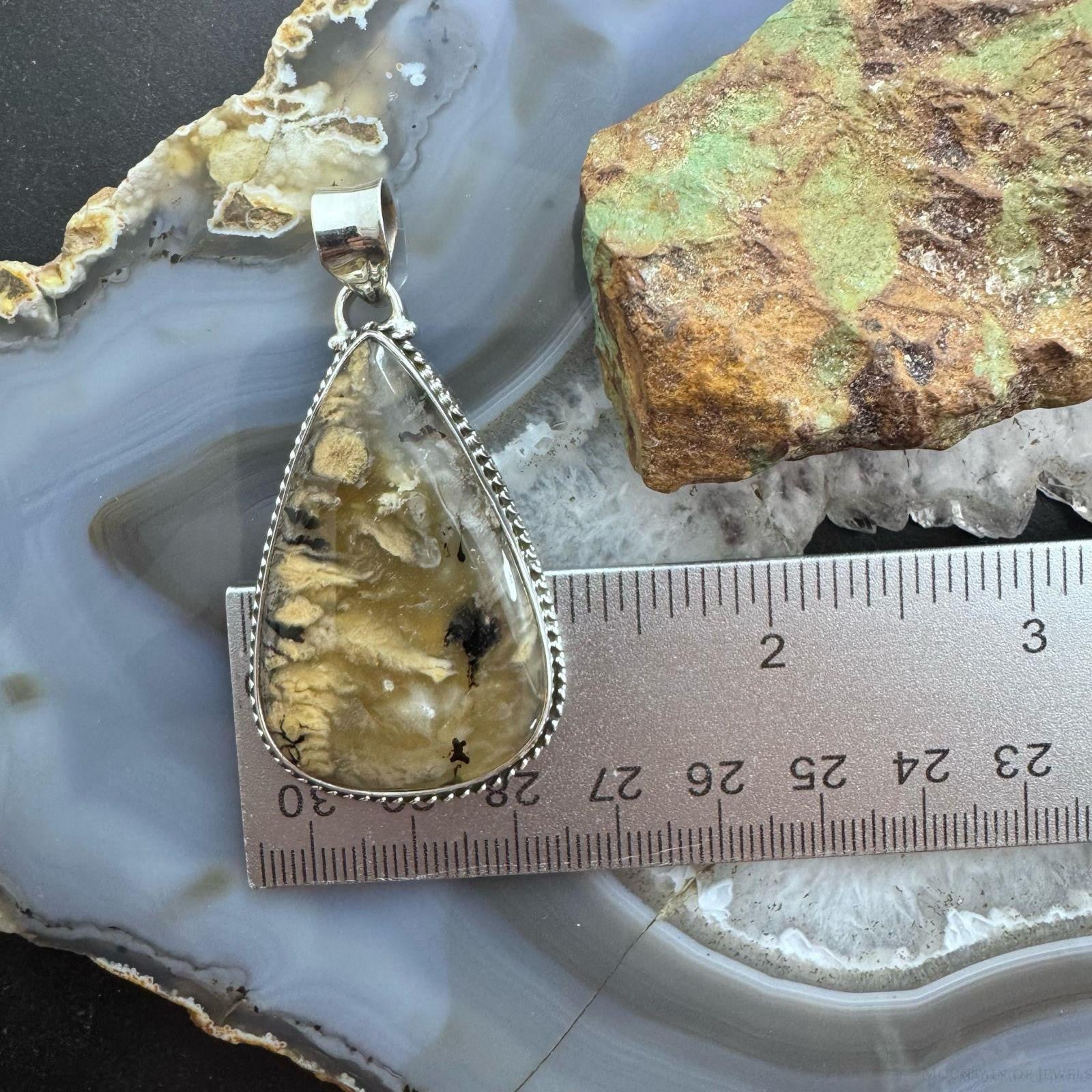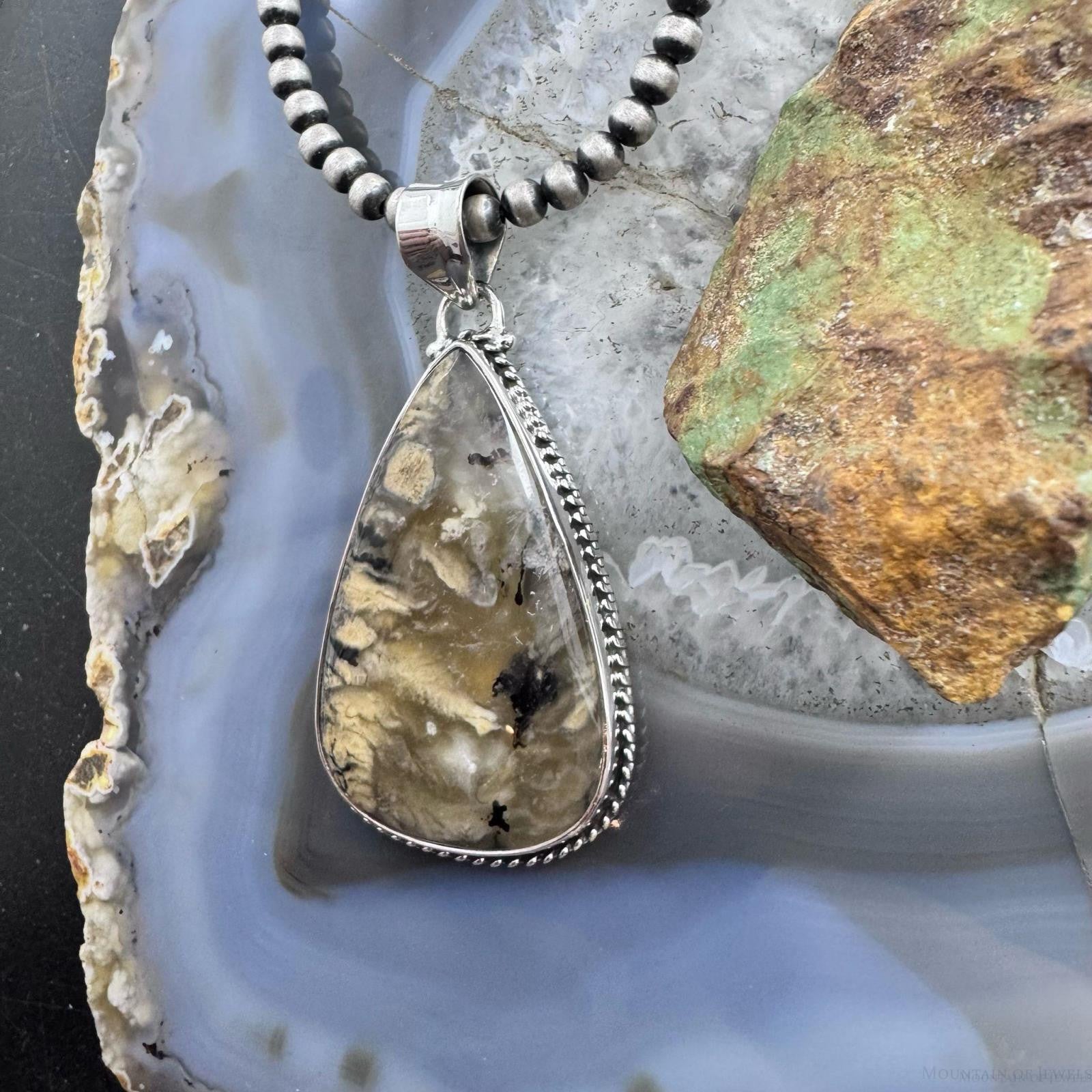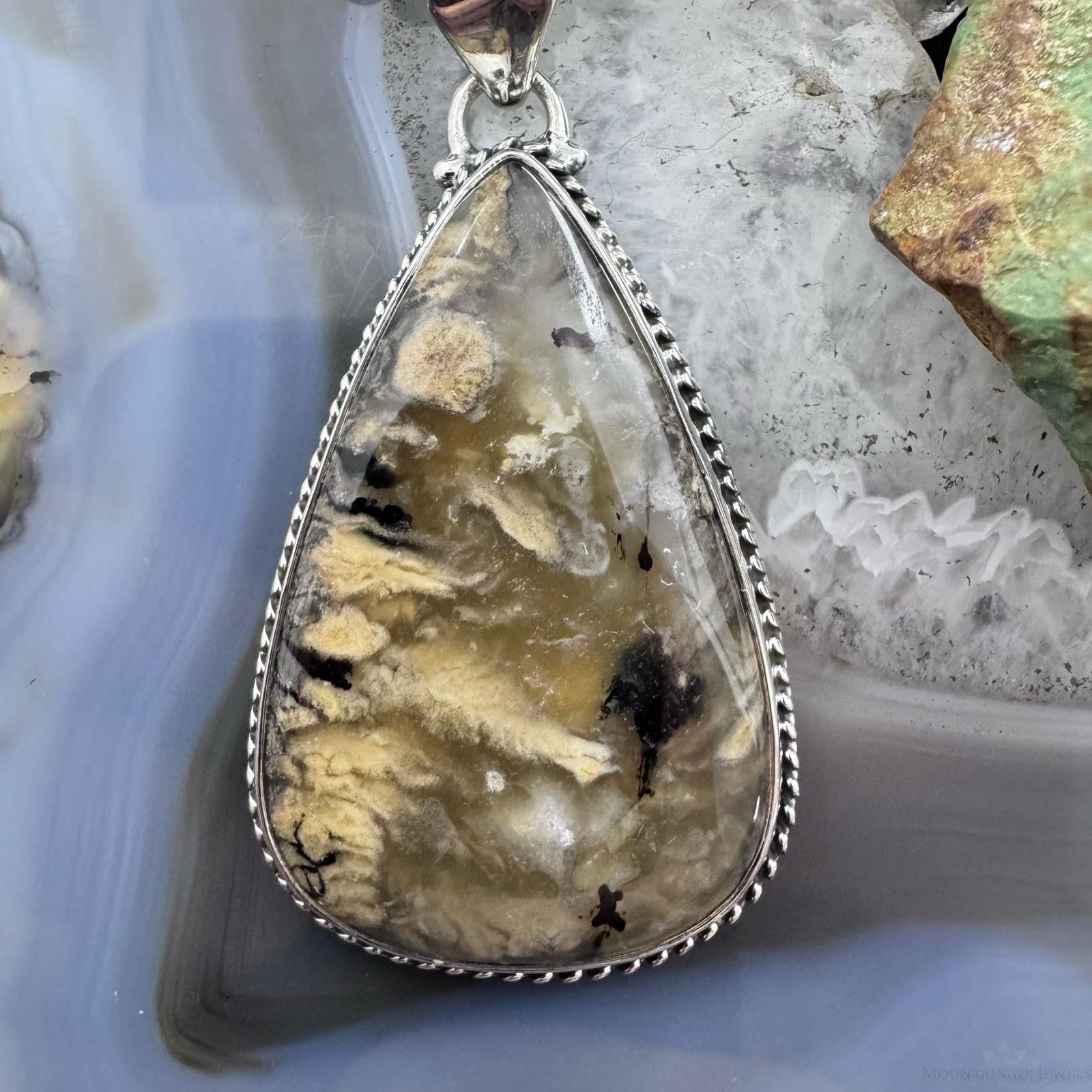 Sterling Silver Southwestern Style Large Teardrop Tiger Dendrite Agate Unisex Pendant
