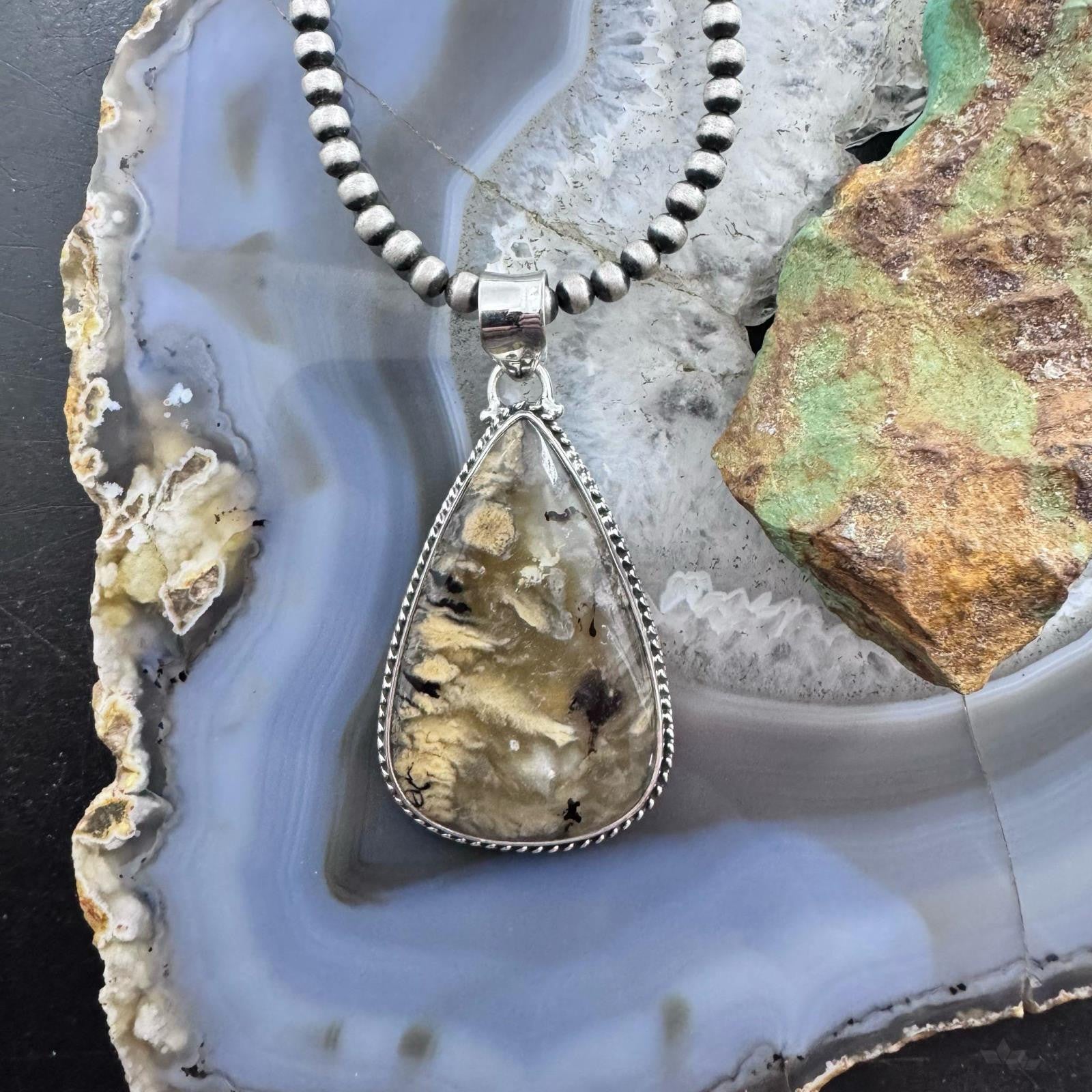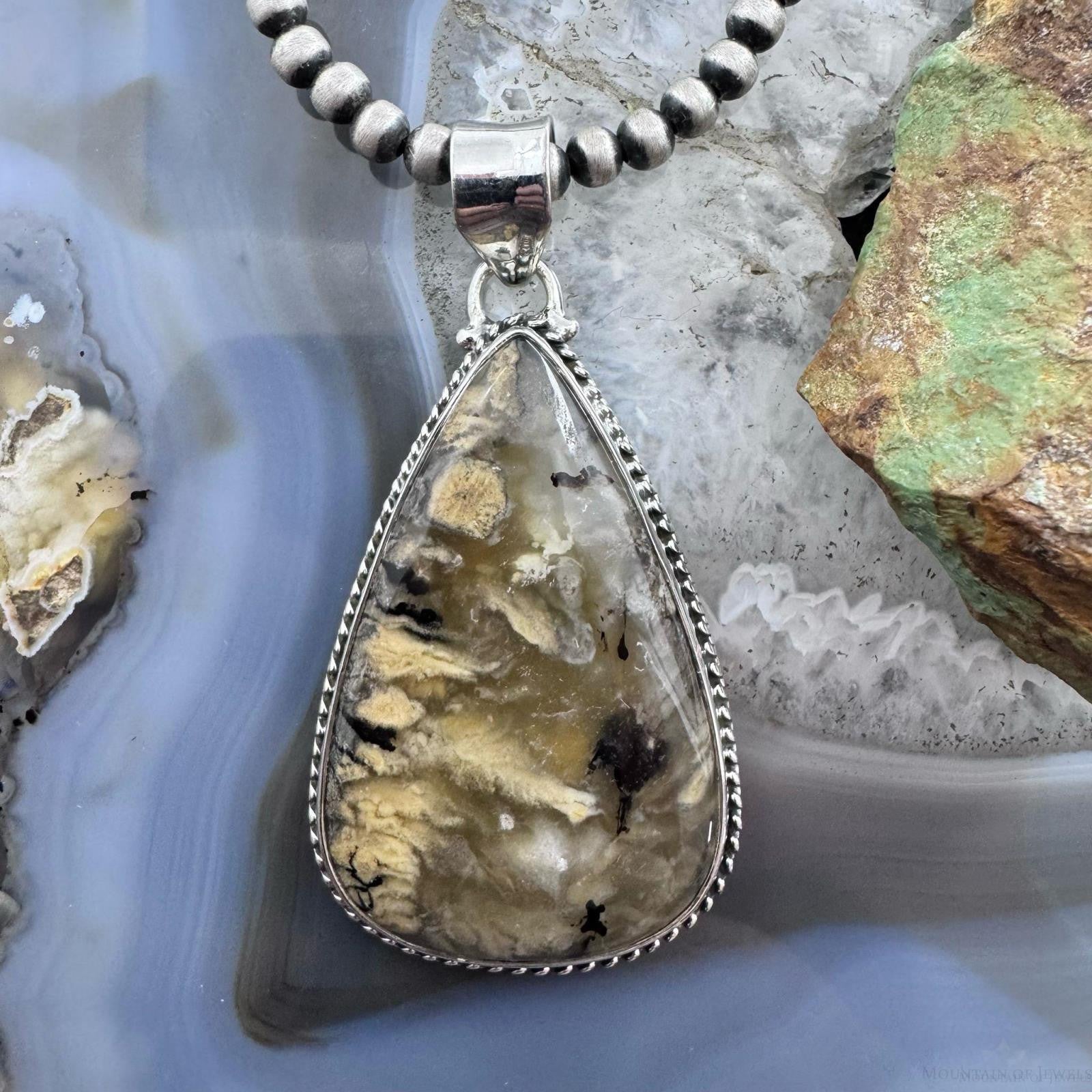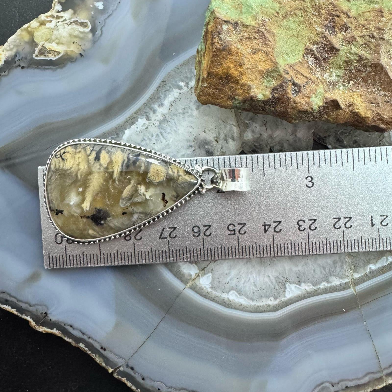 Sterling Silver Southwestern Style Large Teardrop Tiger Dendrite Agate Unisex Pendant