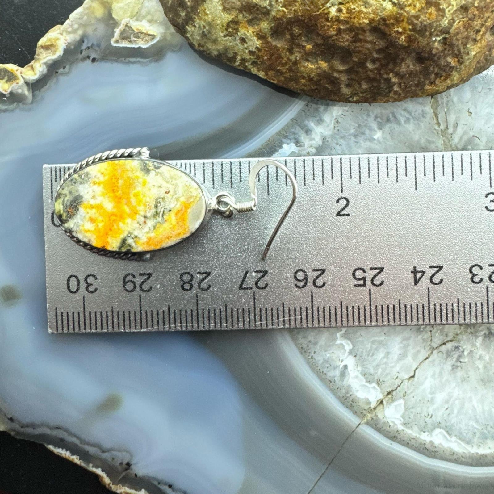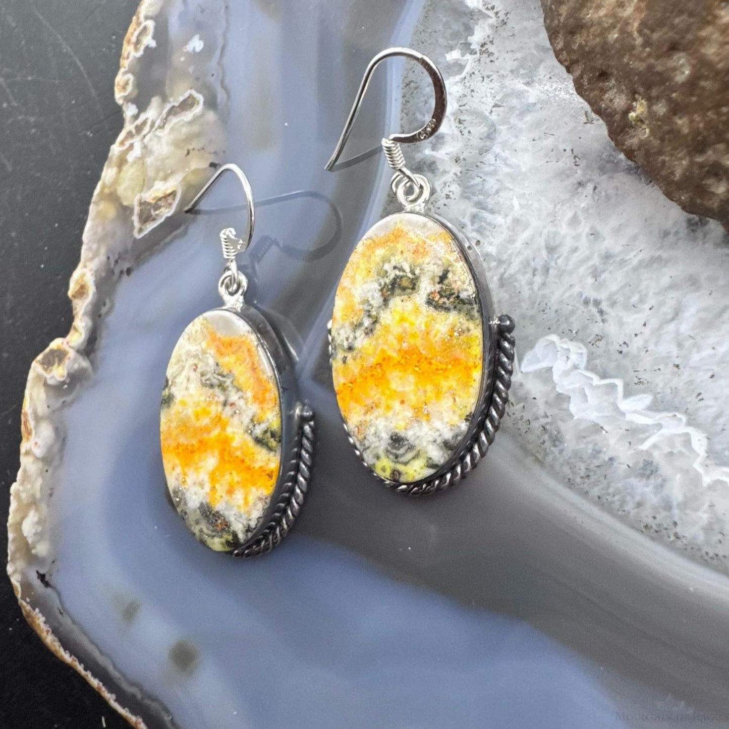 Sterling Silver Southwestern Style Large Oval Bumblebee Jasper Dangle Earrings For Women