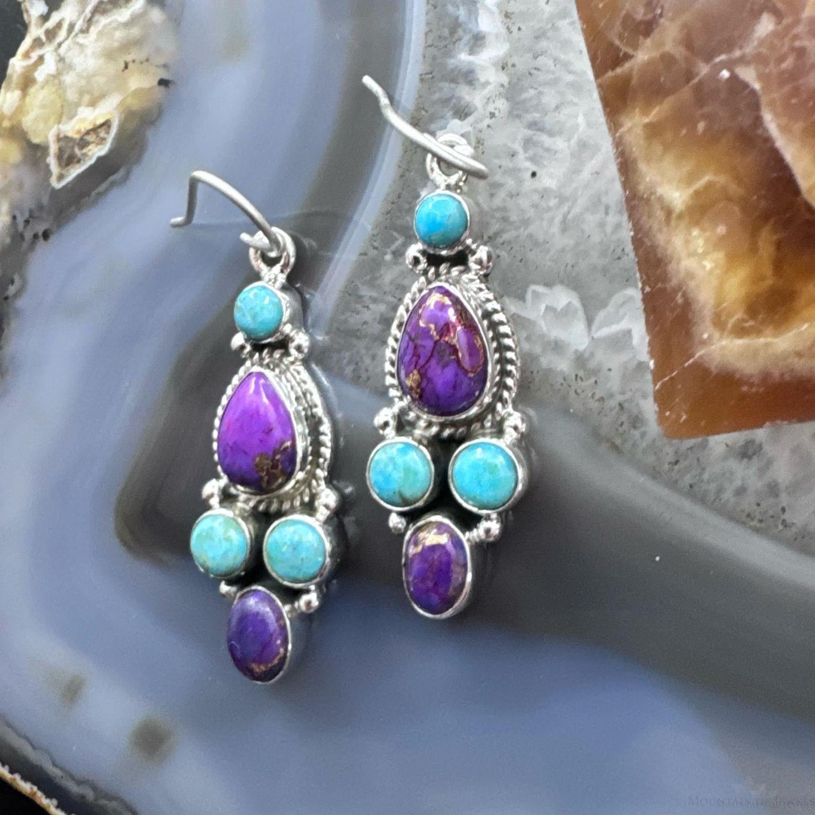 Sterling Silver Southwestern Style Multistone Cluster Dangle Earrings For Women #10