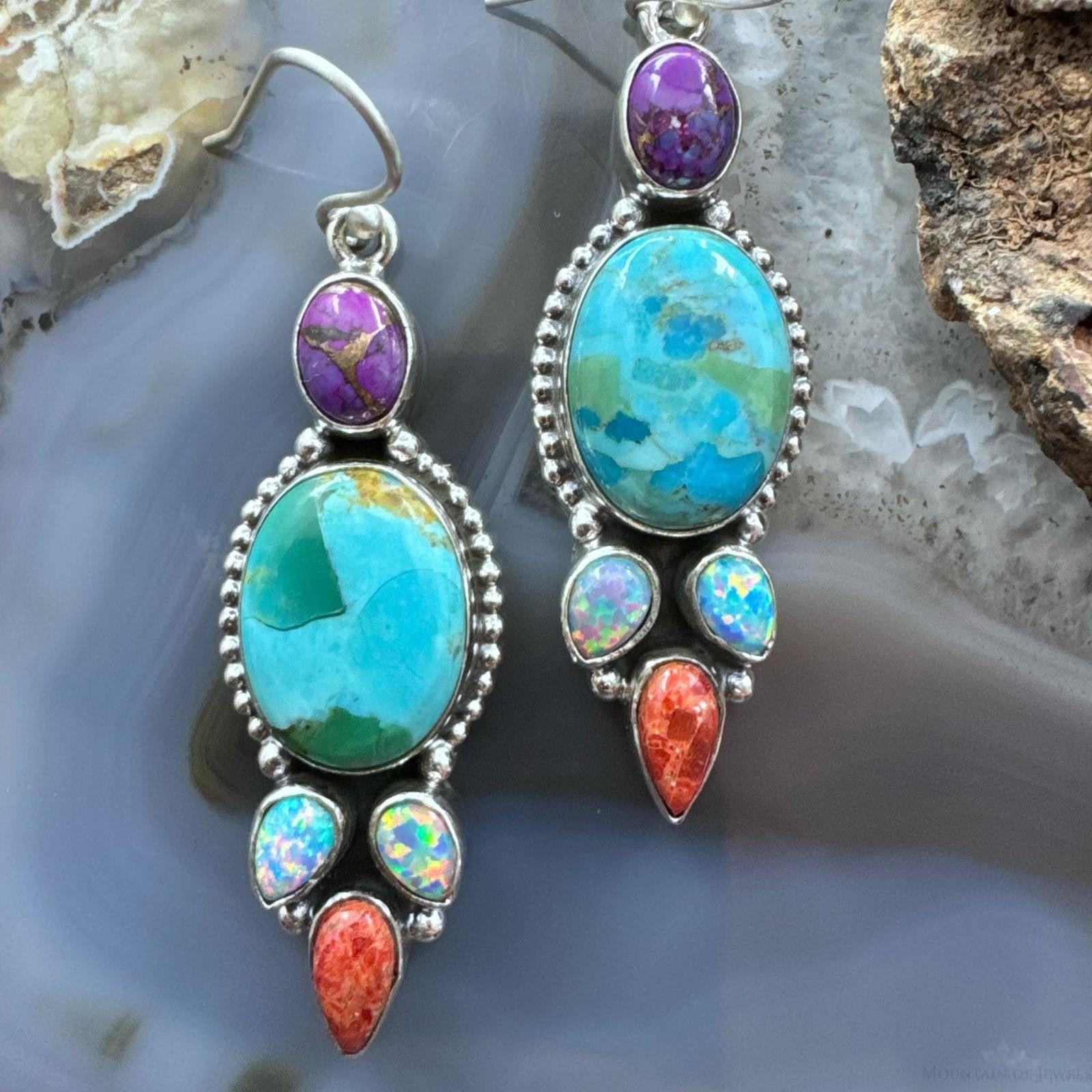 Sterling Silver Southwestern Style Multistone Cluster Dangle Earrings For Women #15