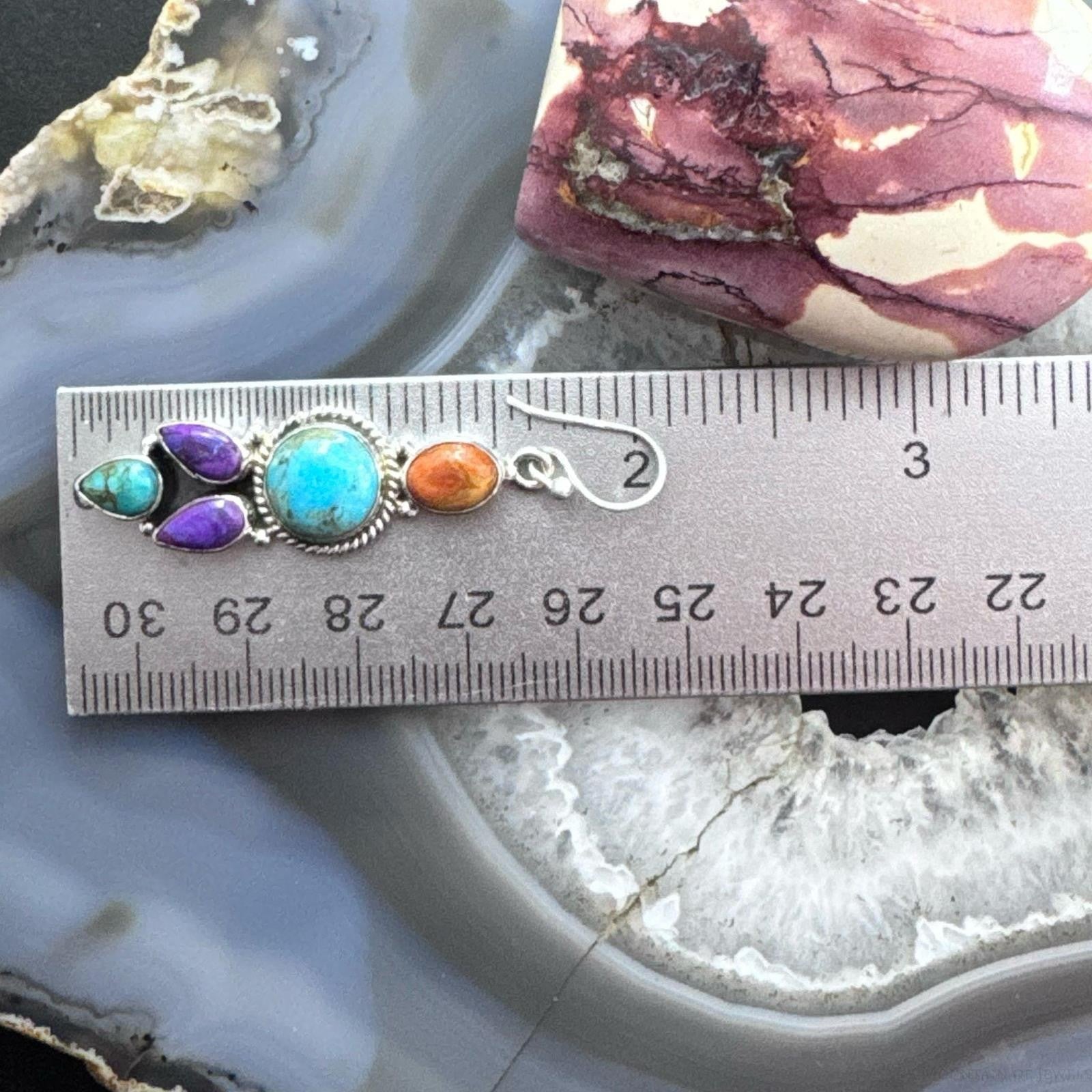 Sterling Silver Southwestern Style Multistone Cluster Dangle Earrings For Women #19