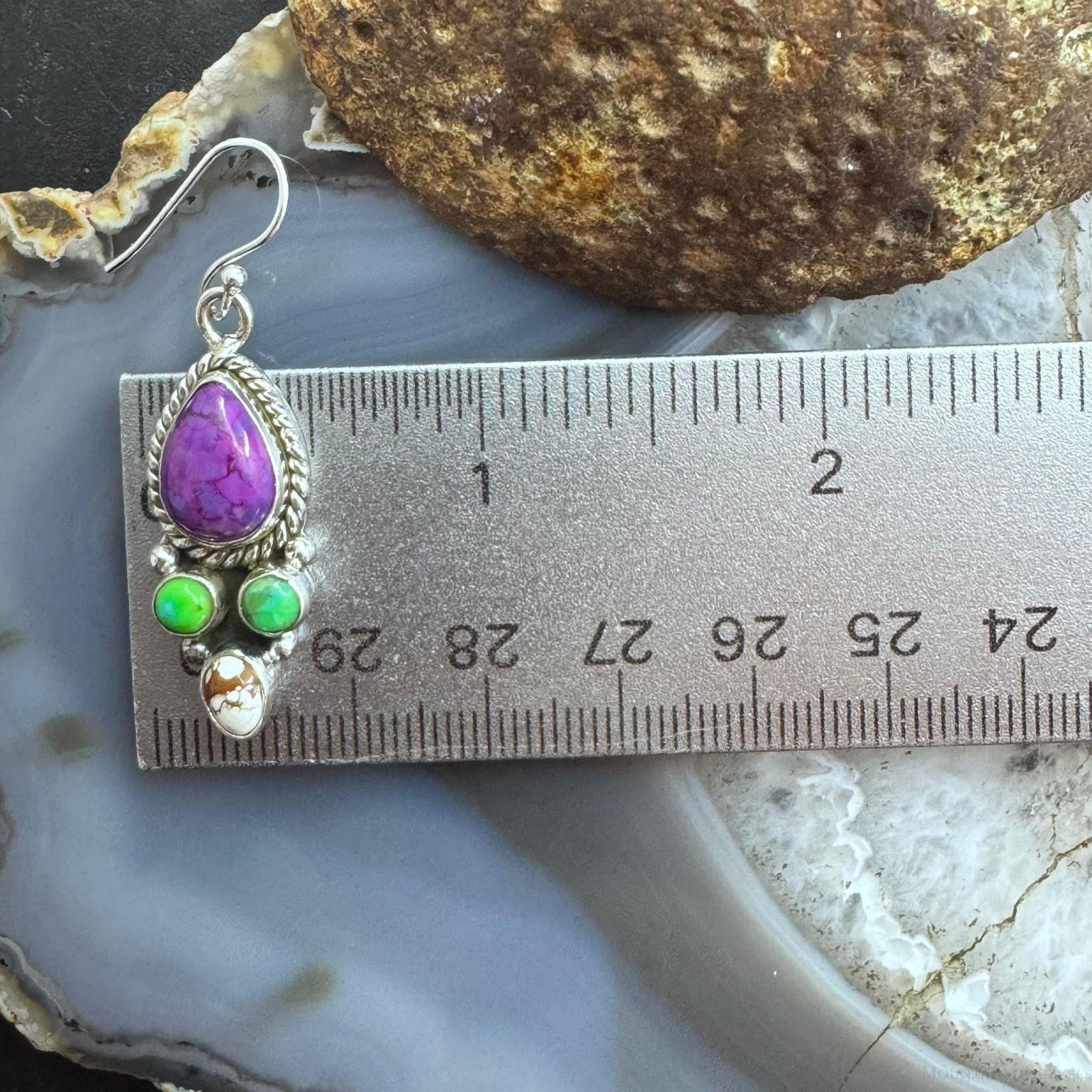 Sterling Silver Southwestern Style Multistone Cluster Dangle Earrings For Women #2