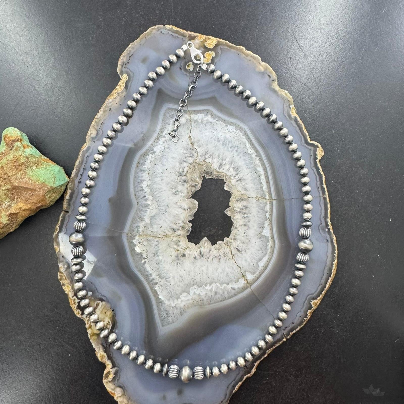 Sterling Silver Southwestern Style Navajo Pearl Beads 2-8 mm Necklace 18"-20" For Women
