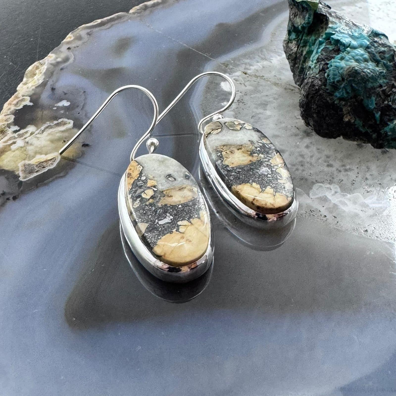 Sterling Silver Southwestern Style Oval Maligano Jasper Dangle Earrings For Women