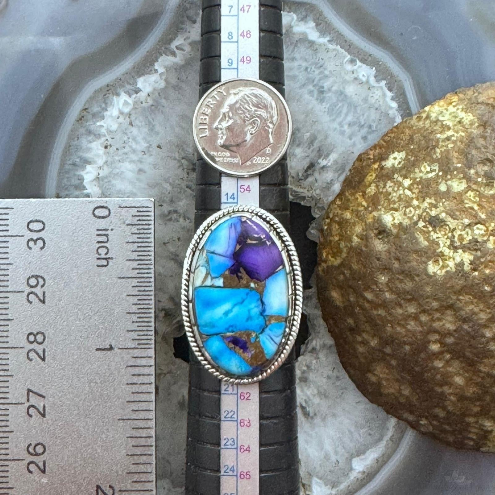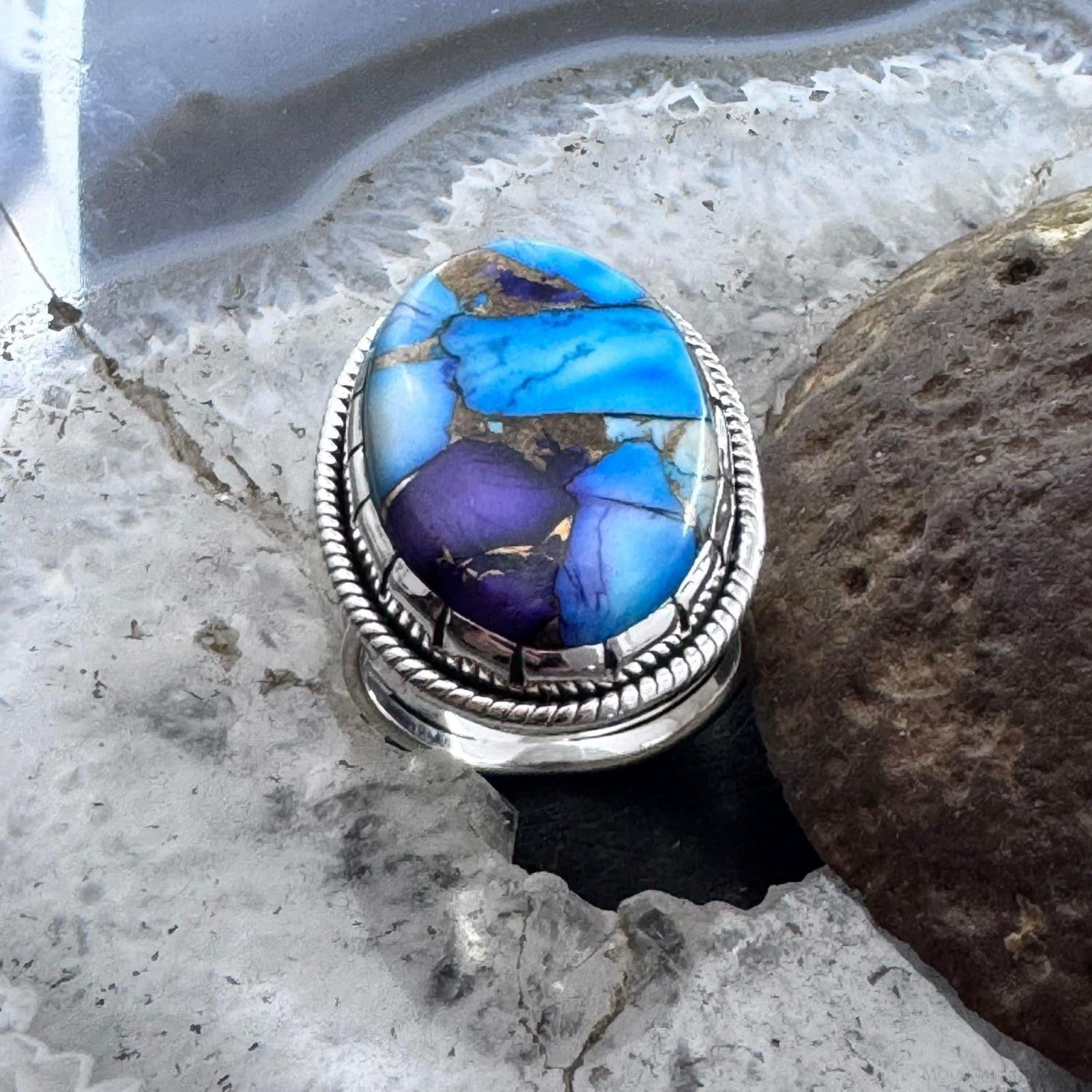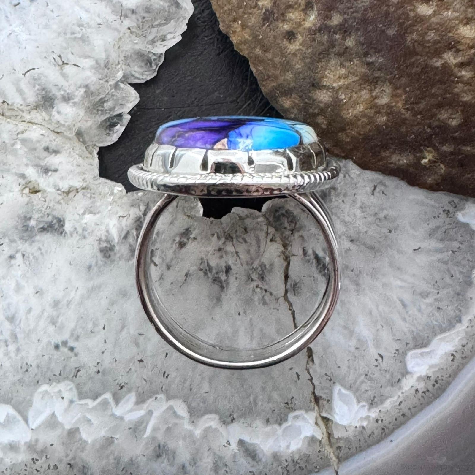 Sterling Silver Southwestern Style Oval Purple Spiny Turquoise Ring Size 8.5 For Women
