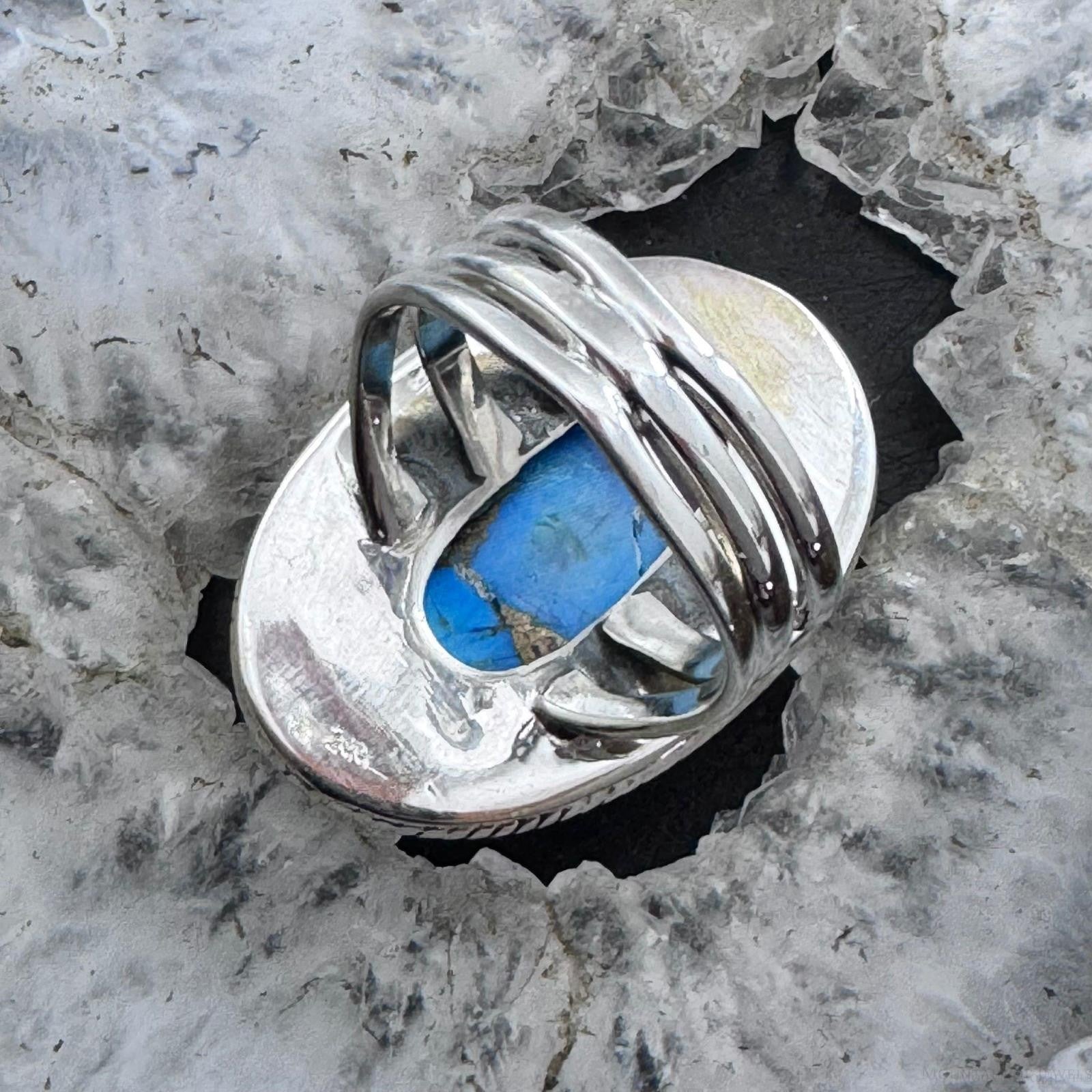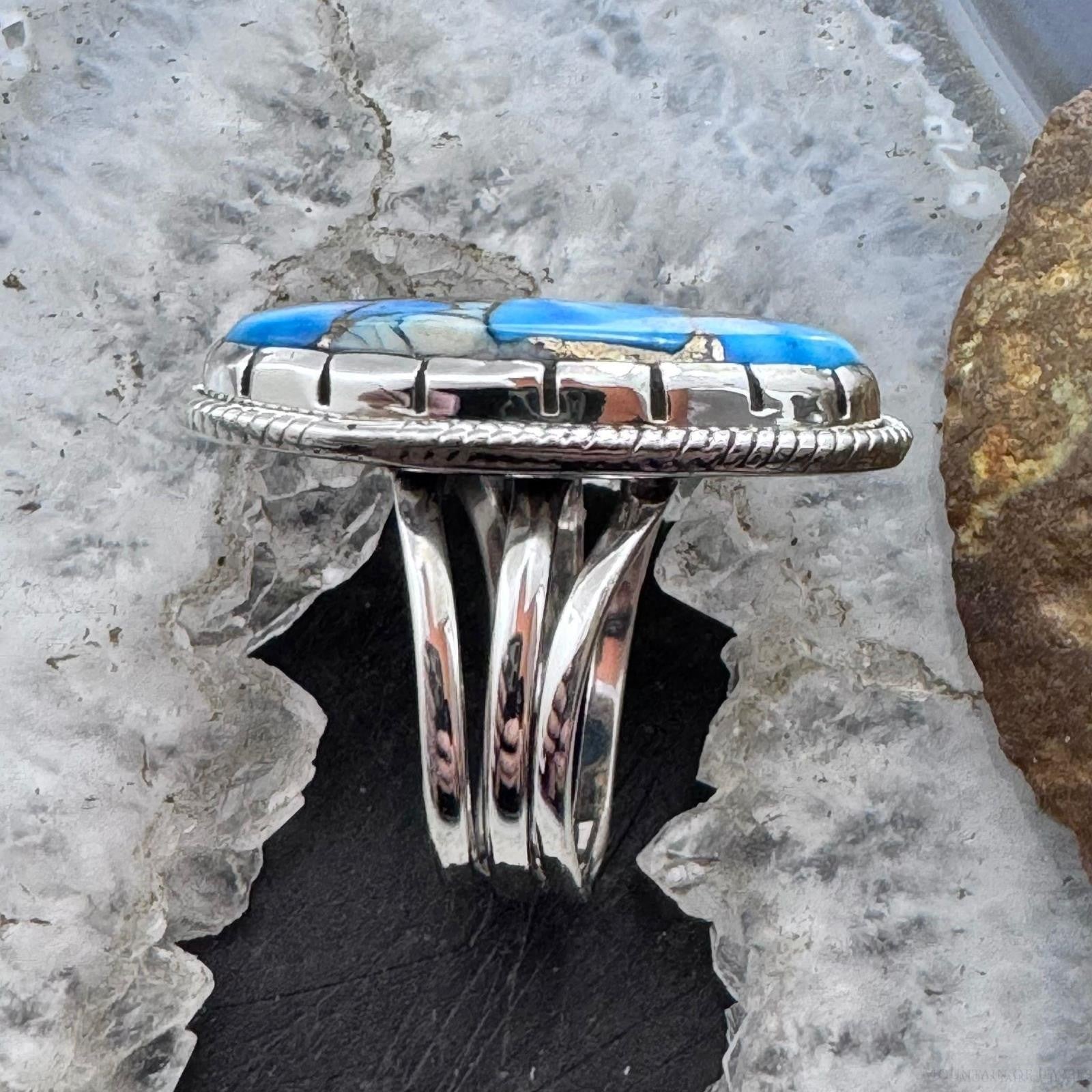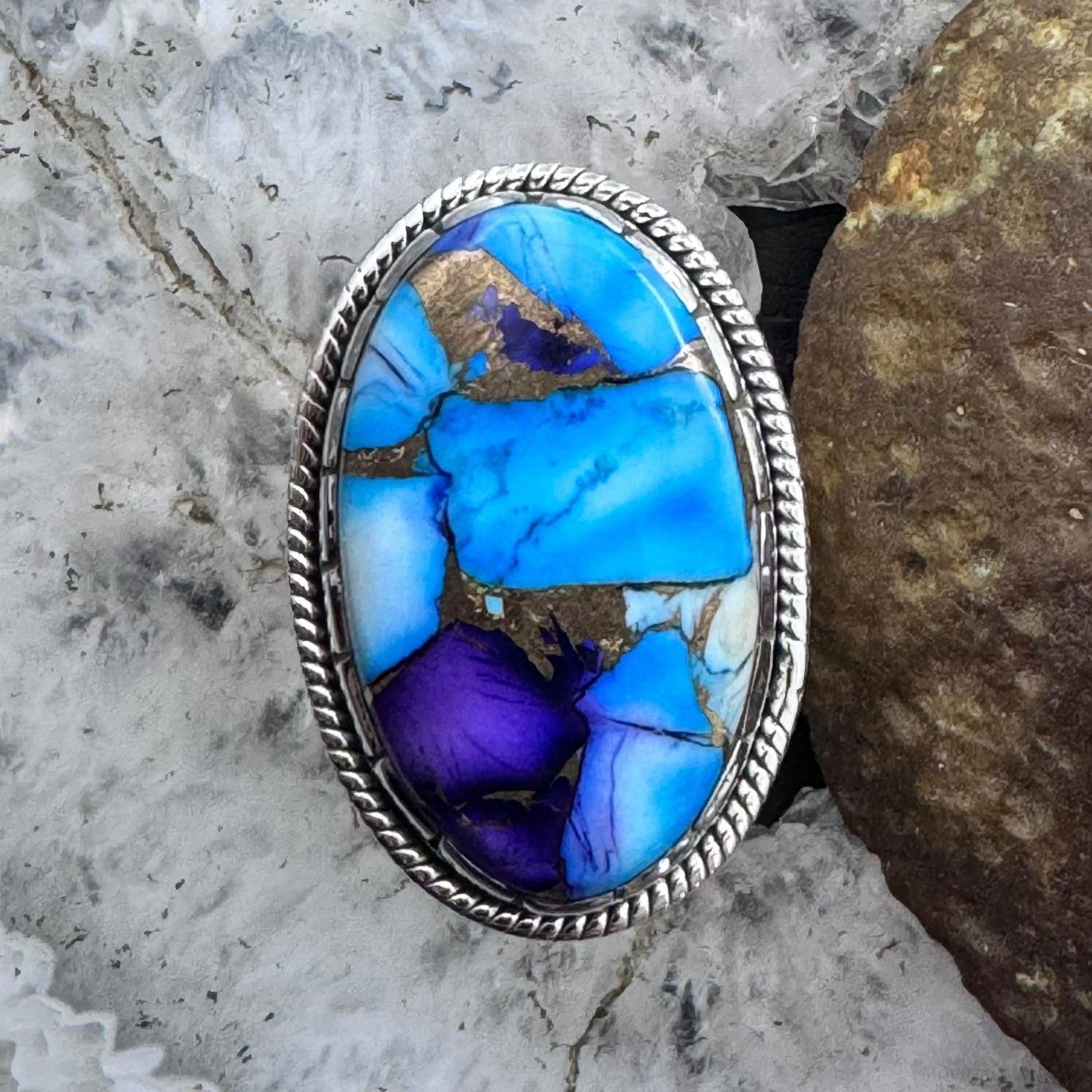 Sterling Silver Southwestern Style Oval Purple Spiny Turquoise Ring Size 8.5 For Women