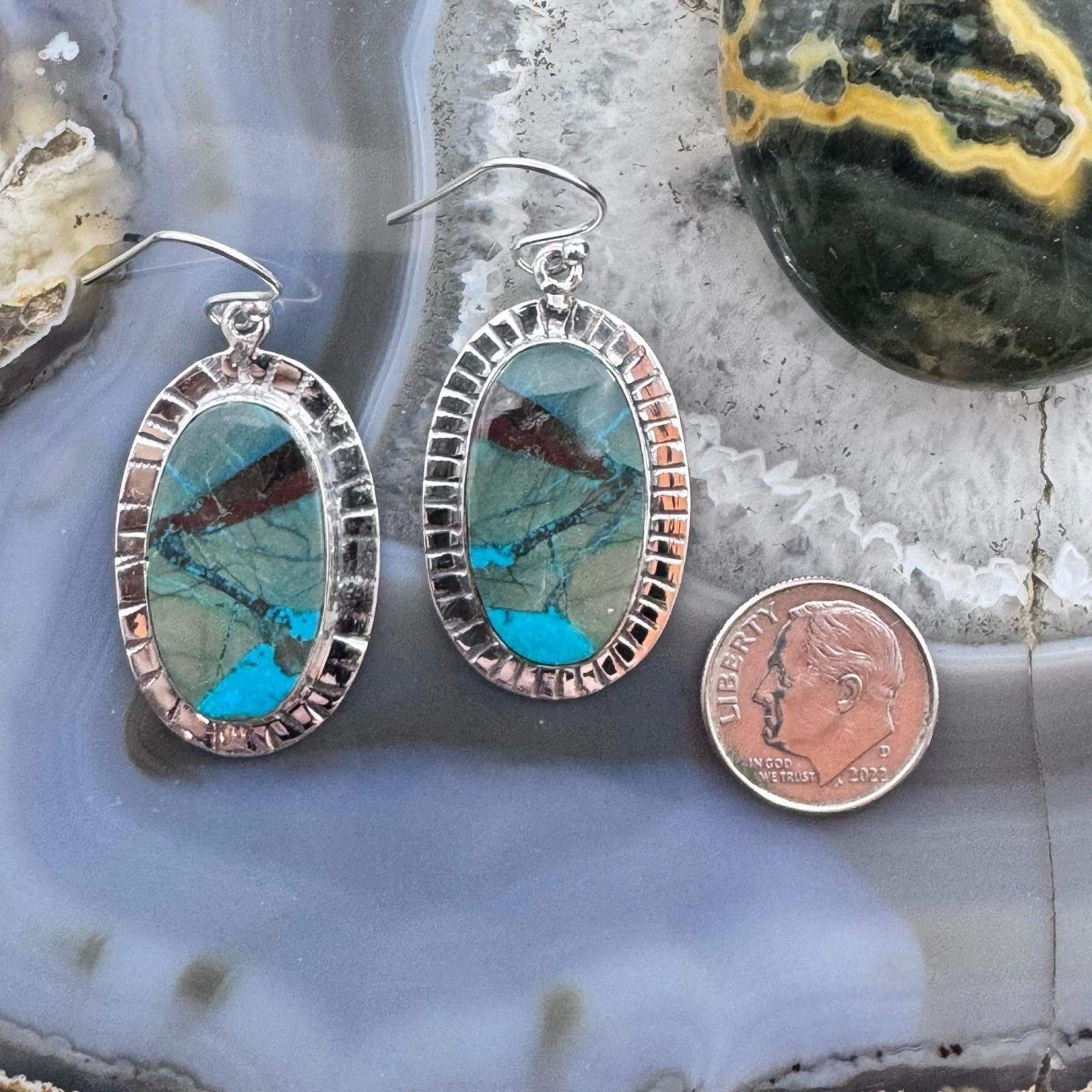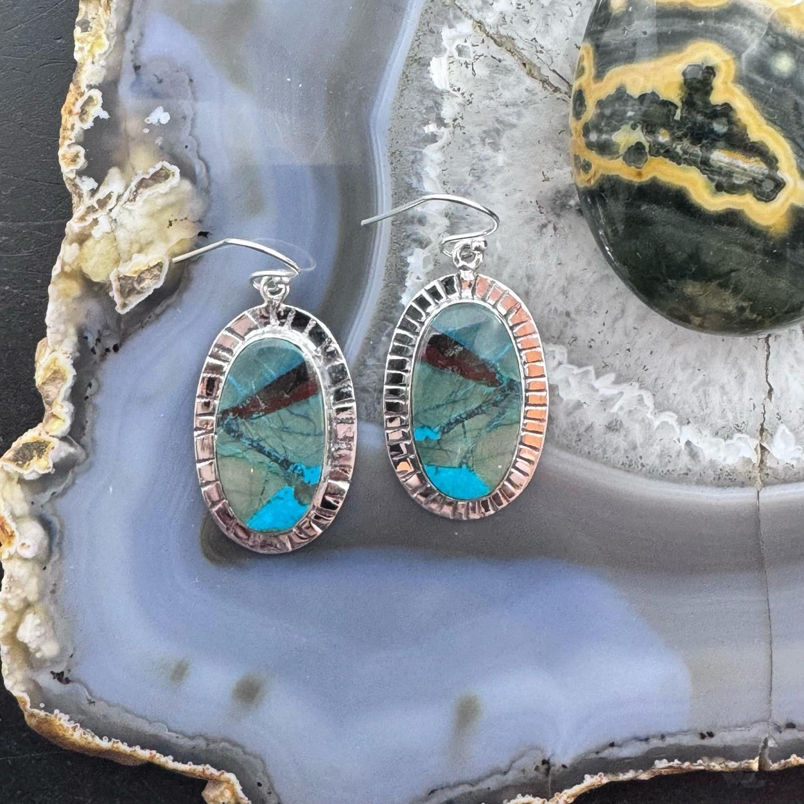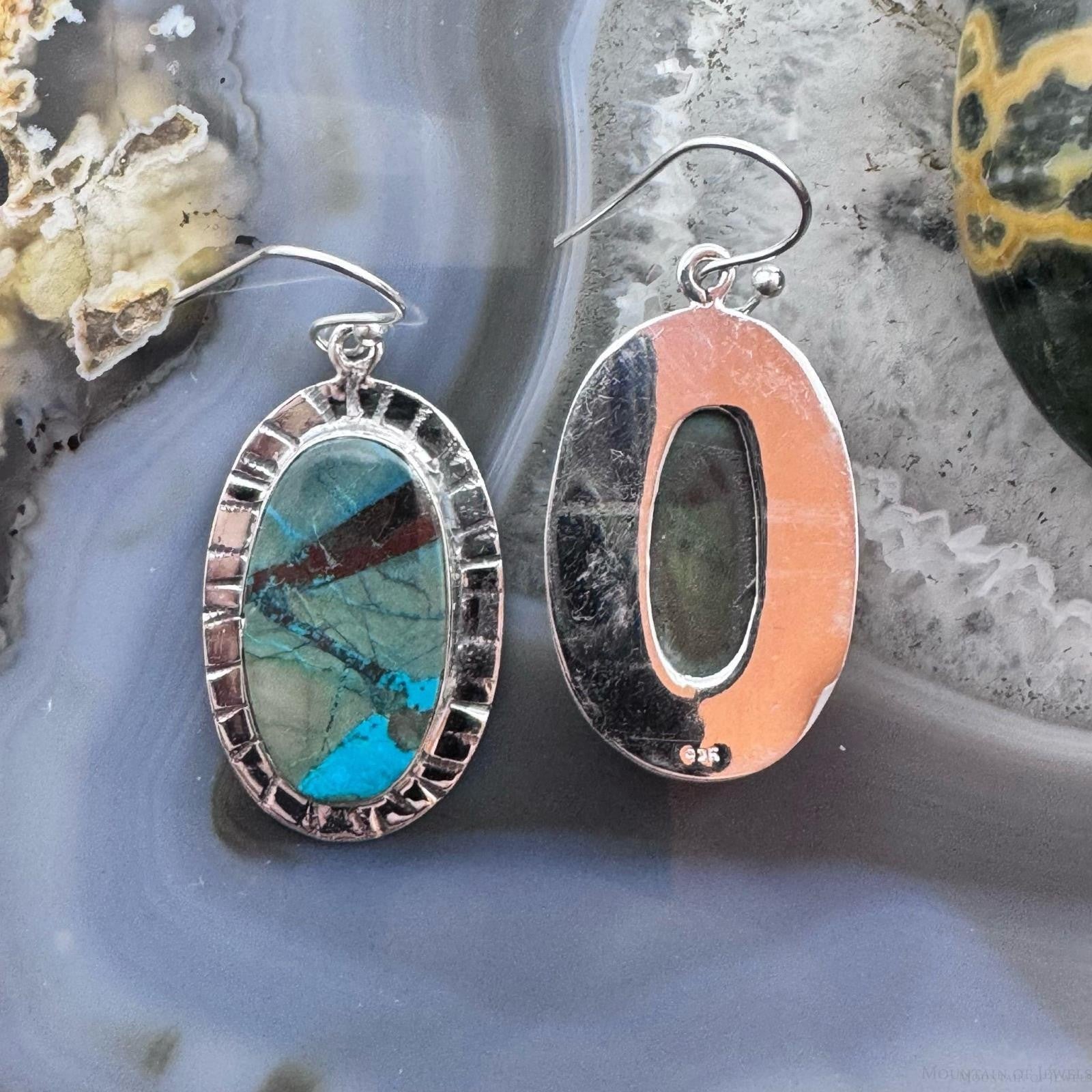 Sterling Silver Southwestern Style Oval Sea Sediment Jasper Dangle Earrings For Women