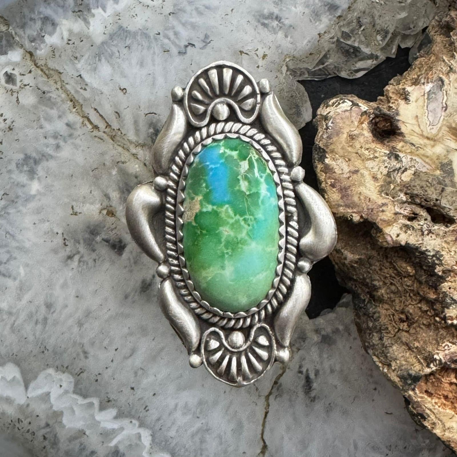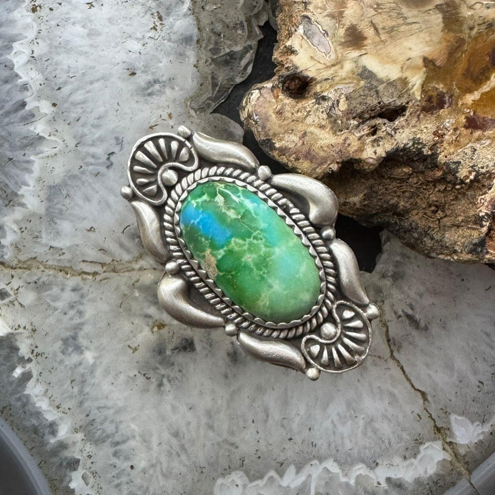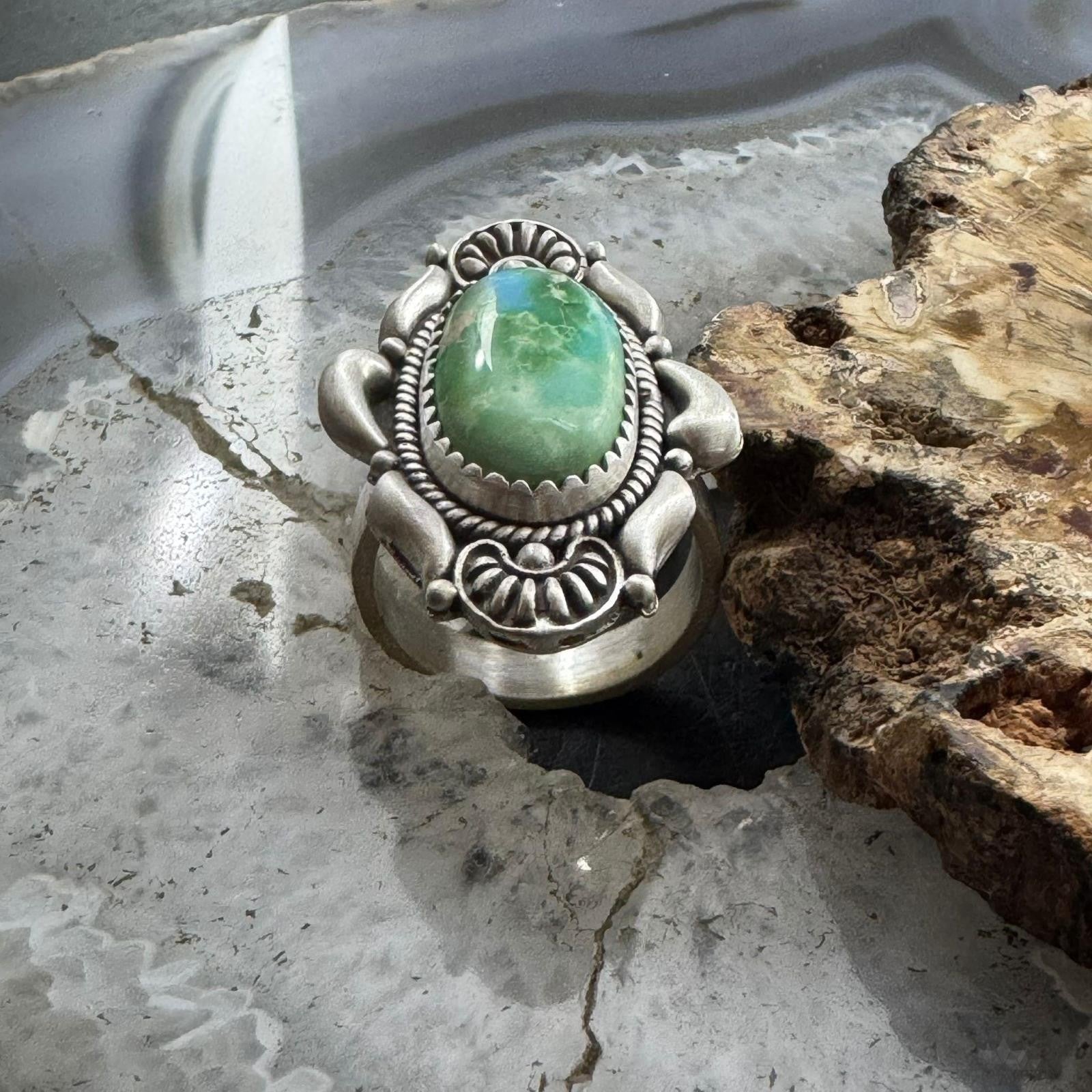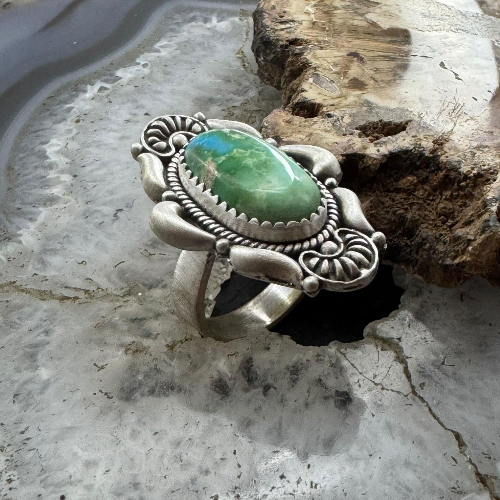 Sterling Silver Southwestern Style Oval Sonora Gold Turquoise Adjustable Ring For Women