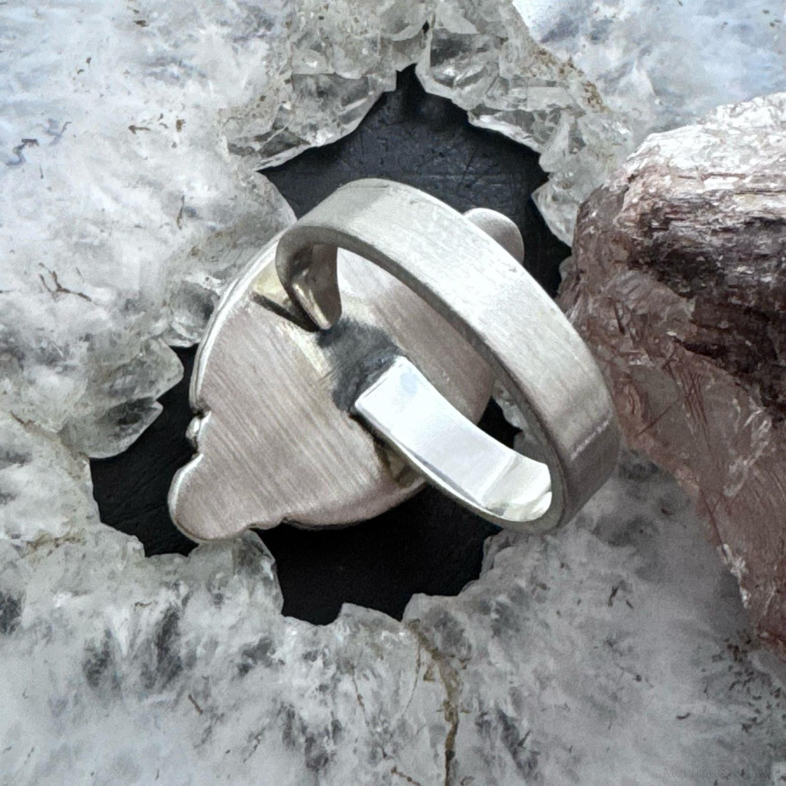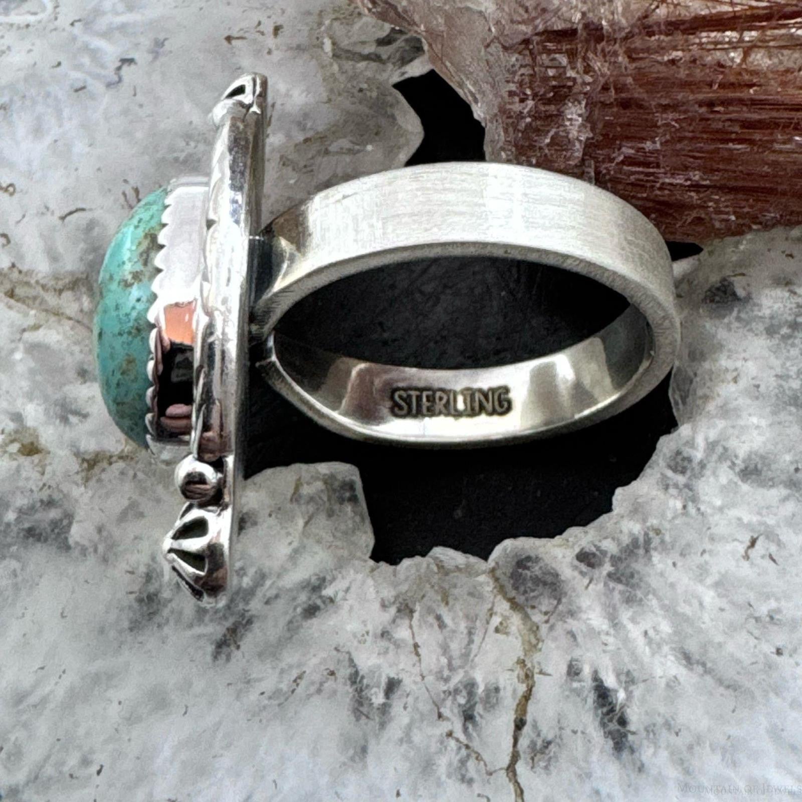 Sterling Silver Southwestern Style Oval Turquoise Decorated Adjustable Ring For Women