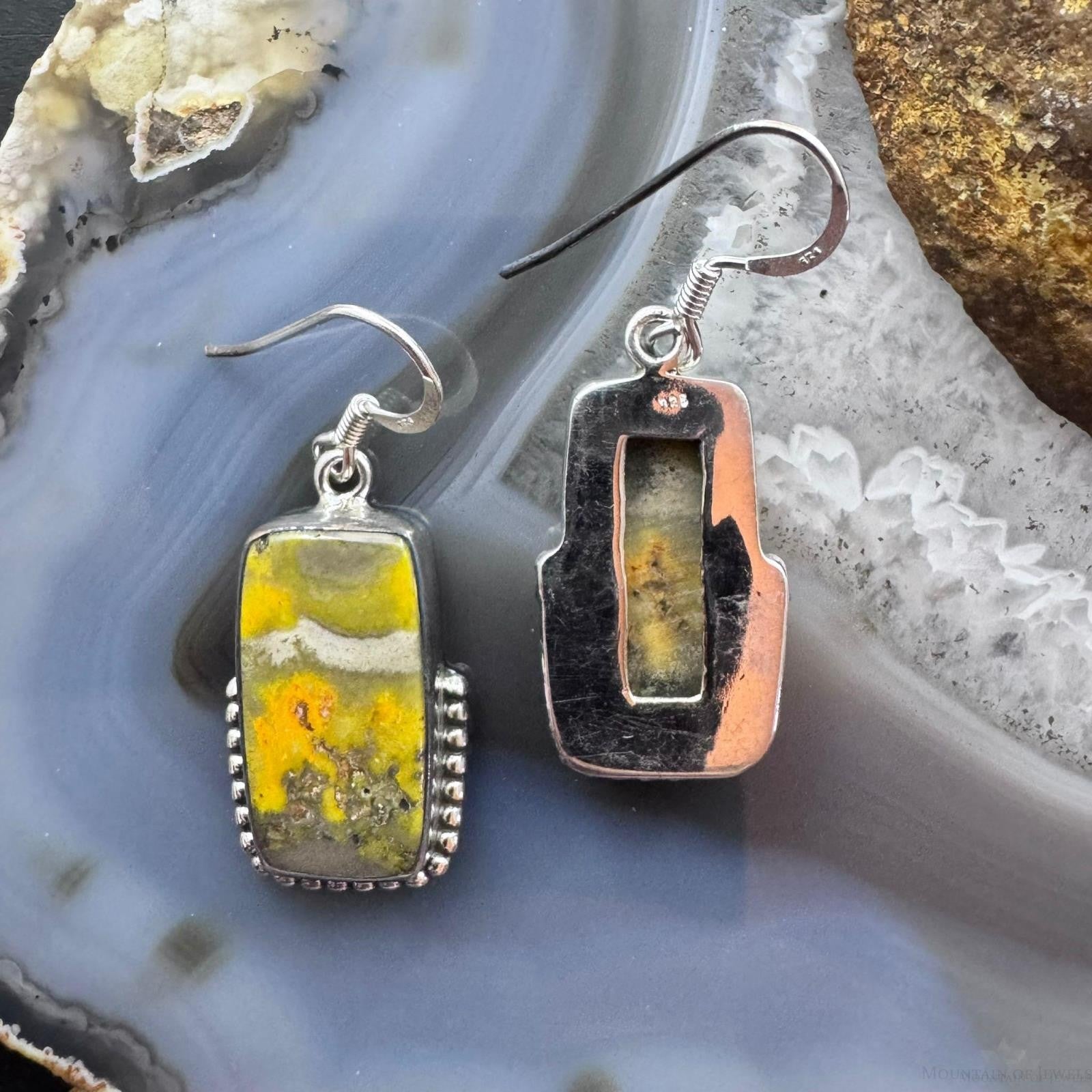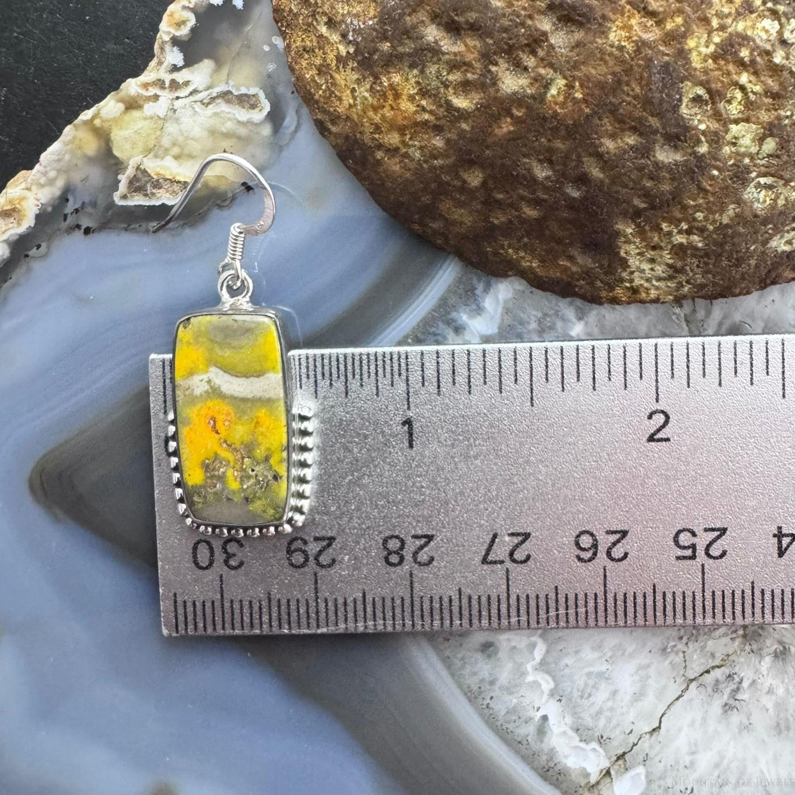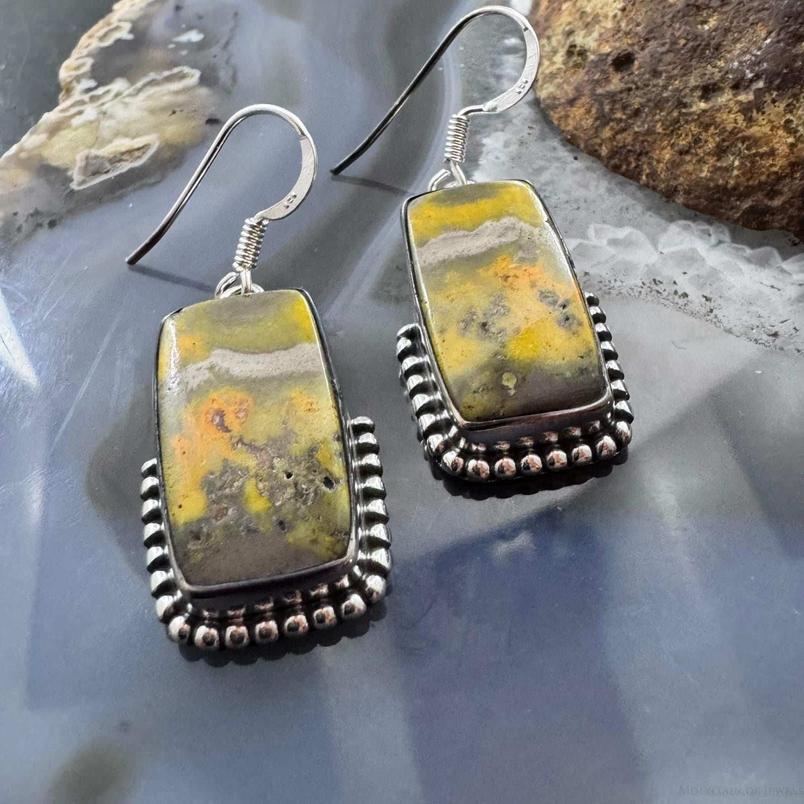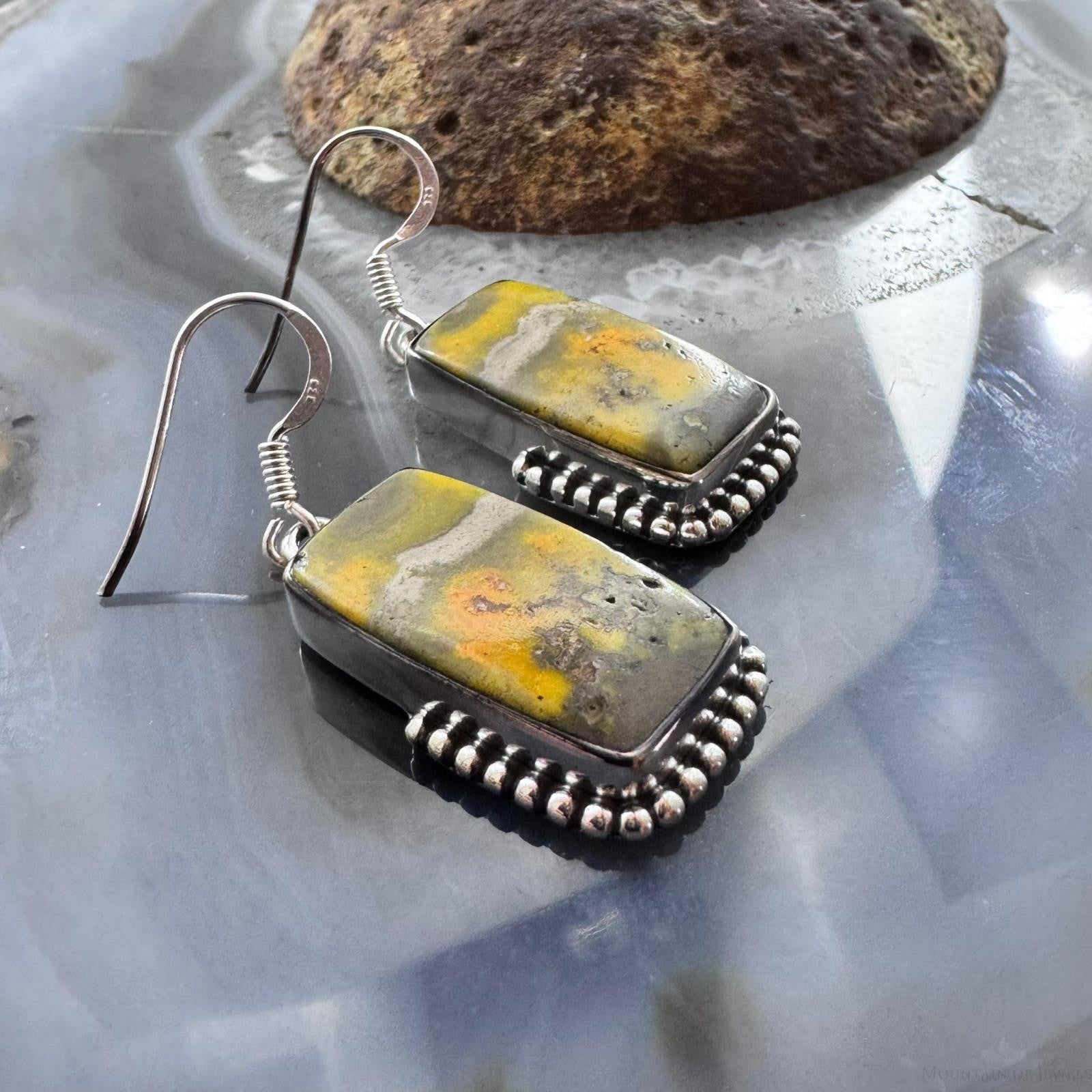 Sterling Silver Southwestern Style Rectangle Eclipse Jasper Decorated Dangle Earrings For Women