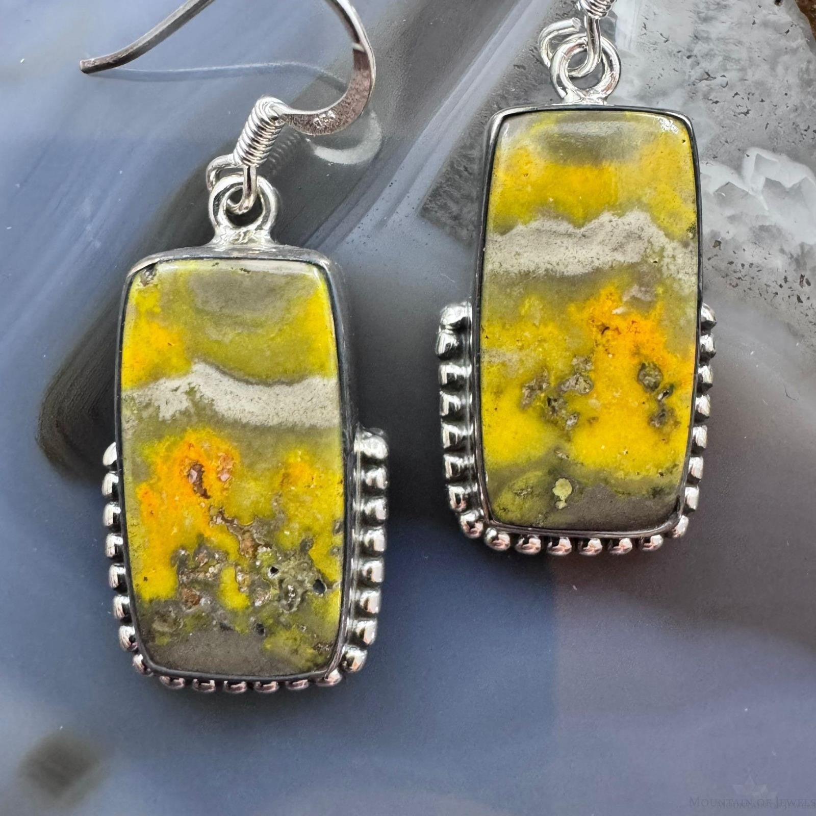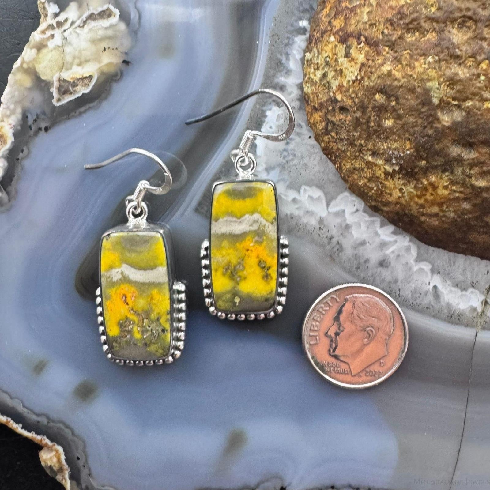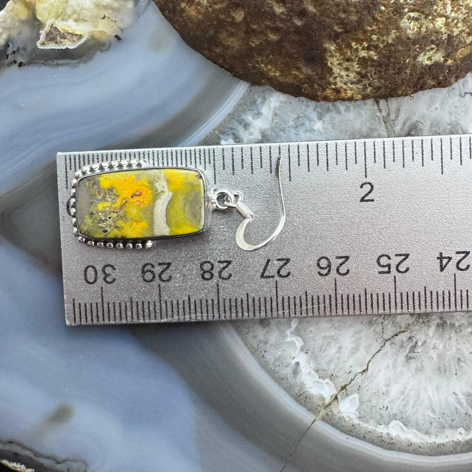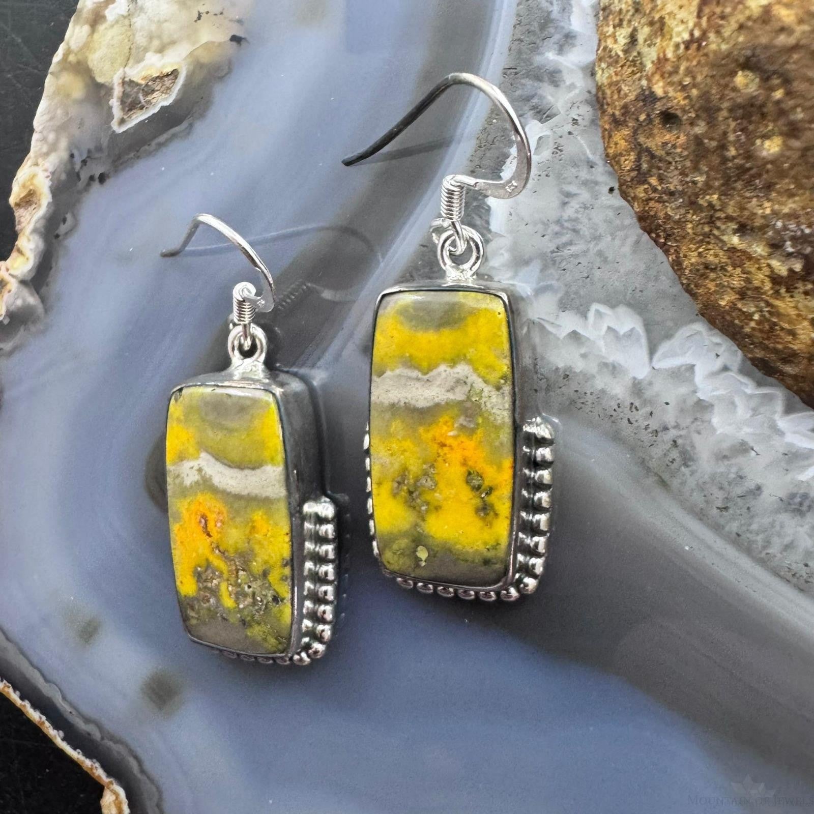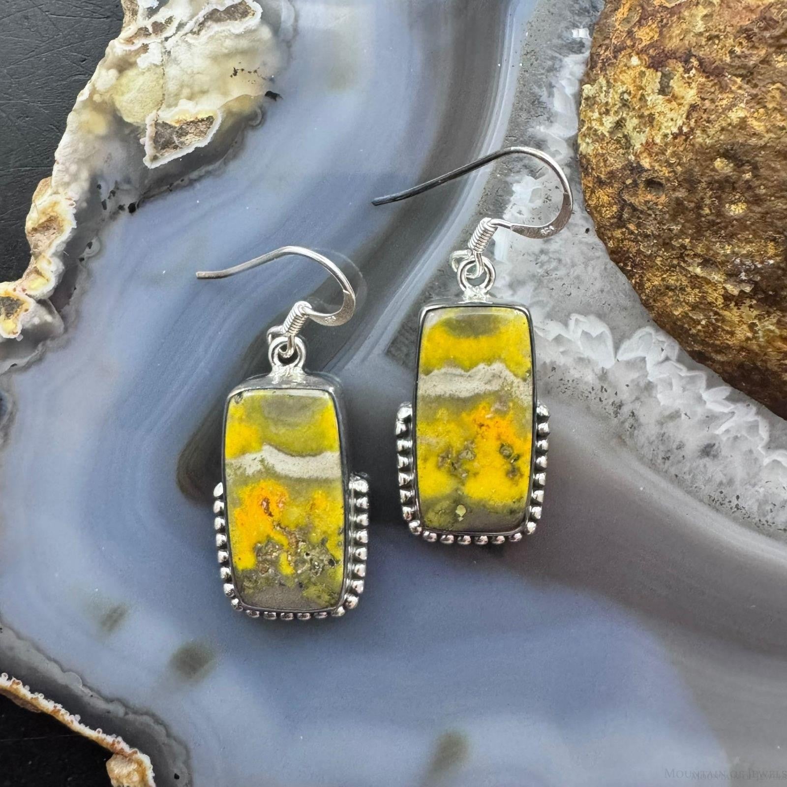 Sterling Silver Southwestern Style Rectangle Eclipse Jasper Decorated Dangle Earrings For Women
