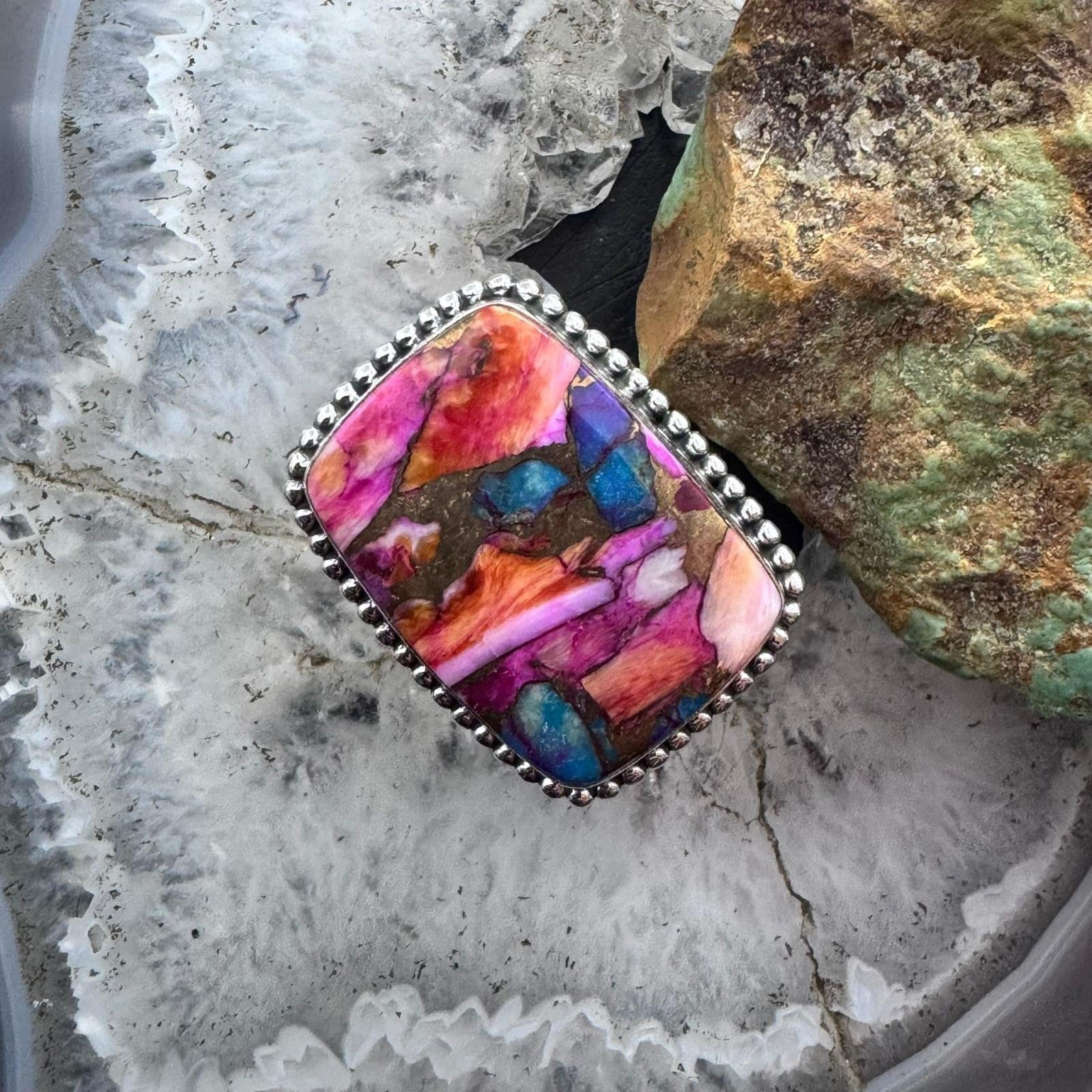 Sterling Silver Southwestern Style Rectangle Mohave Dahlia Ring Size 9.75 For Women