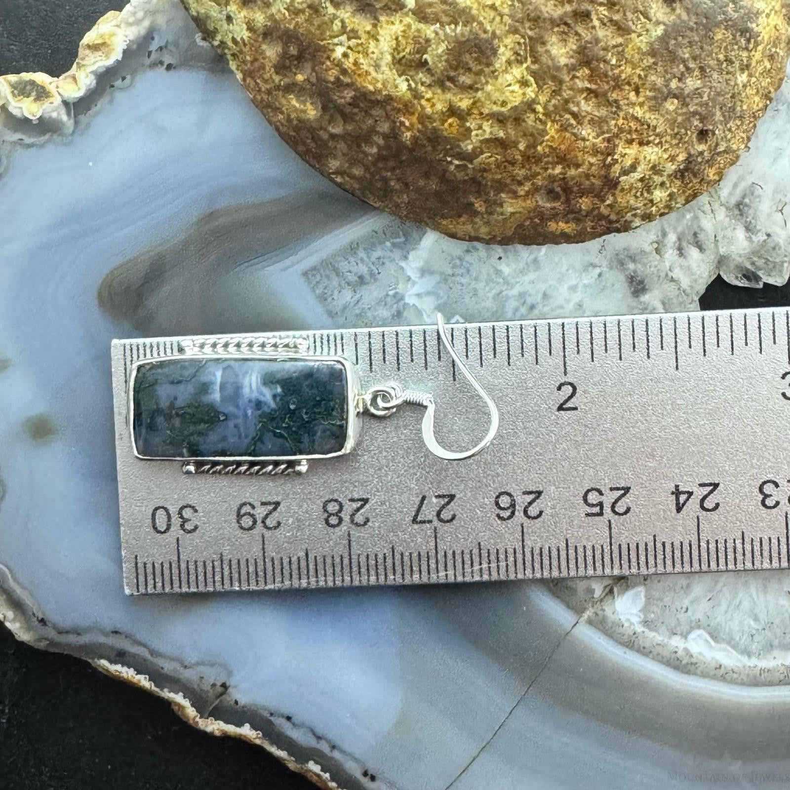 Sterling Silver Southwestern Style Rectangle Moss Agate Dangle Earrings For Women