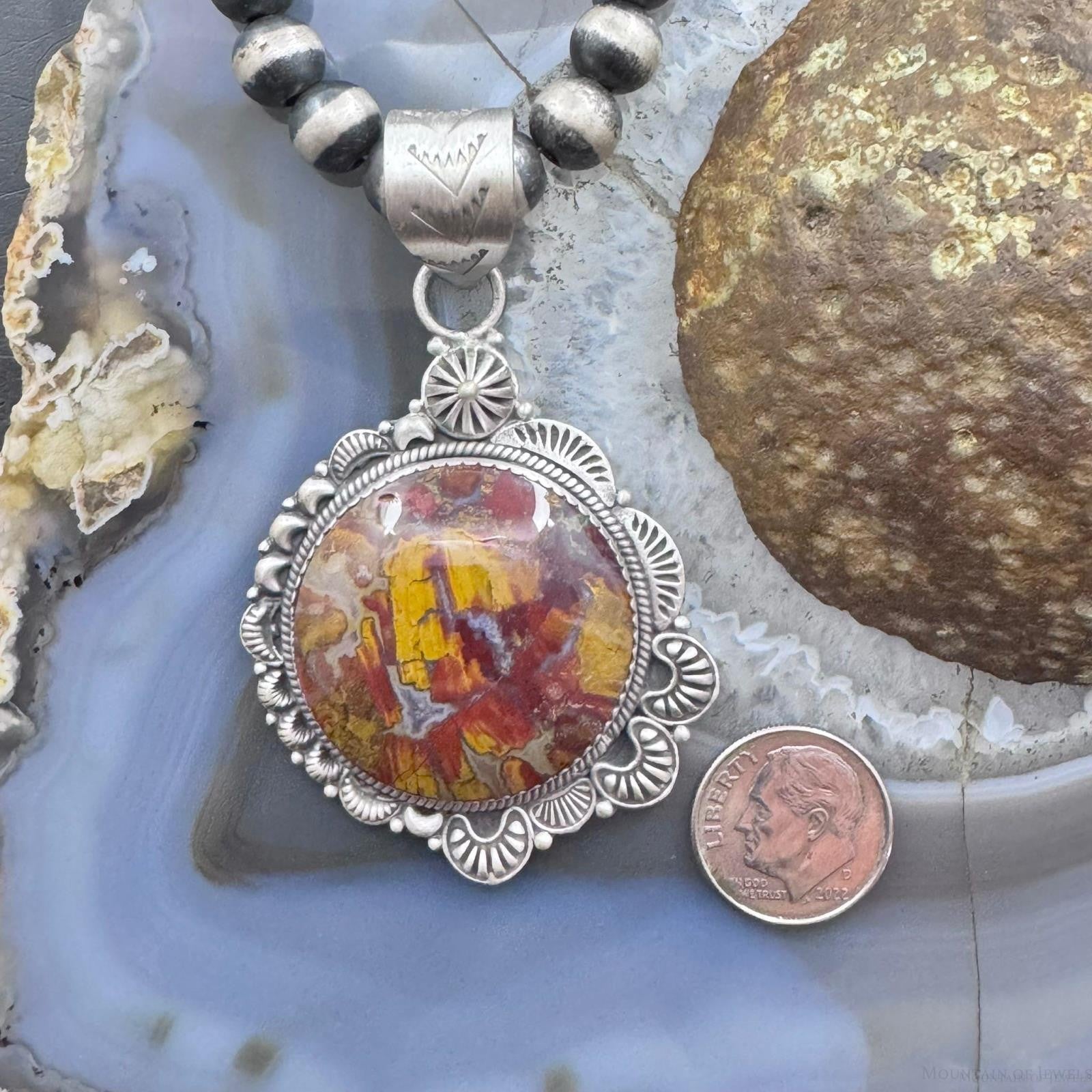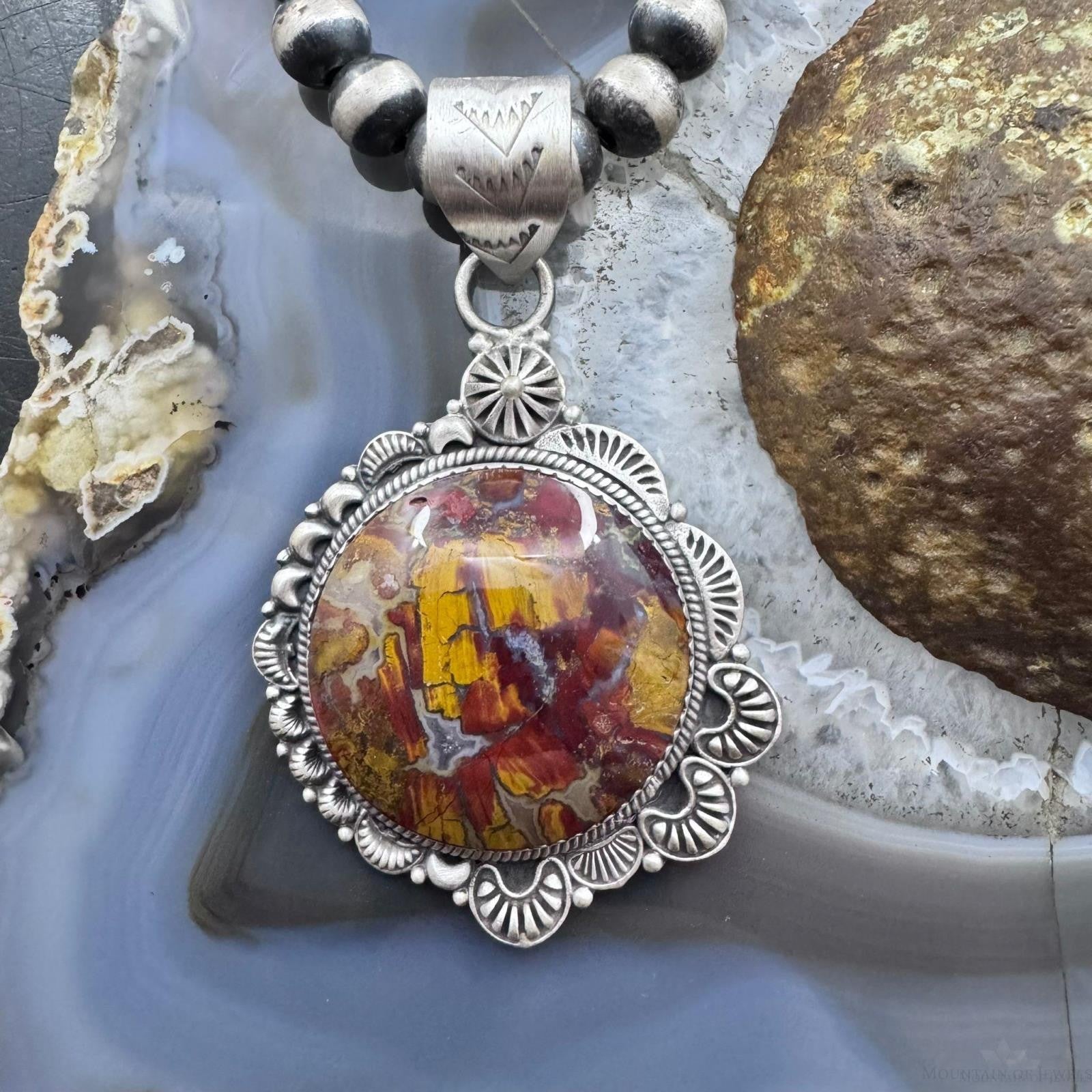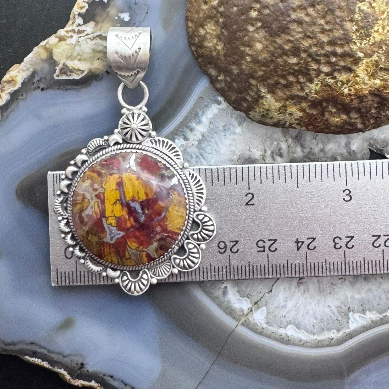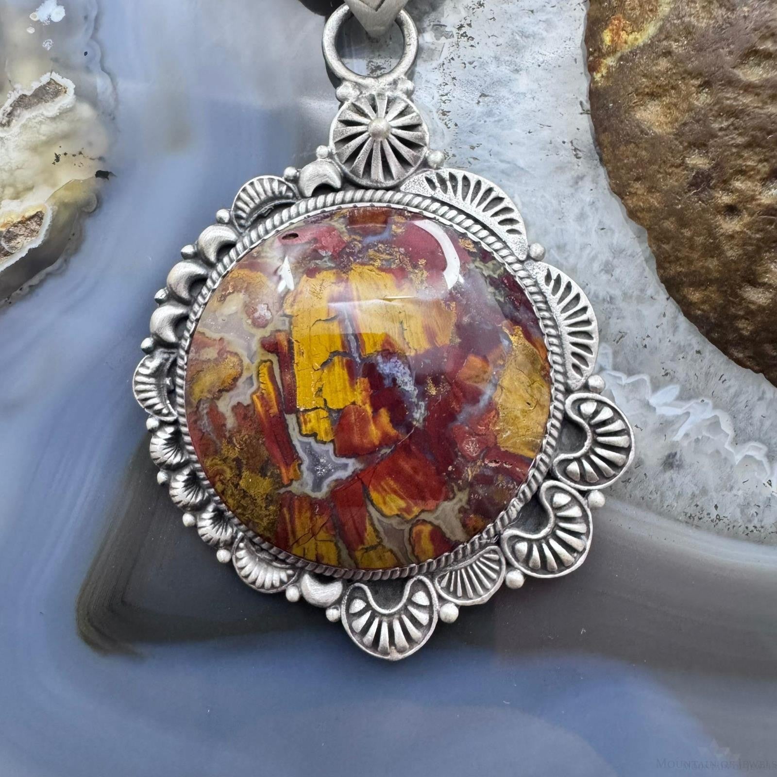 Sterling Silver Southwestern Style Round Red Moss Agate Decorated Pendant For Women