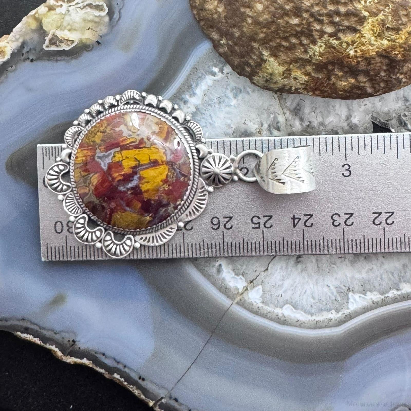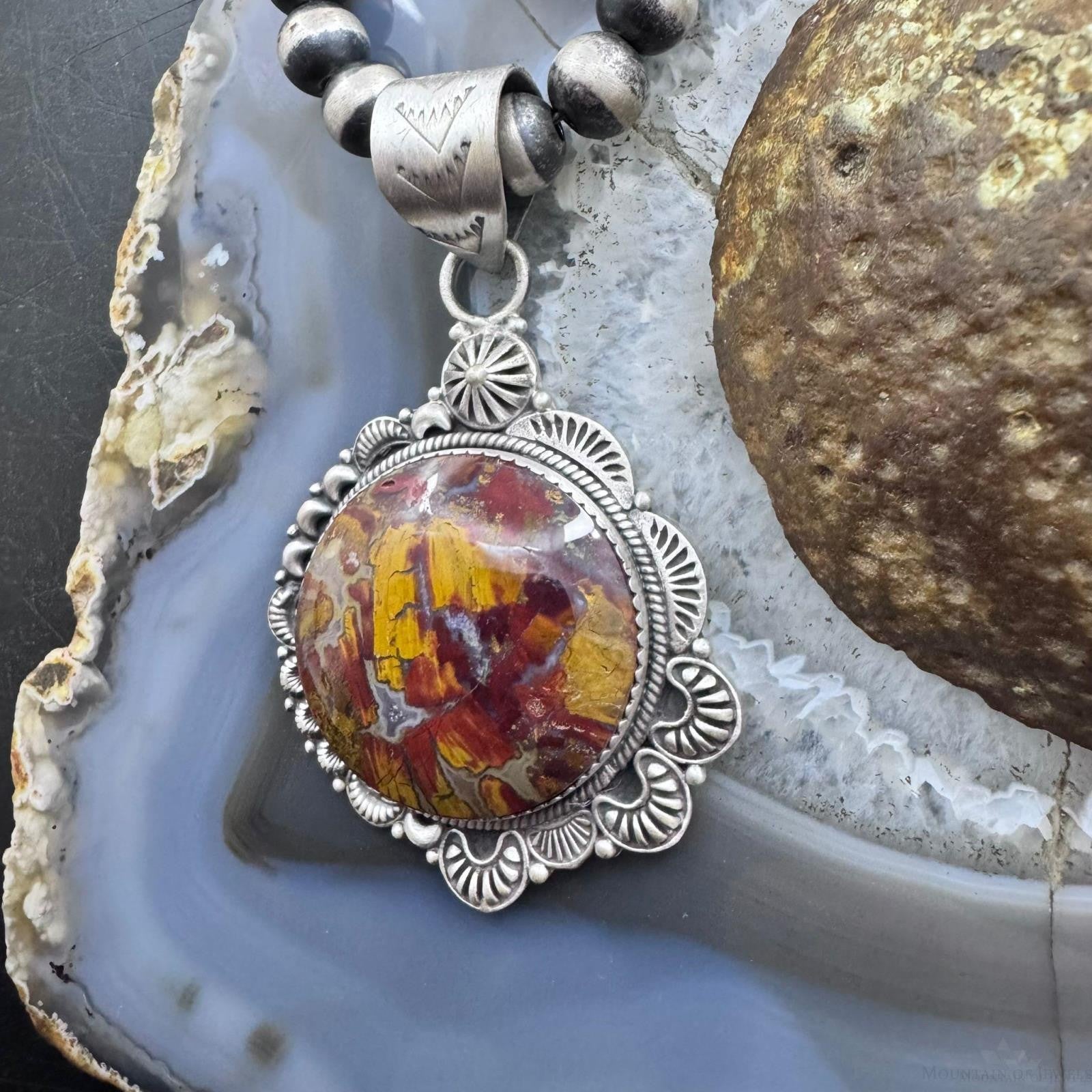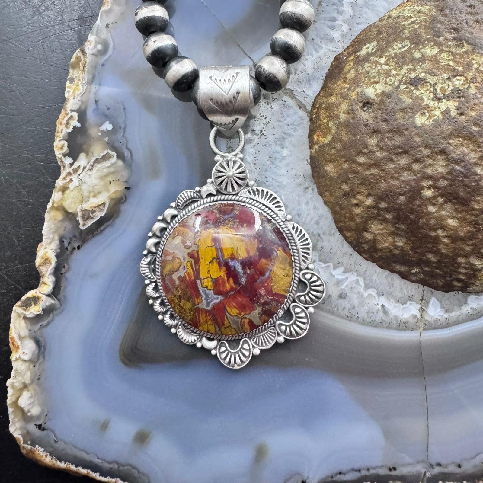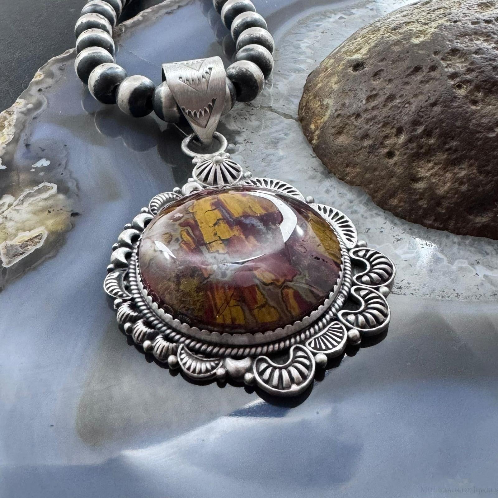 Sterling Silver Southwestern Style Round Red Moss Agate Decorated Pendant For Women