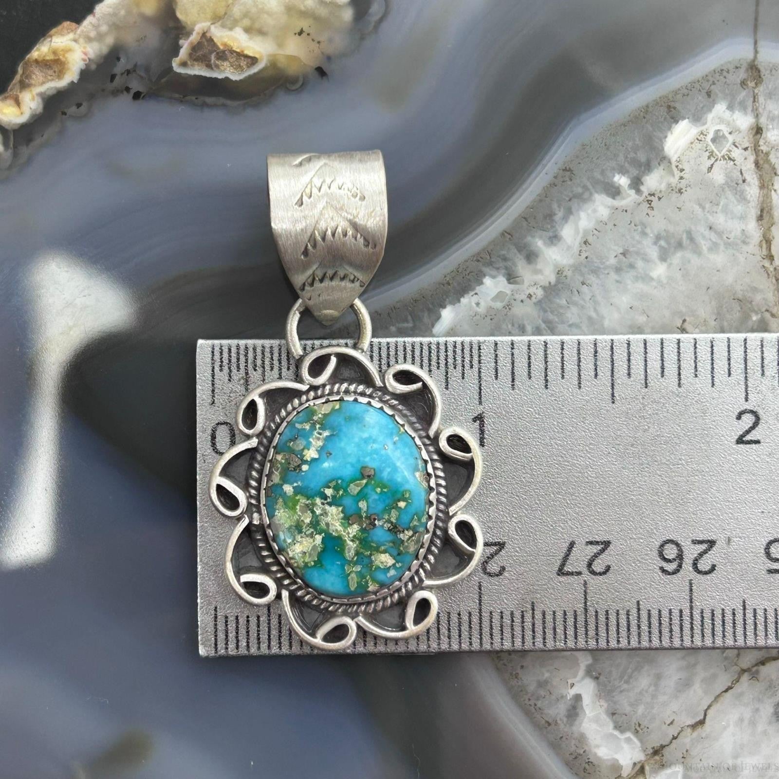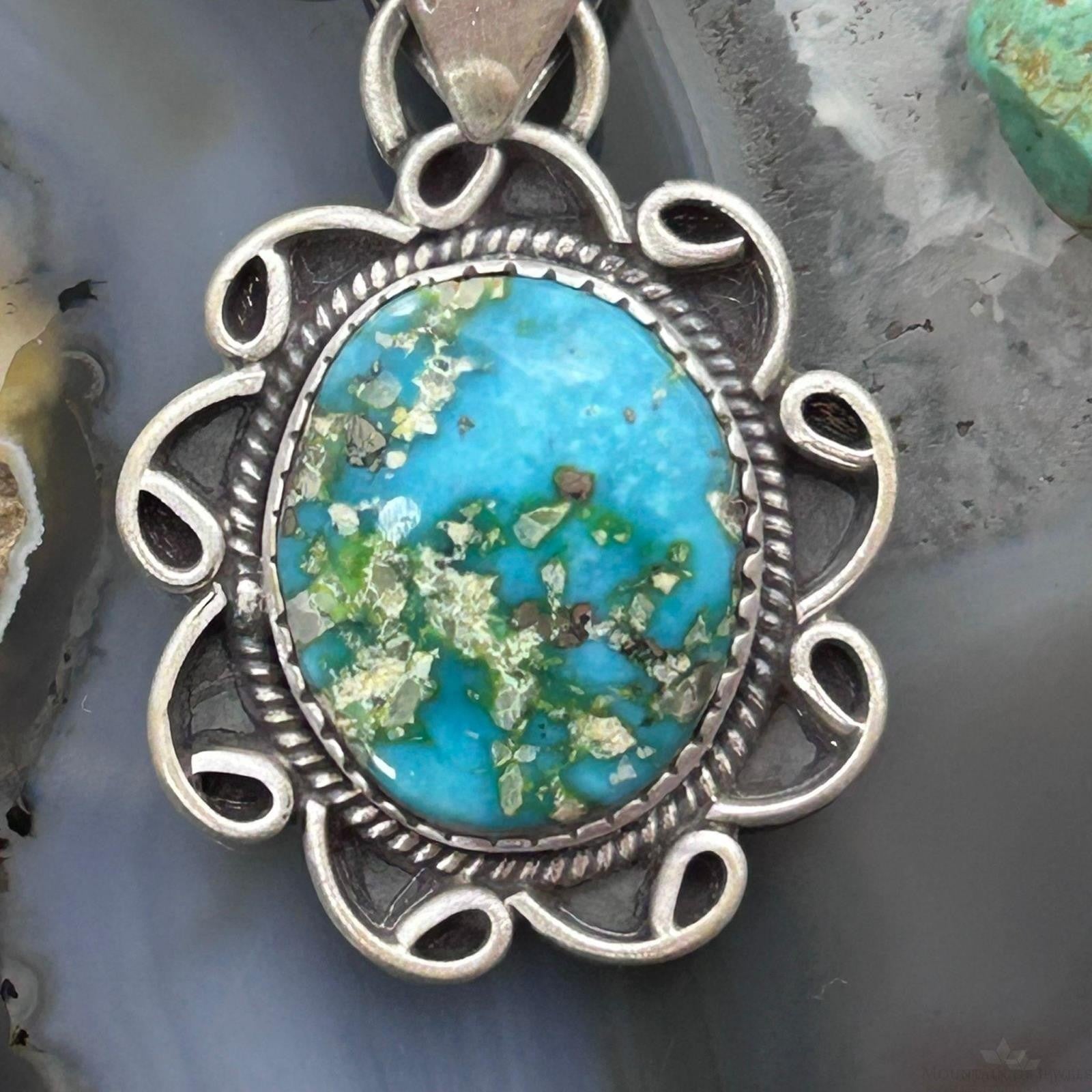 Sterling Silver Southwestern Style Round Sonora Gold Turquoise Pendant For Women