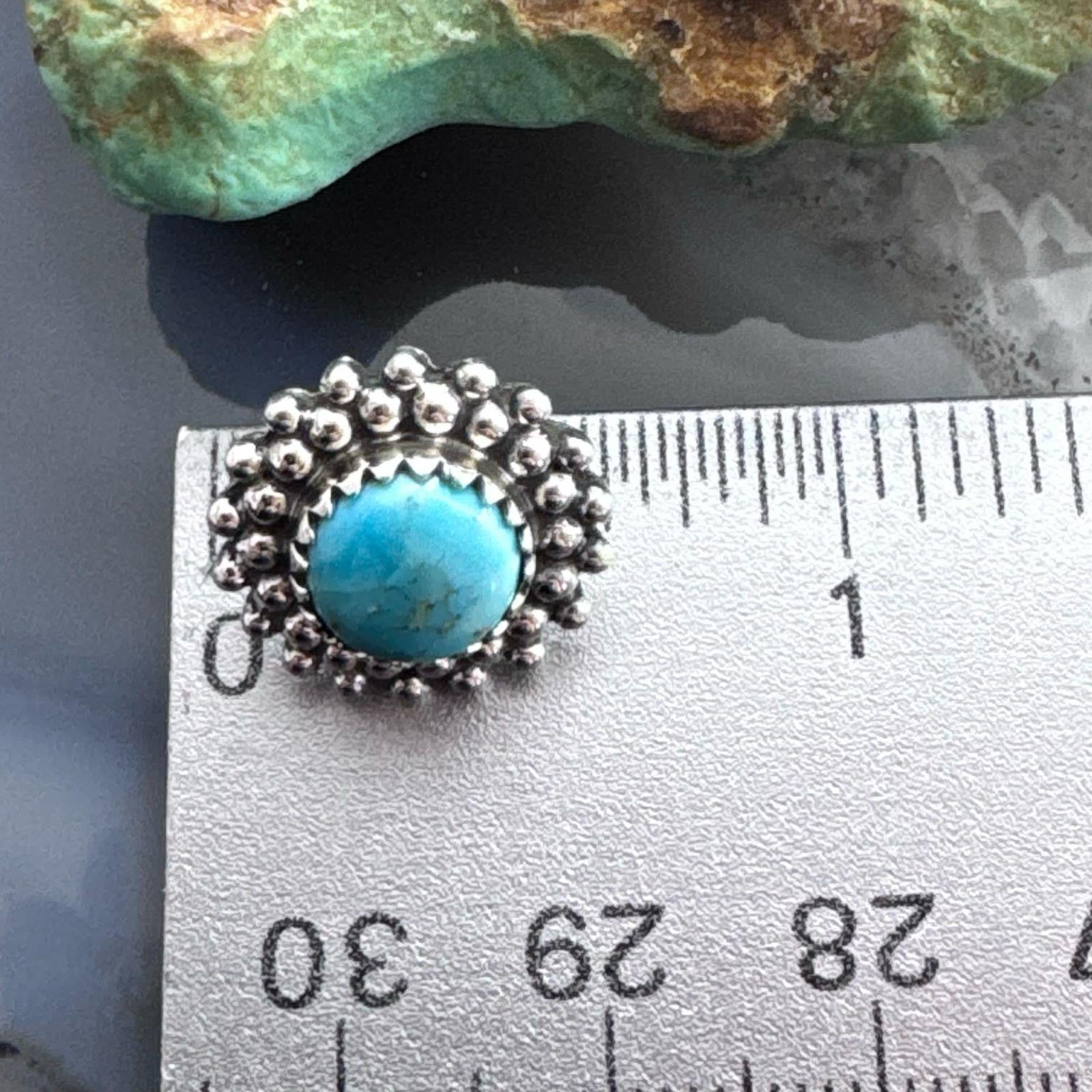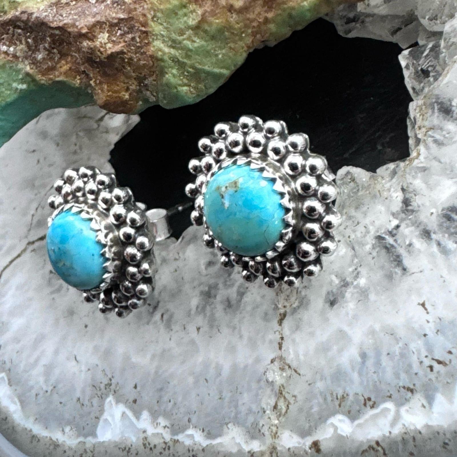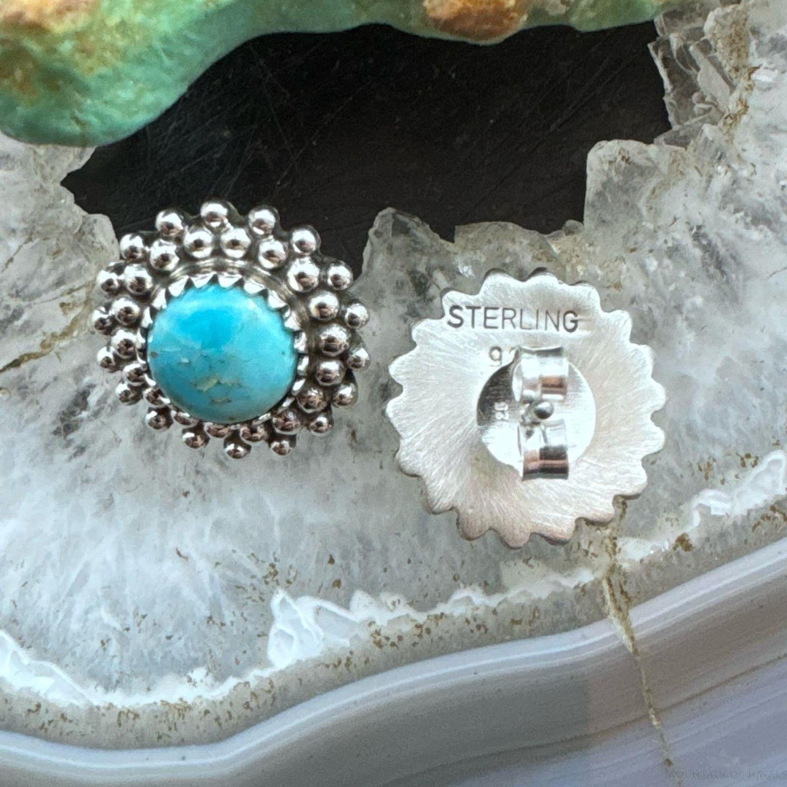 Sterling Silver Southwestern Style Rounded Turquoise Decorated Stud Earrings For Women