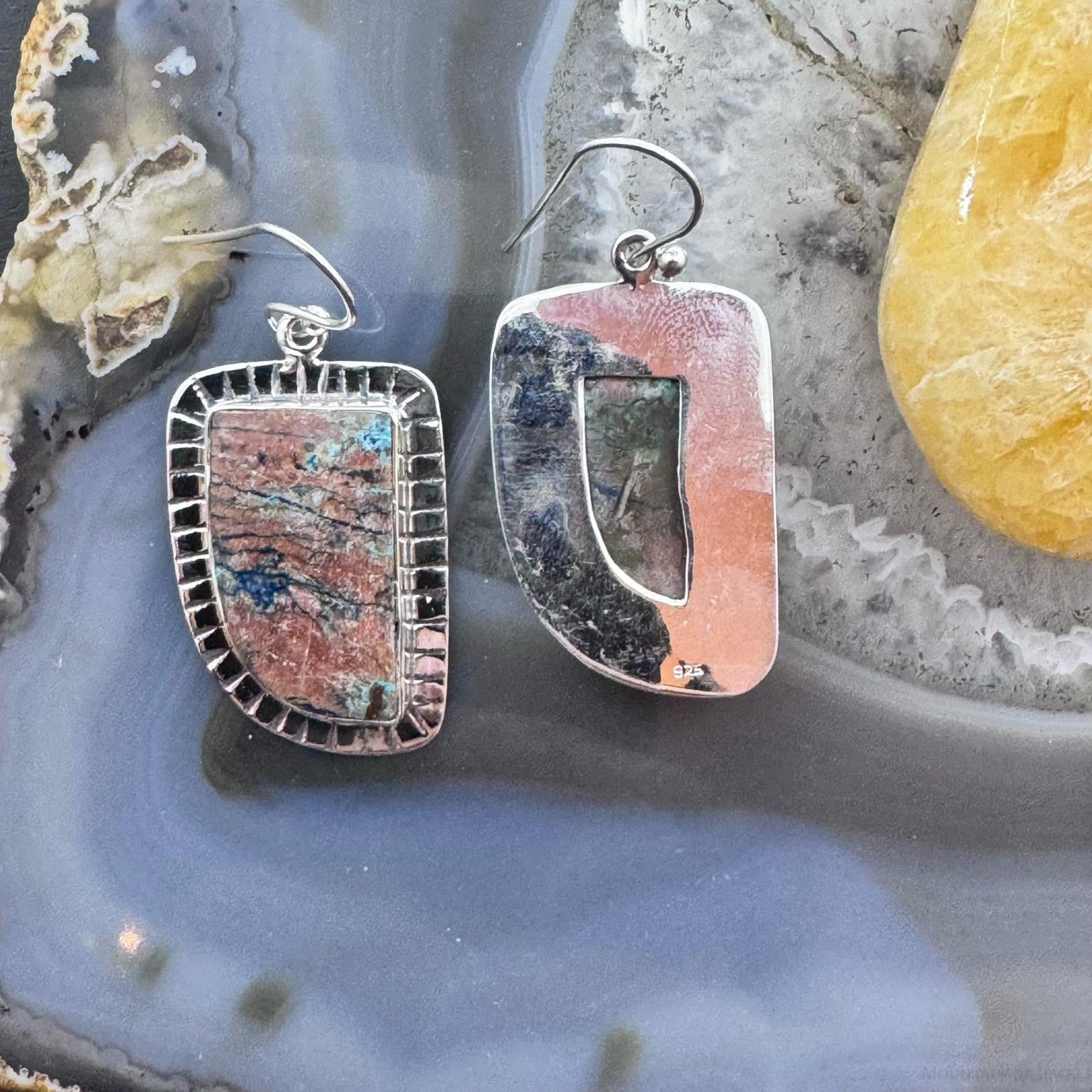 Sterling Silver Southwestern Style Shattuckite Decorated Dangle Earrings For Women