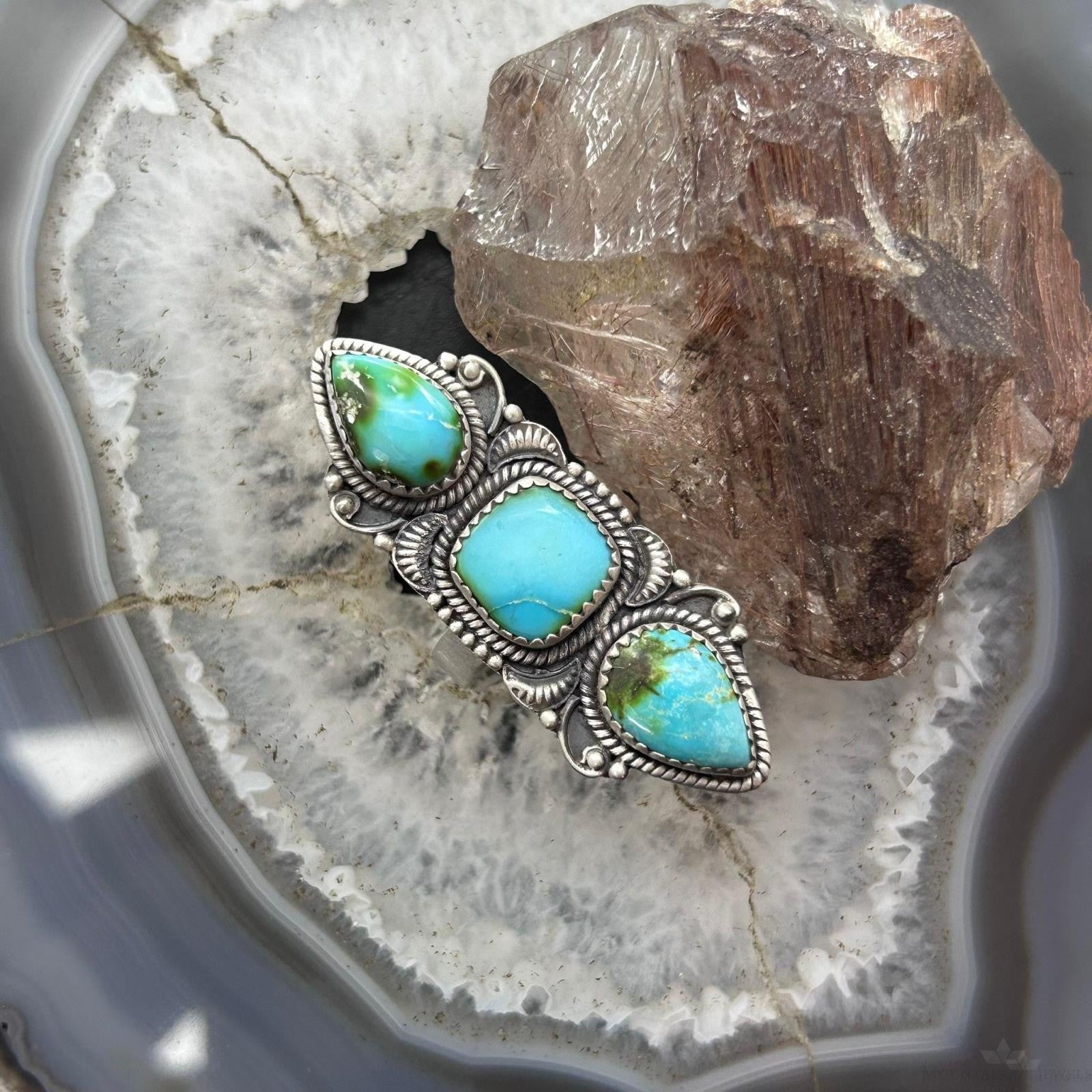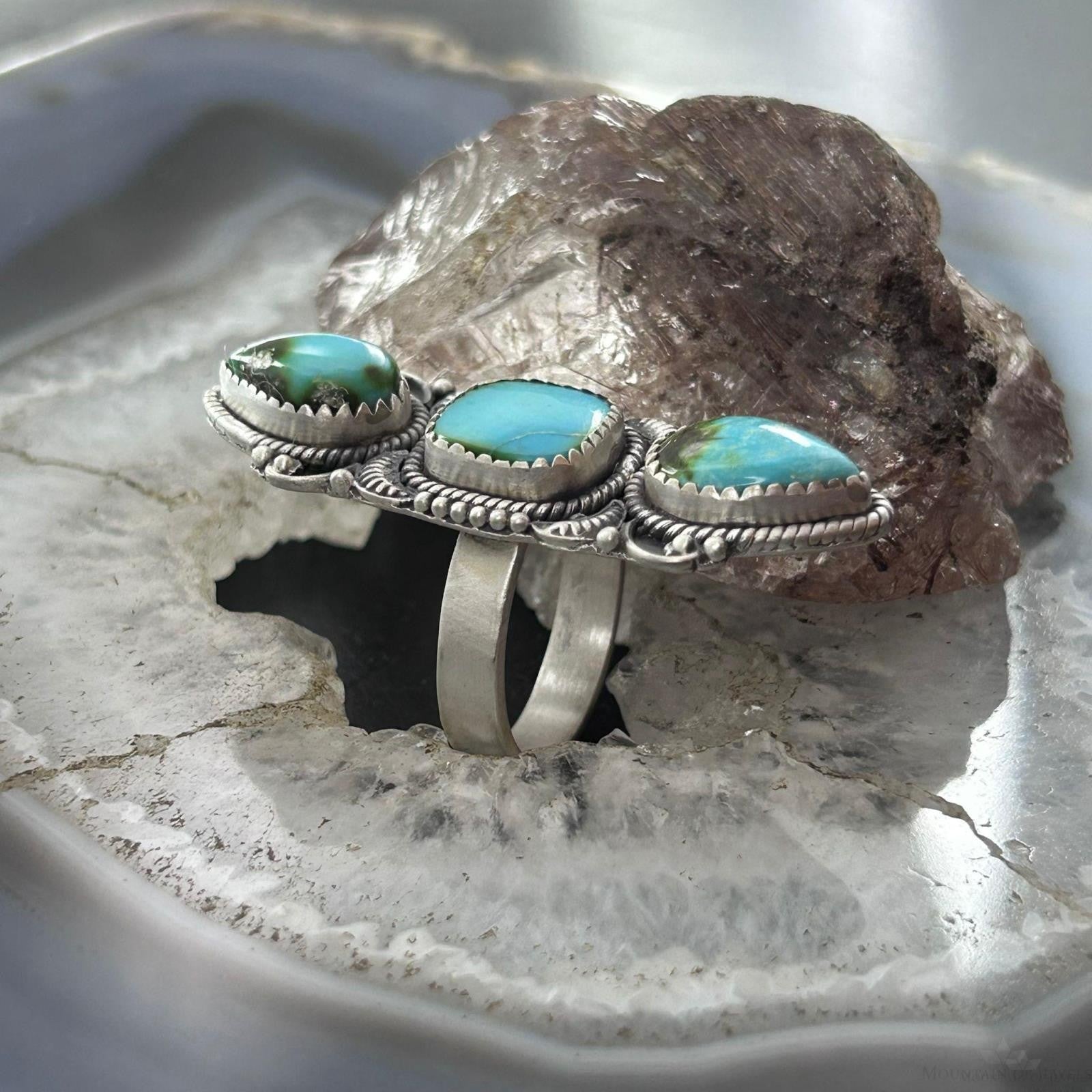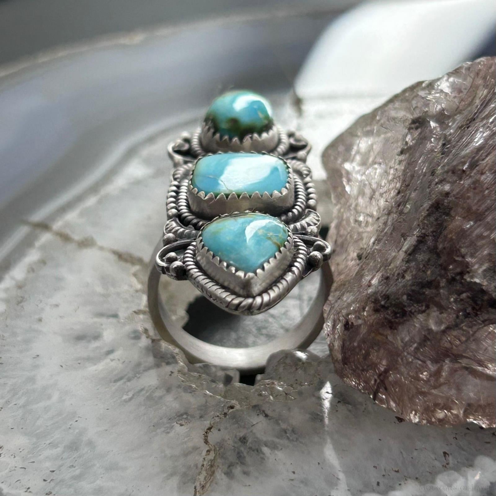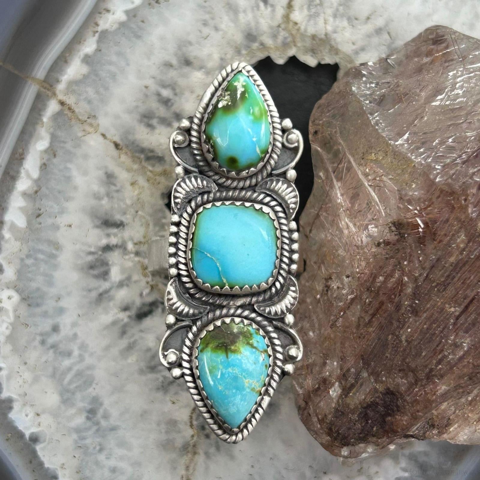 Sterling Silver Southwestern Style Sonora Gold Turquoise Adjustable Ring For Women