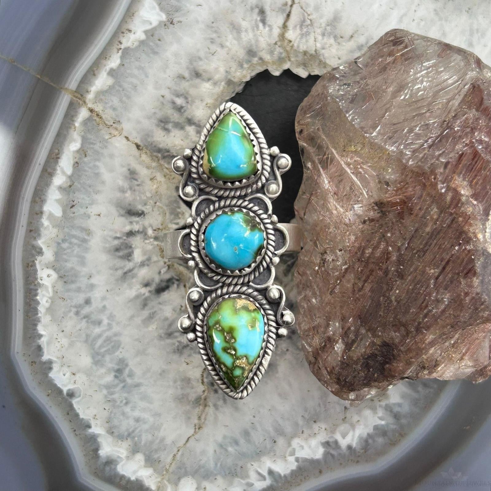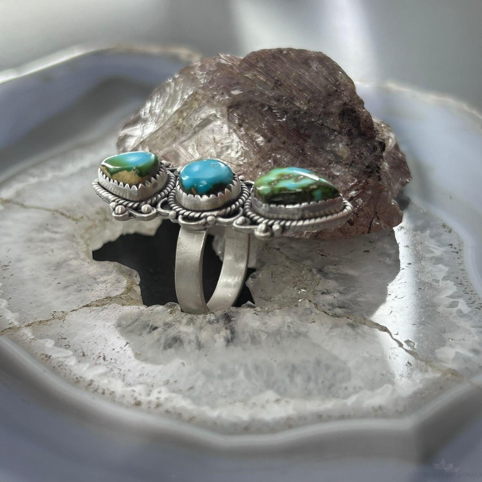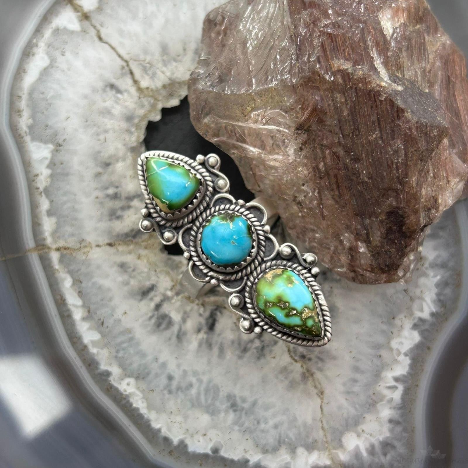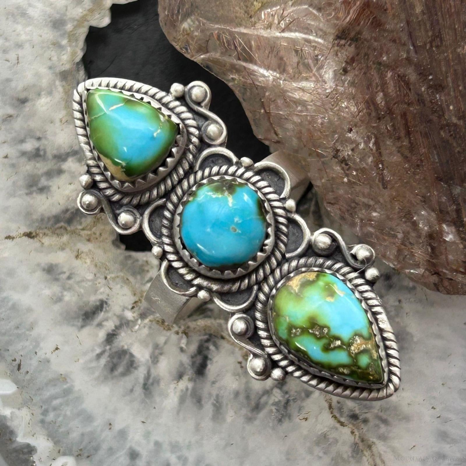 Sterling Silver Southwestern Style Sonora Gold Turquoise Adjustable Ring For Women #2