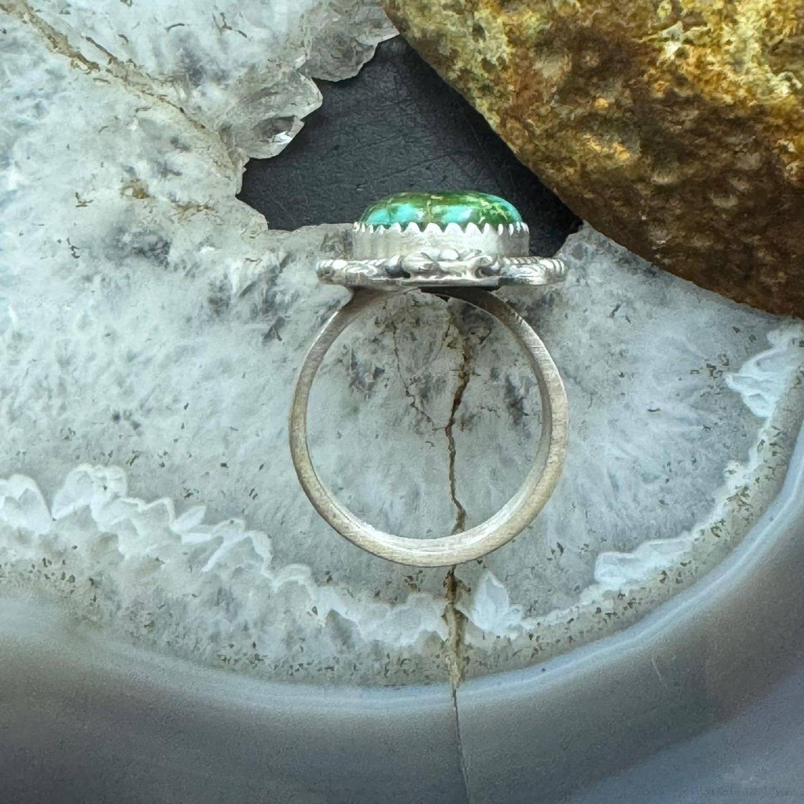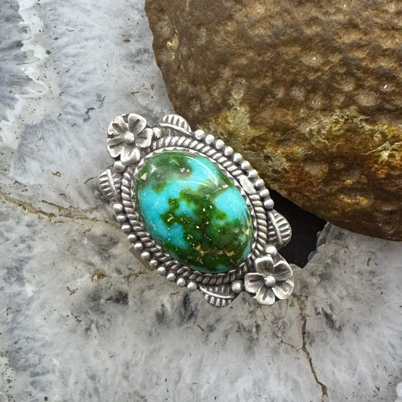 Sterling Silver Southwestern Style Sonora Gold Turquoise Decorated Adjustable Ring For Women #1
