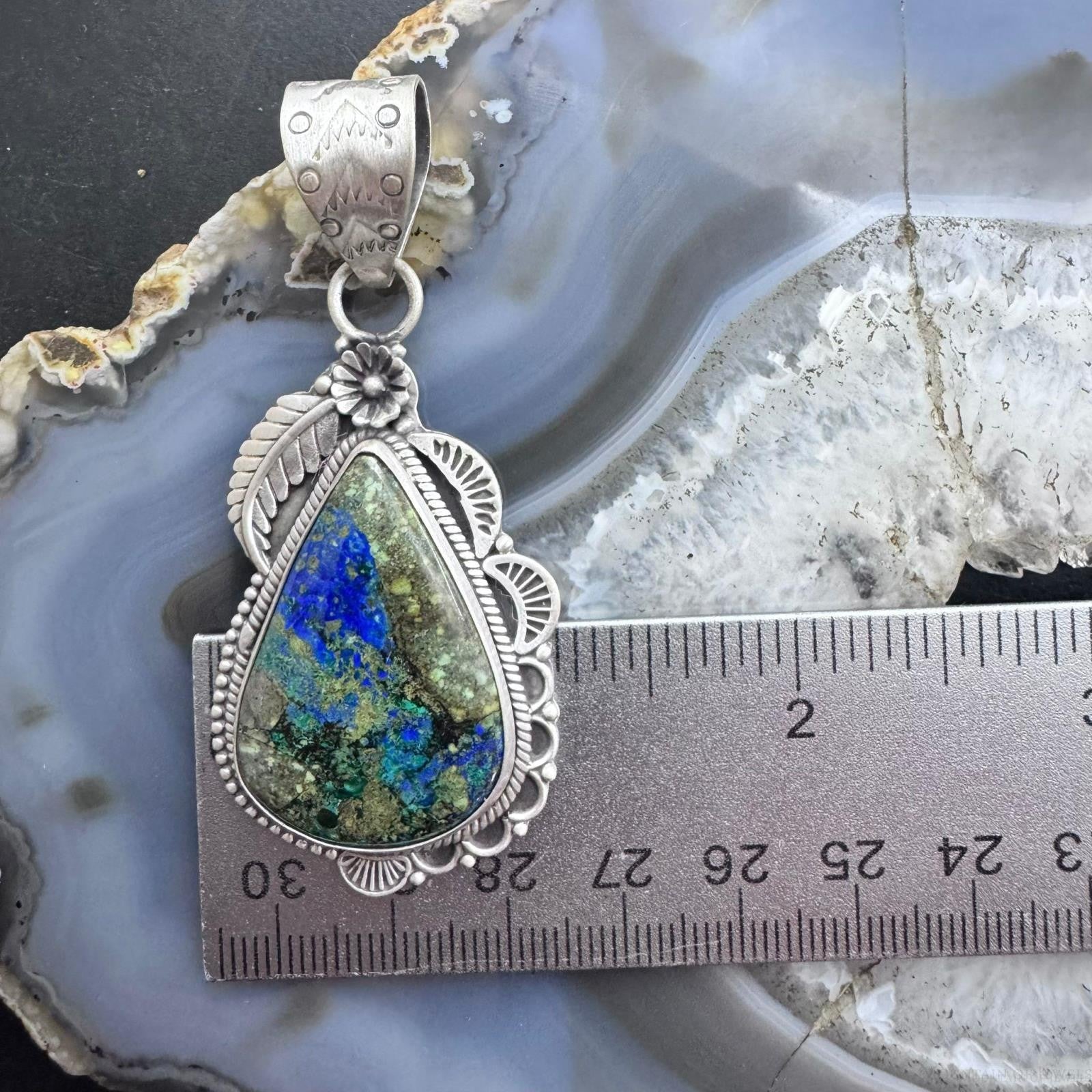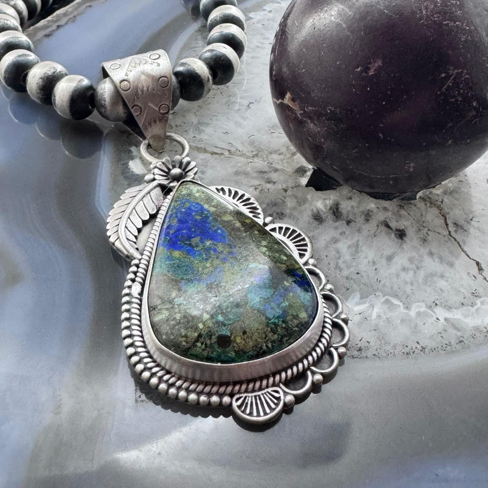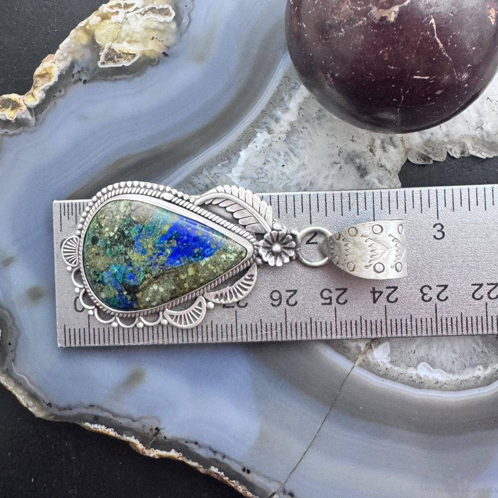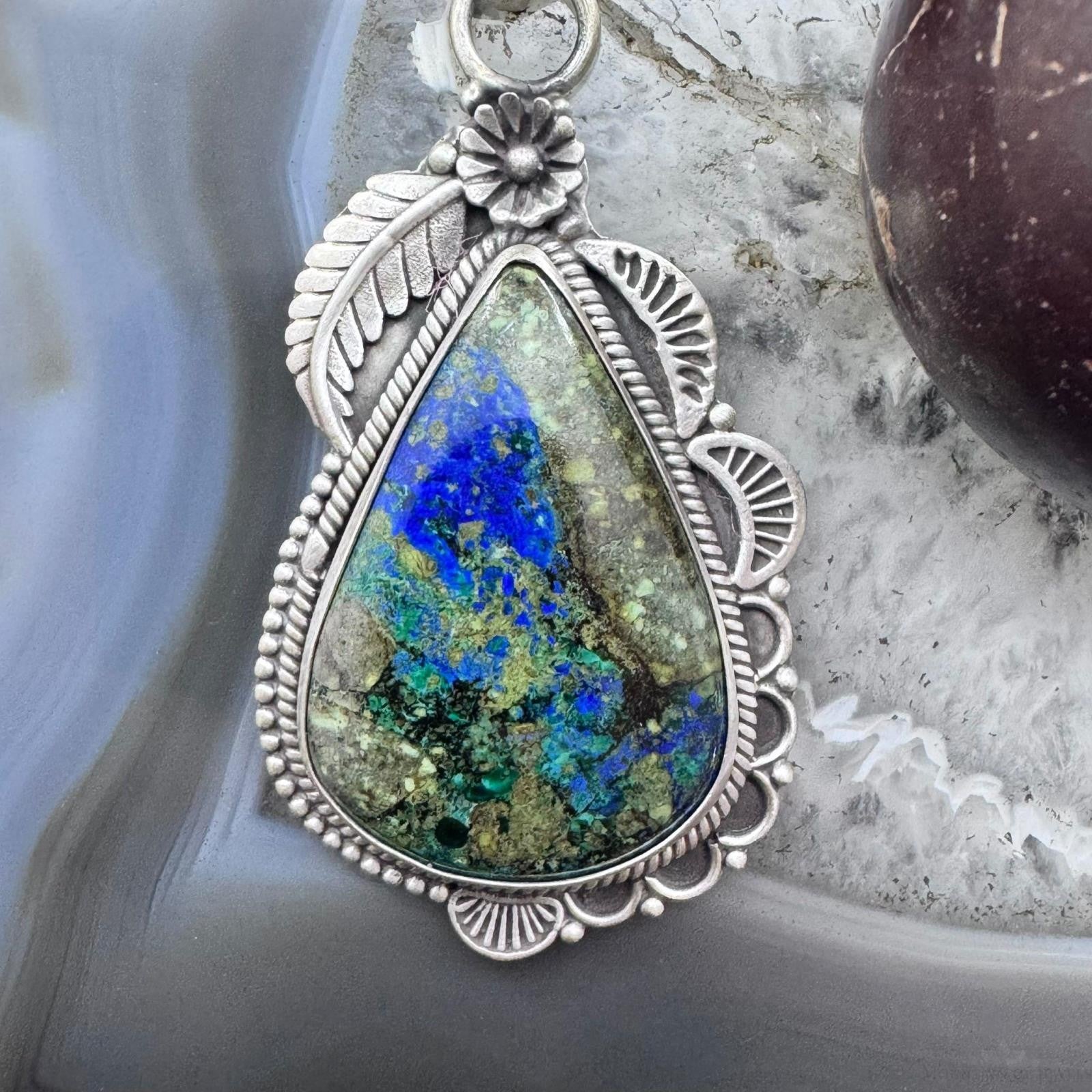 Sterling Silver Southwestern Style Teardrop Chrysocolla Decorated Pendant For Women