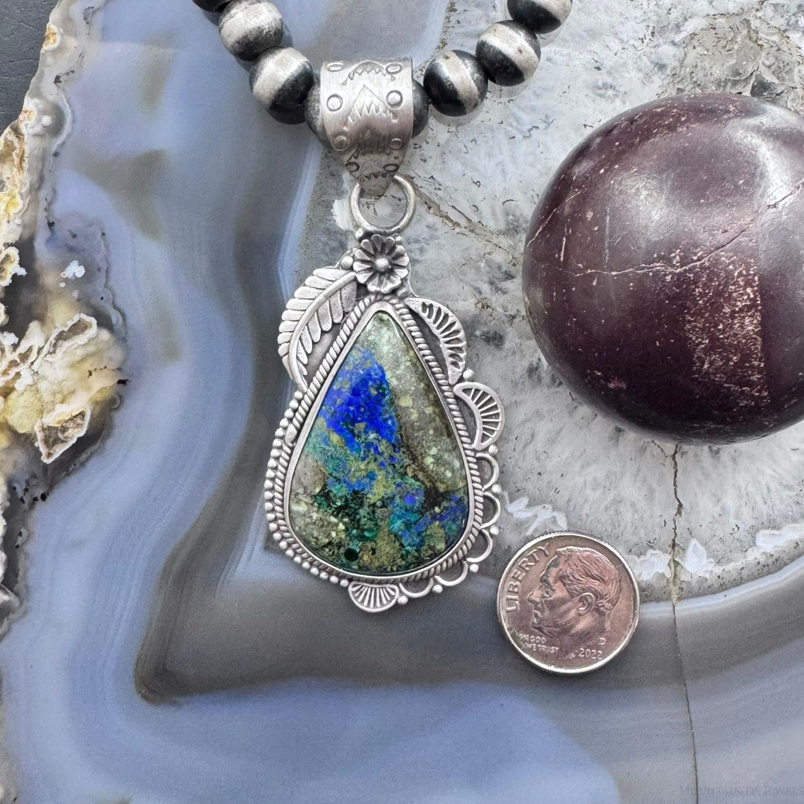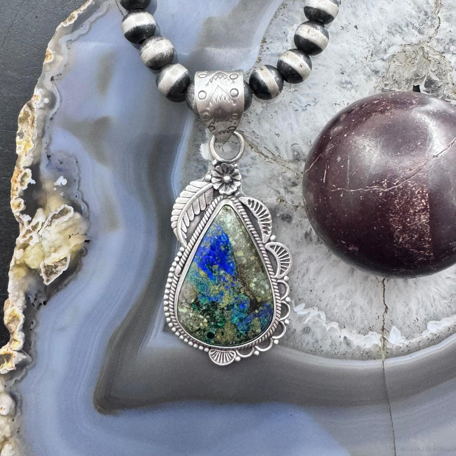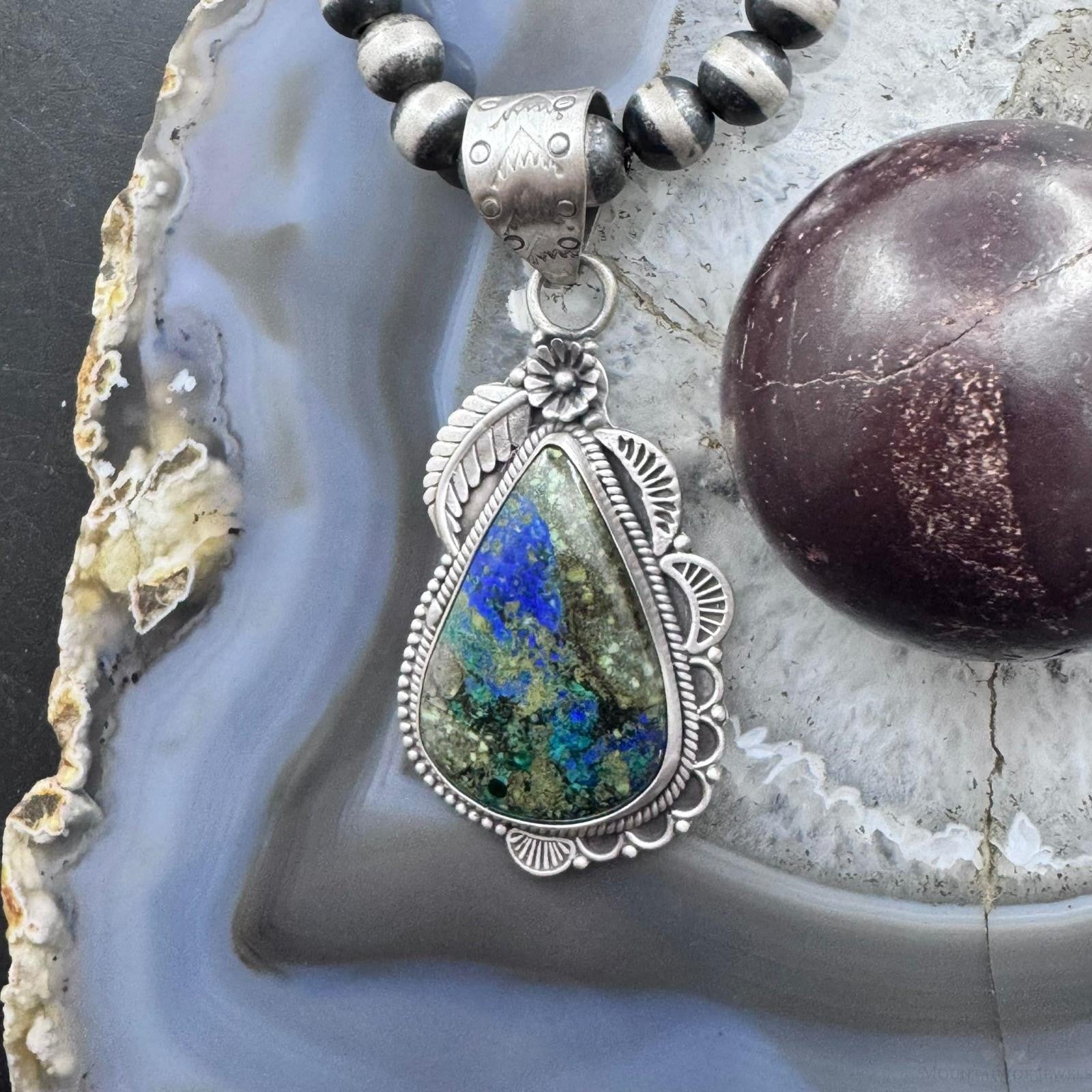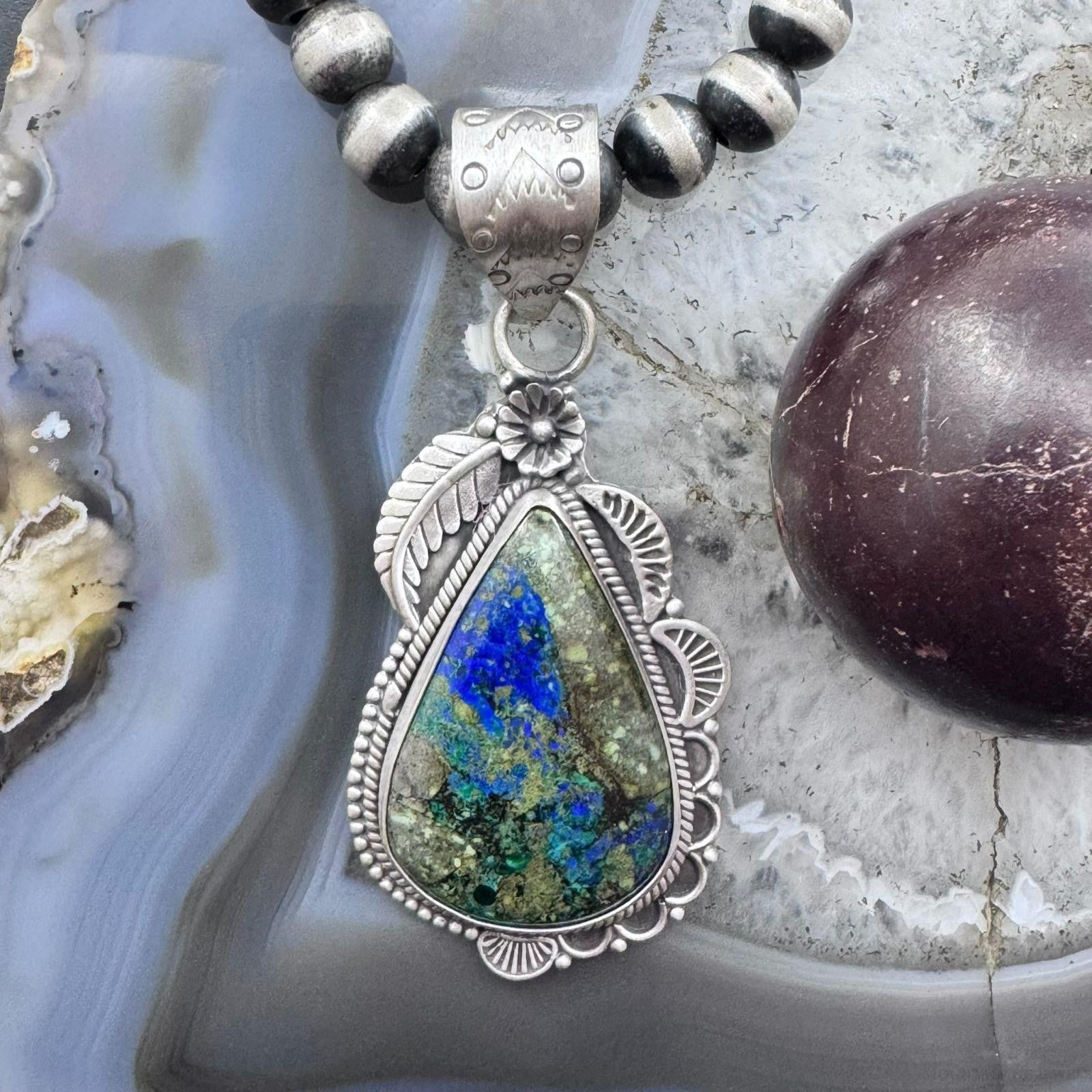 Sterling Silver Southwestern Style Teardrop Chrysocolla Decorated Pendant For Women