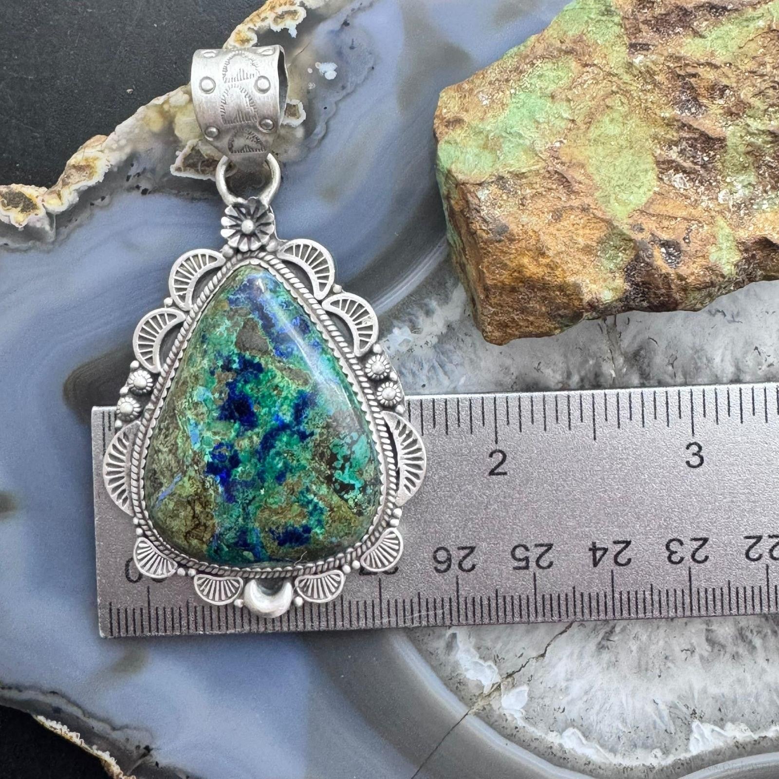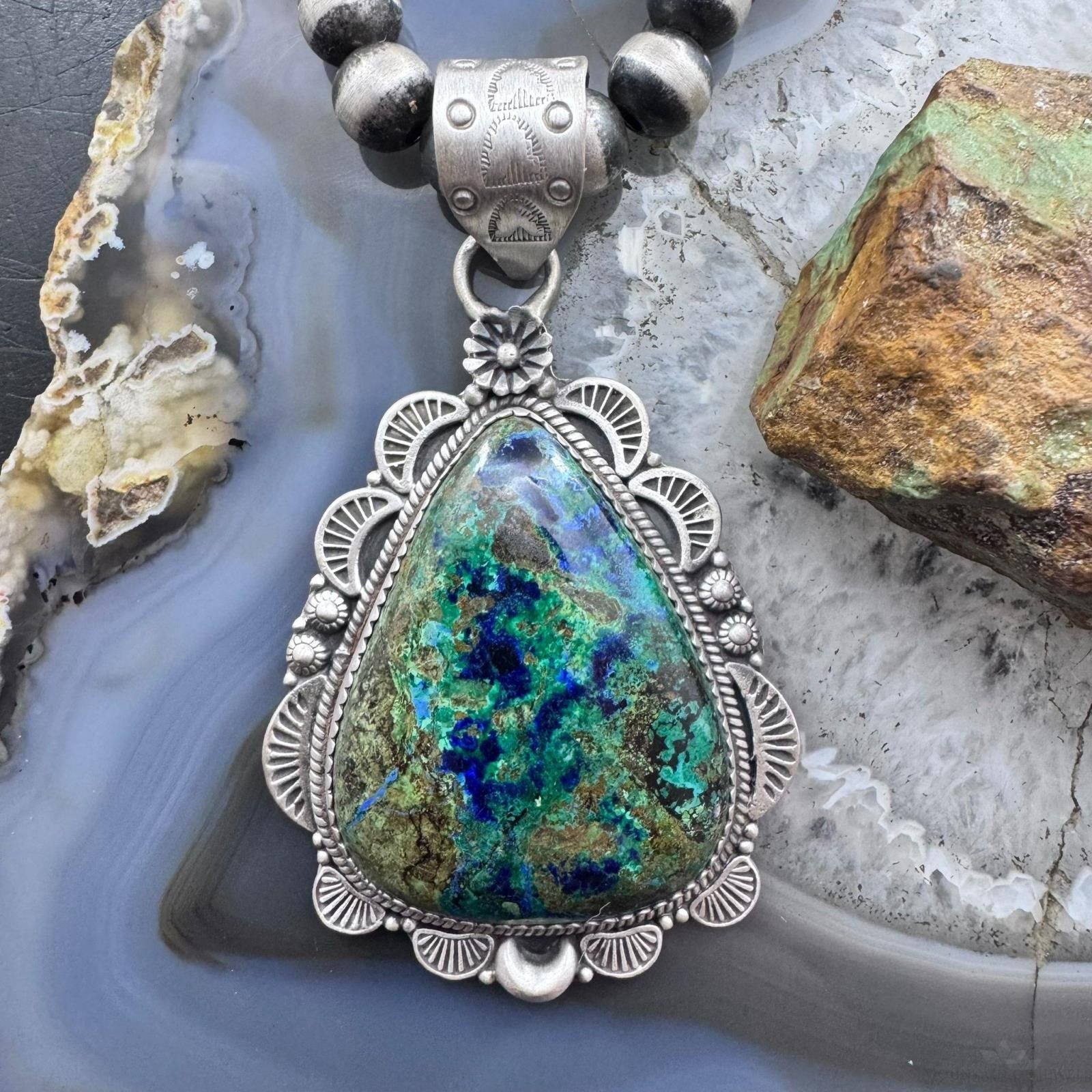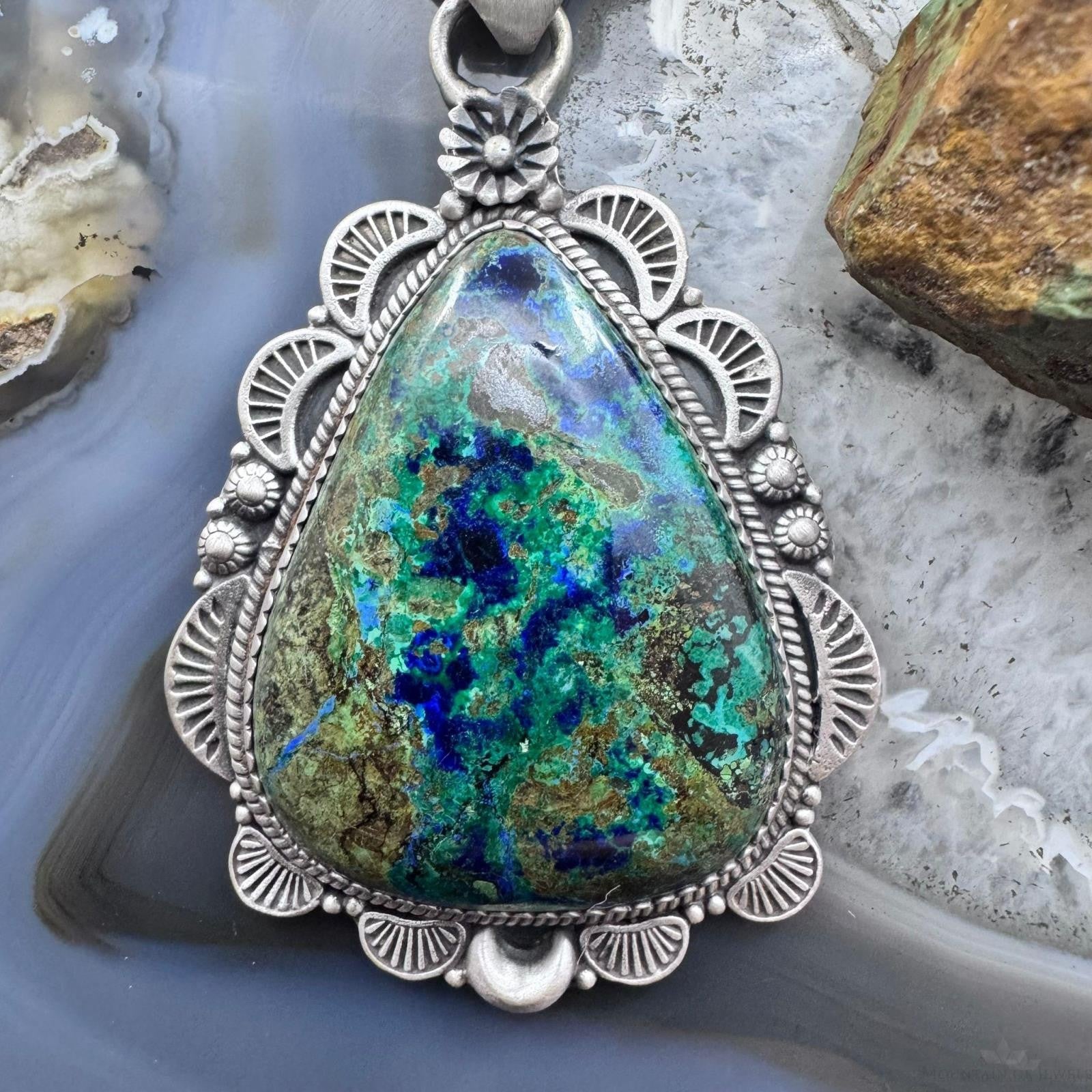 Sterling Silver Southwestern Style Teardrop Chrysocolla Decorated Pendant For Women