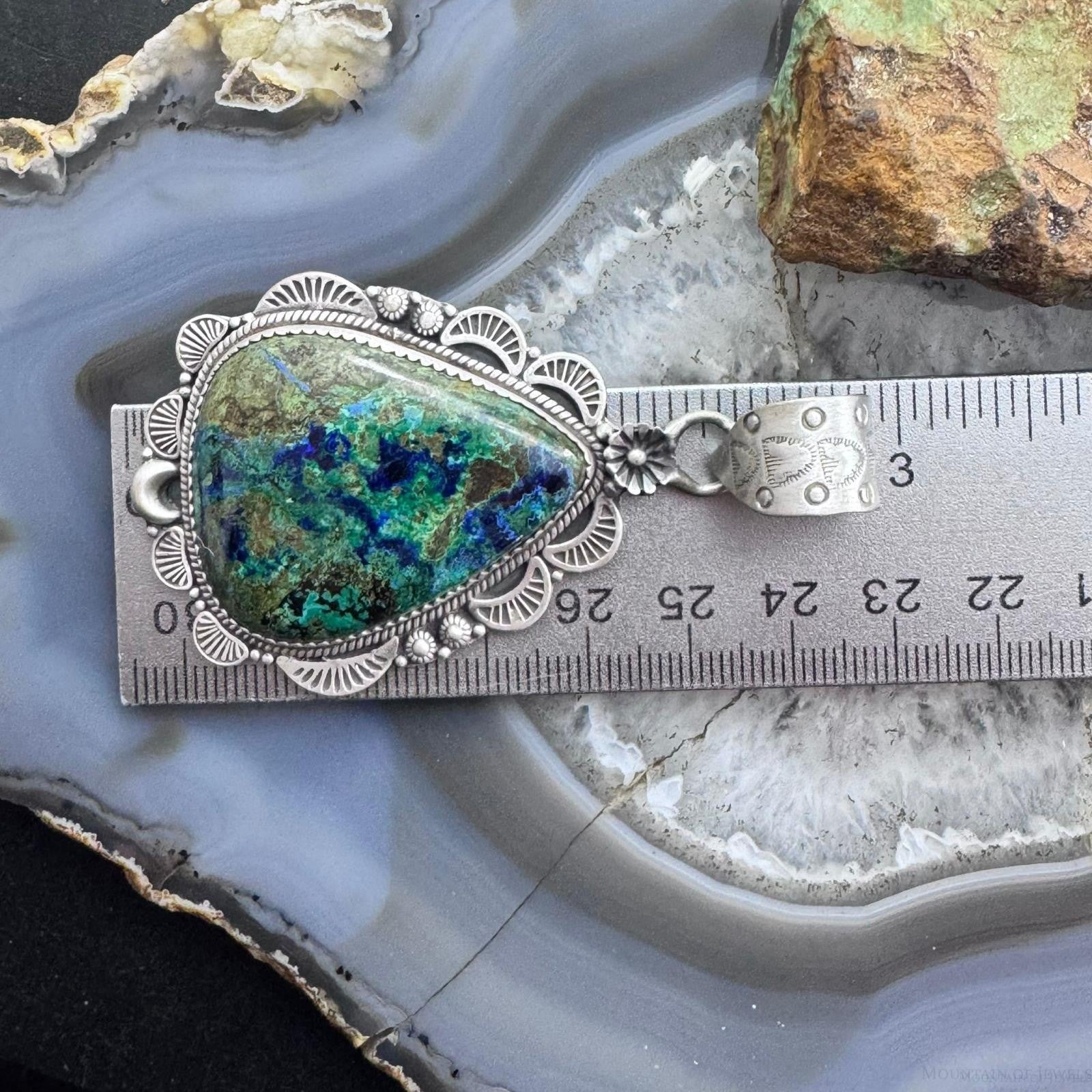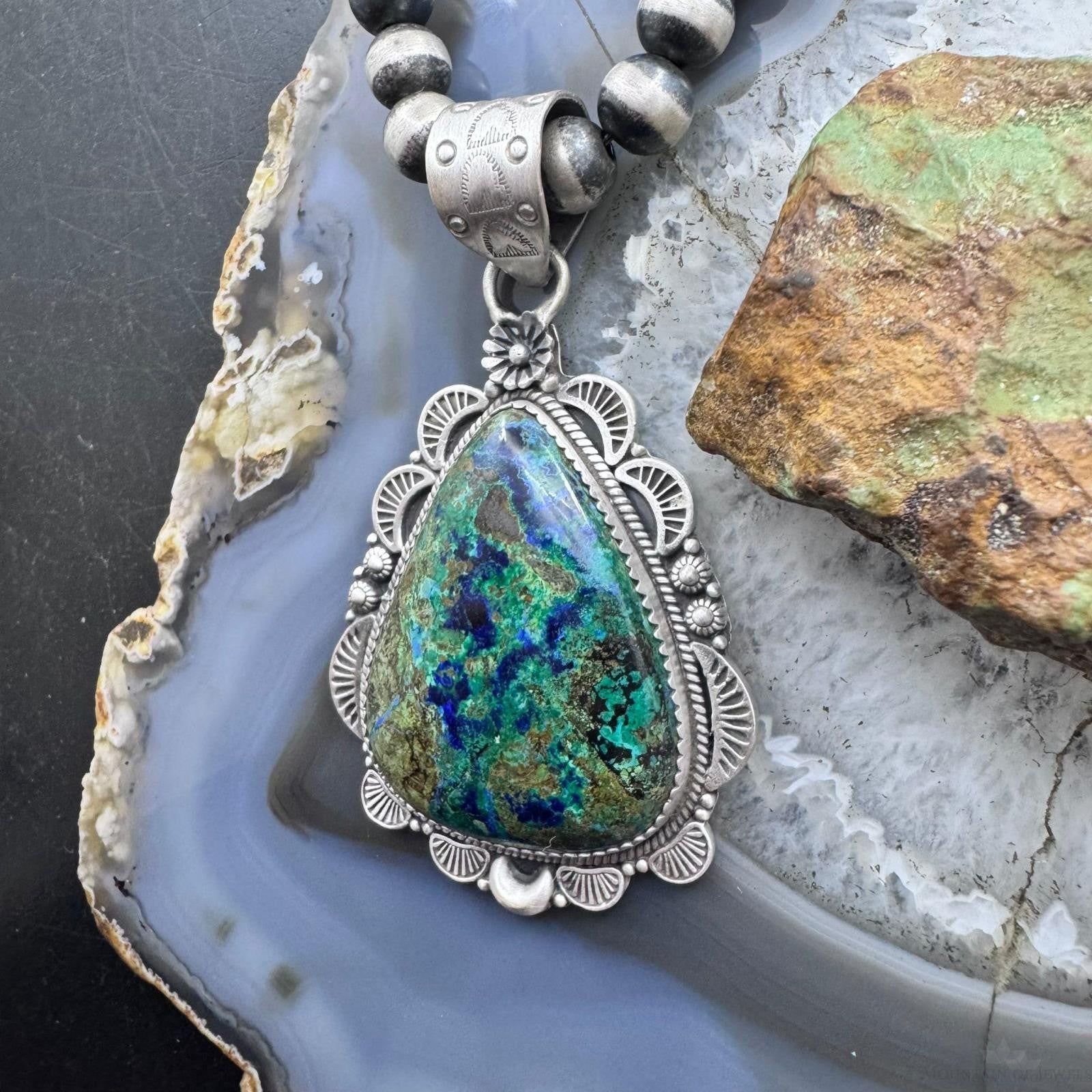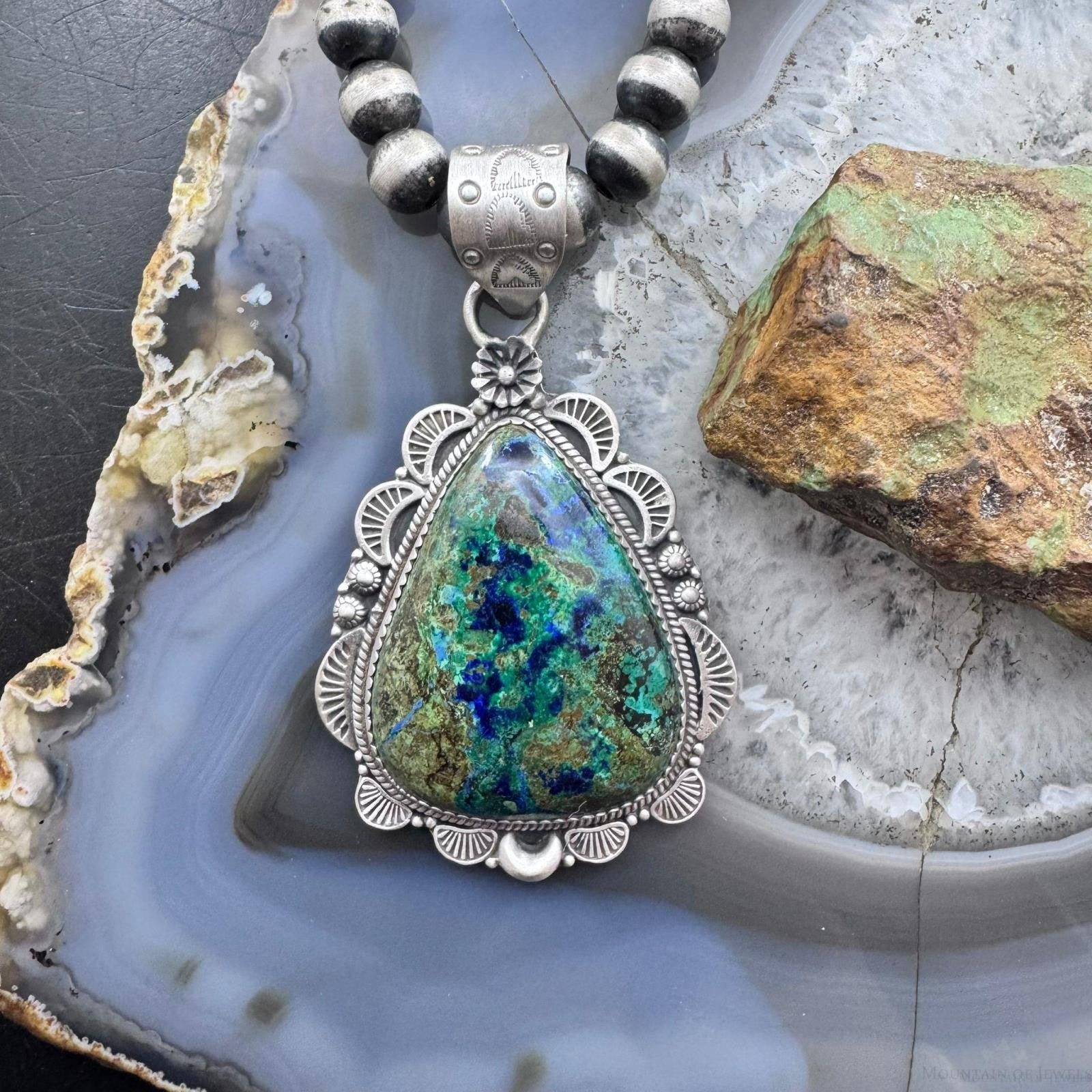 Sterling Silver Southwestern Style Teardrop Chrysocolla Decorated Pendant For Women