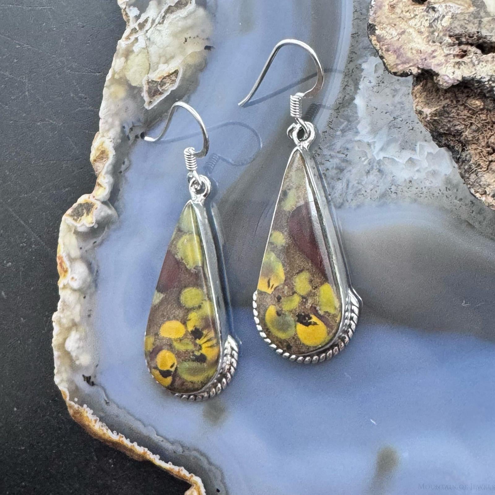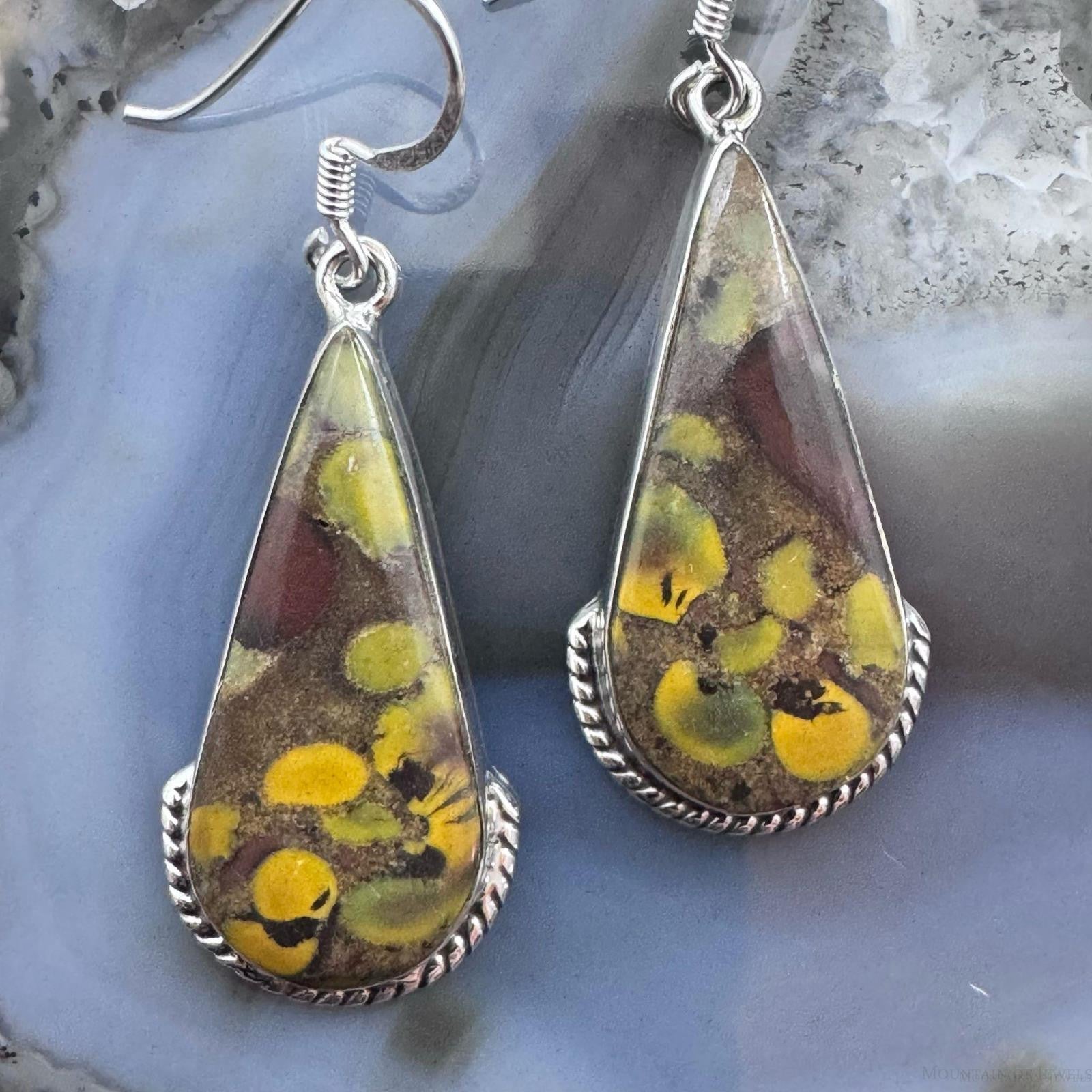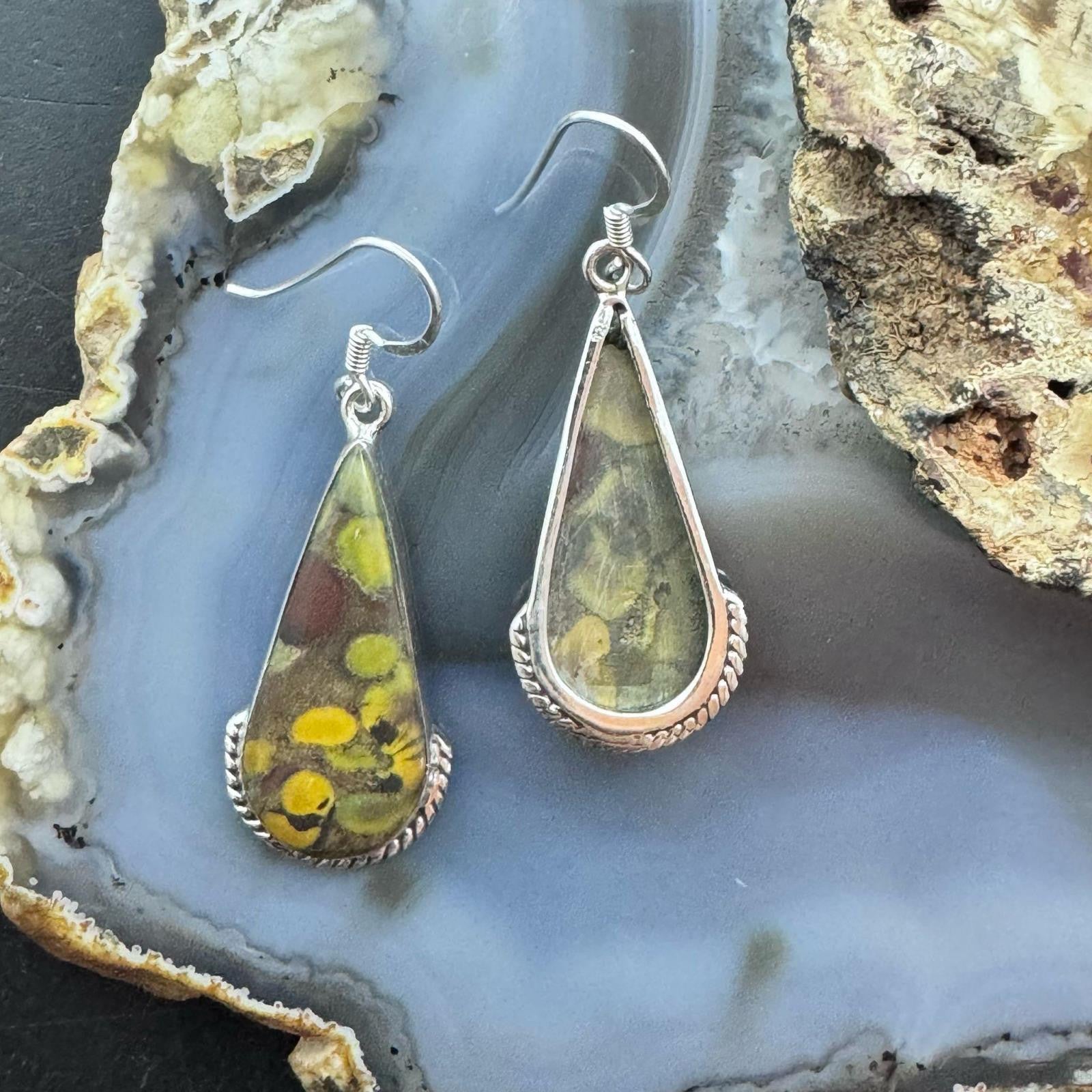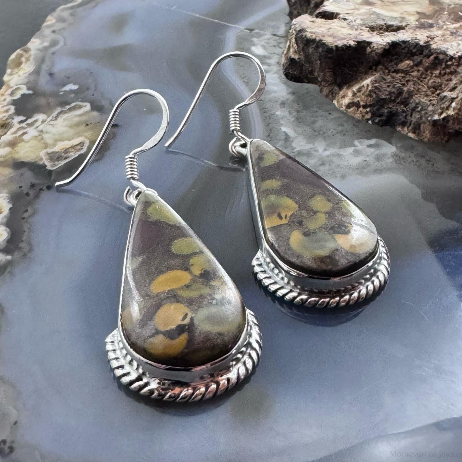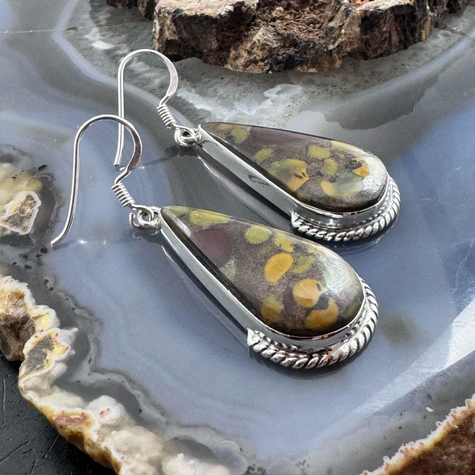 Sterling Silver Southwestern Style Teardrop Fruit Jasper Dangle Earrings For Women
