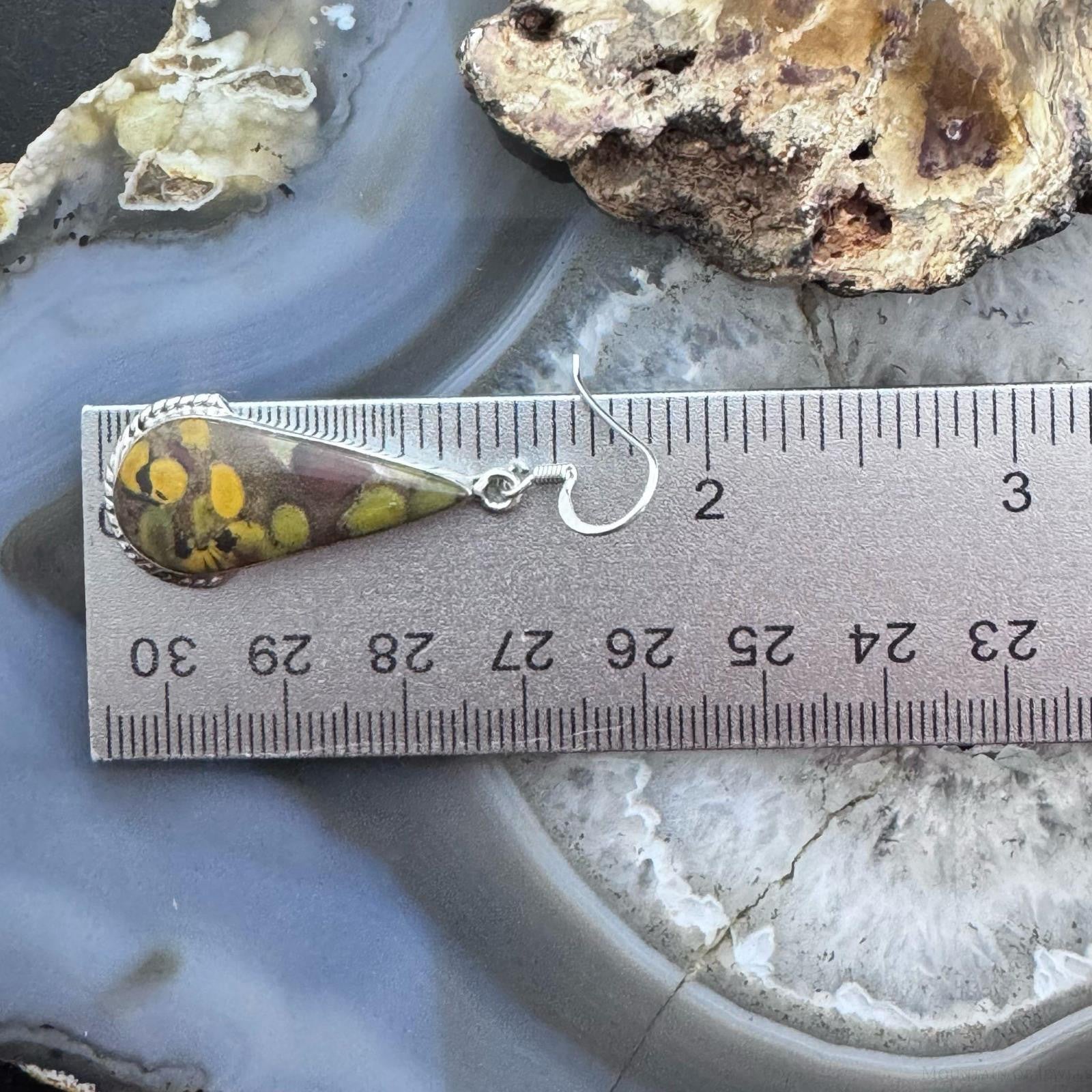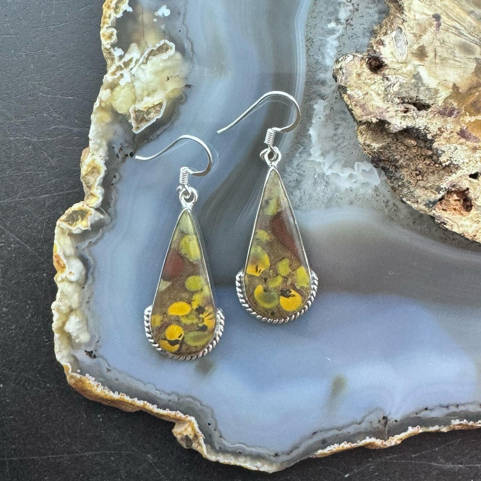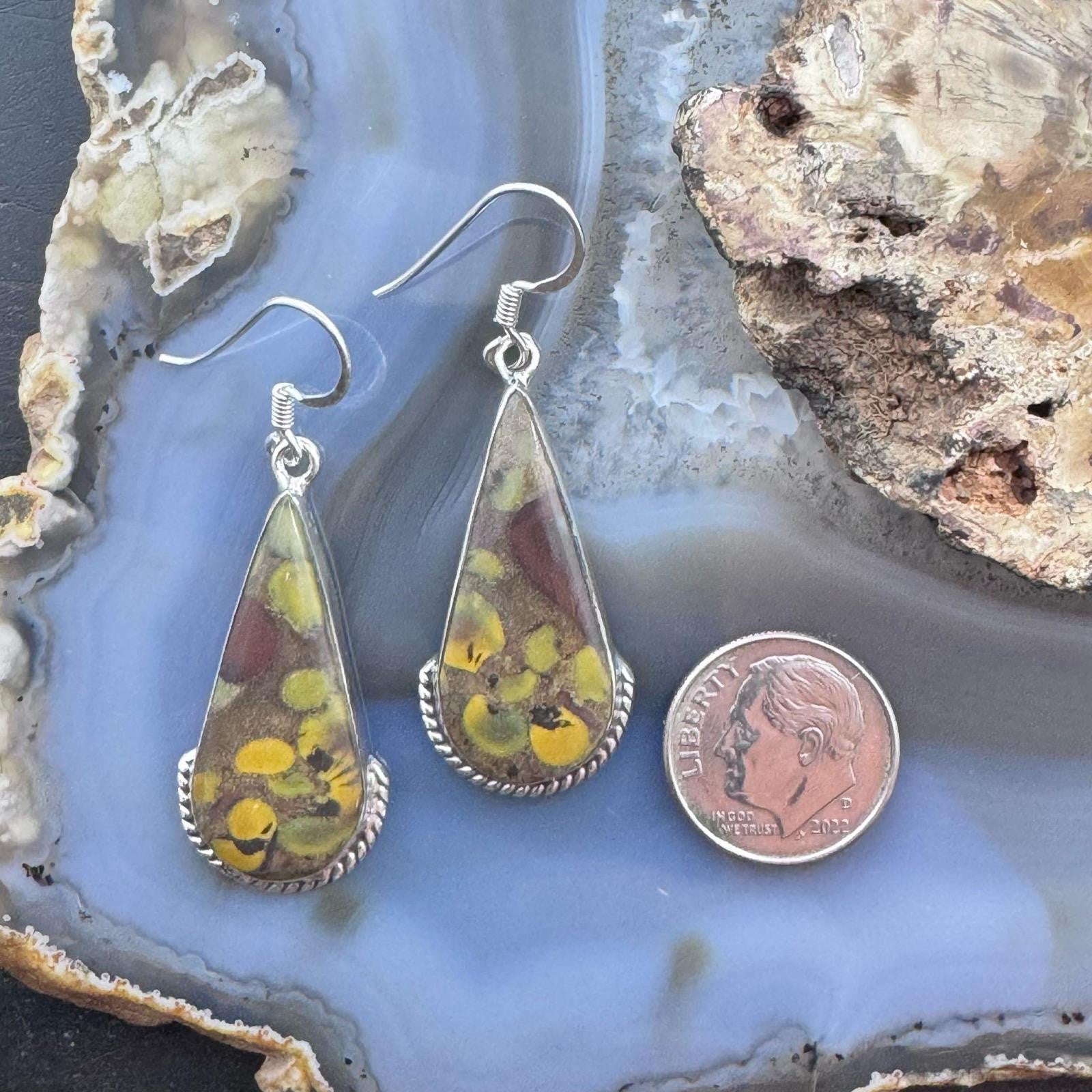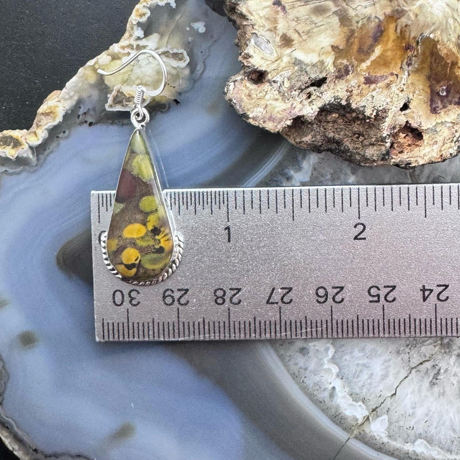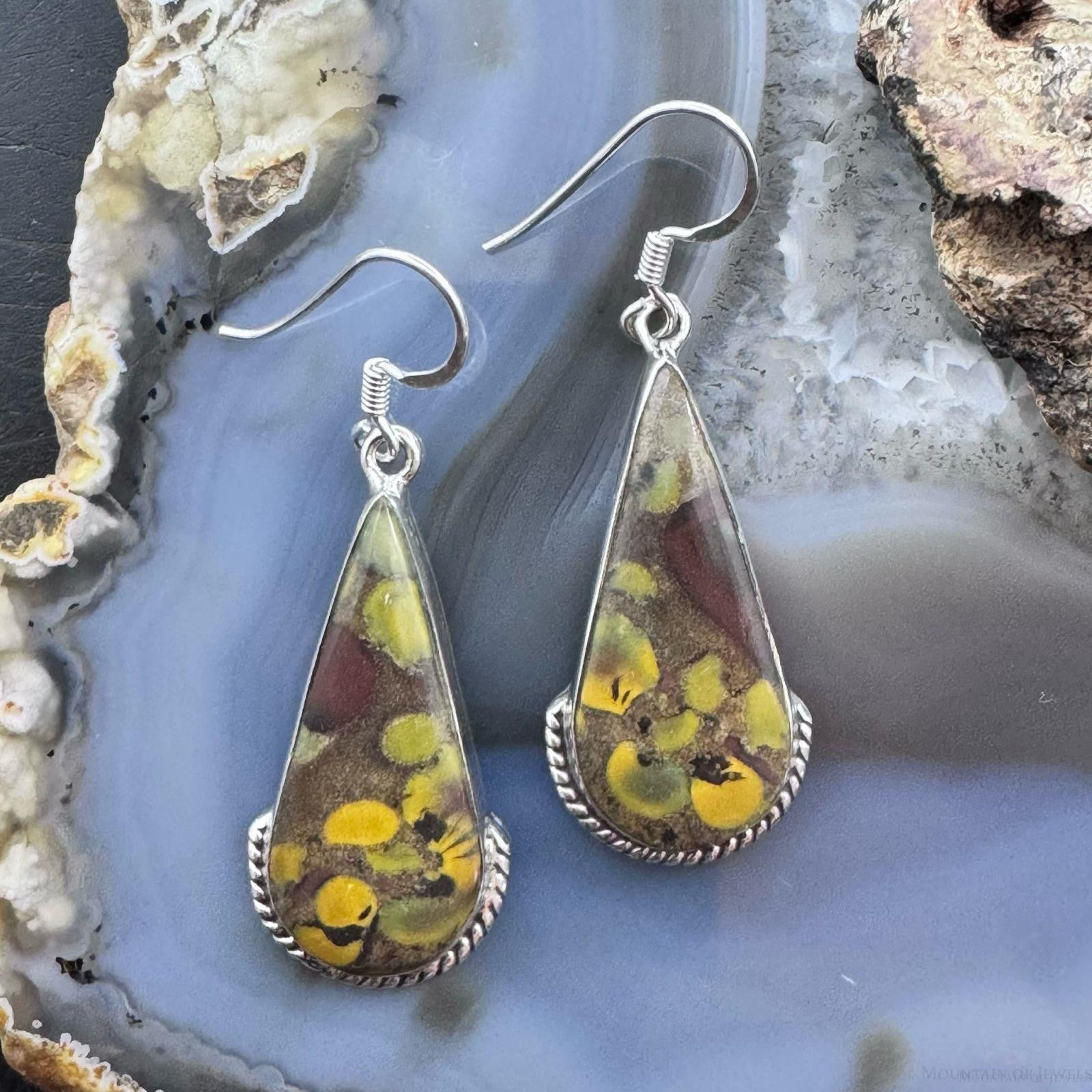 Sterling Silver Southwestern Style Teardrop Fruit Jasper Dangle Earrings For Women
