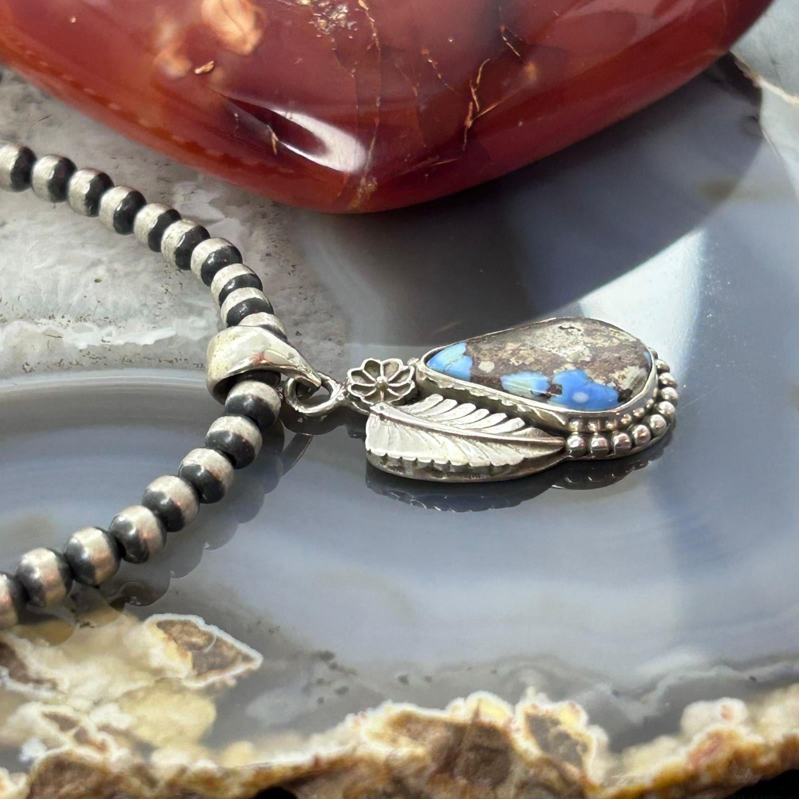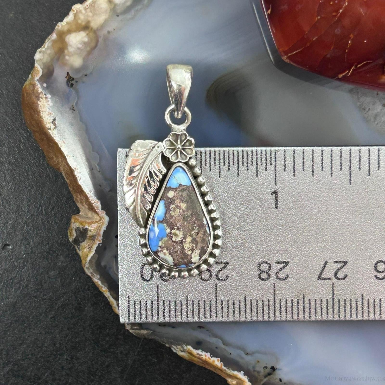 Sterling Silver Southwestern Style Teardrop Golden Hill Turquoise Leaves Pendant For Women