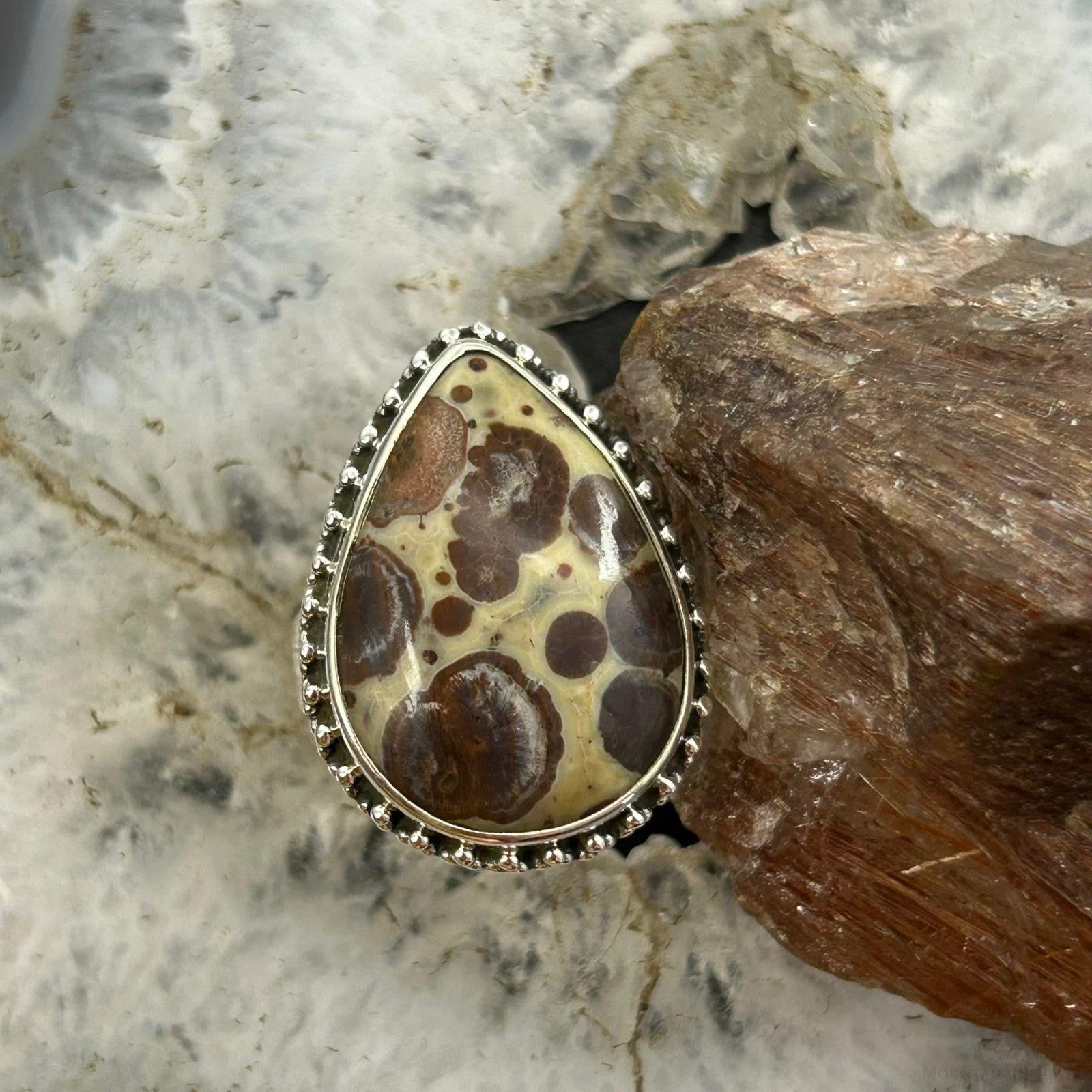 Sterling Silver Southwestern Style Teardrop Madagascan Asteroid Jasper Ring For Women