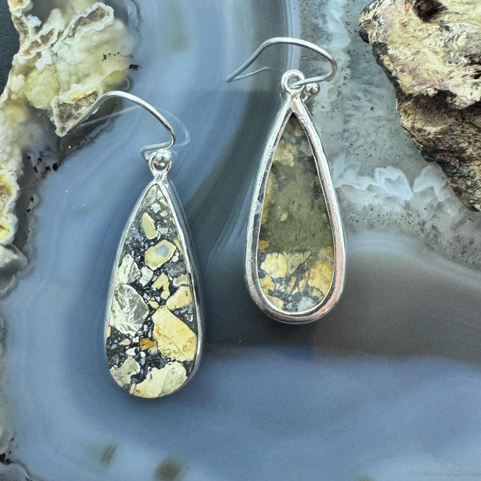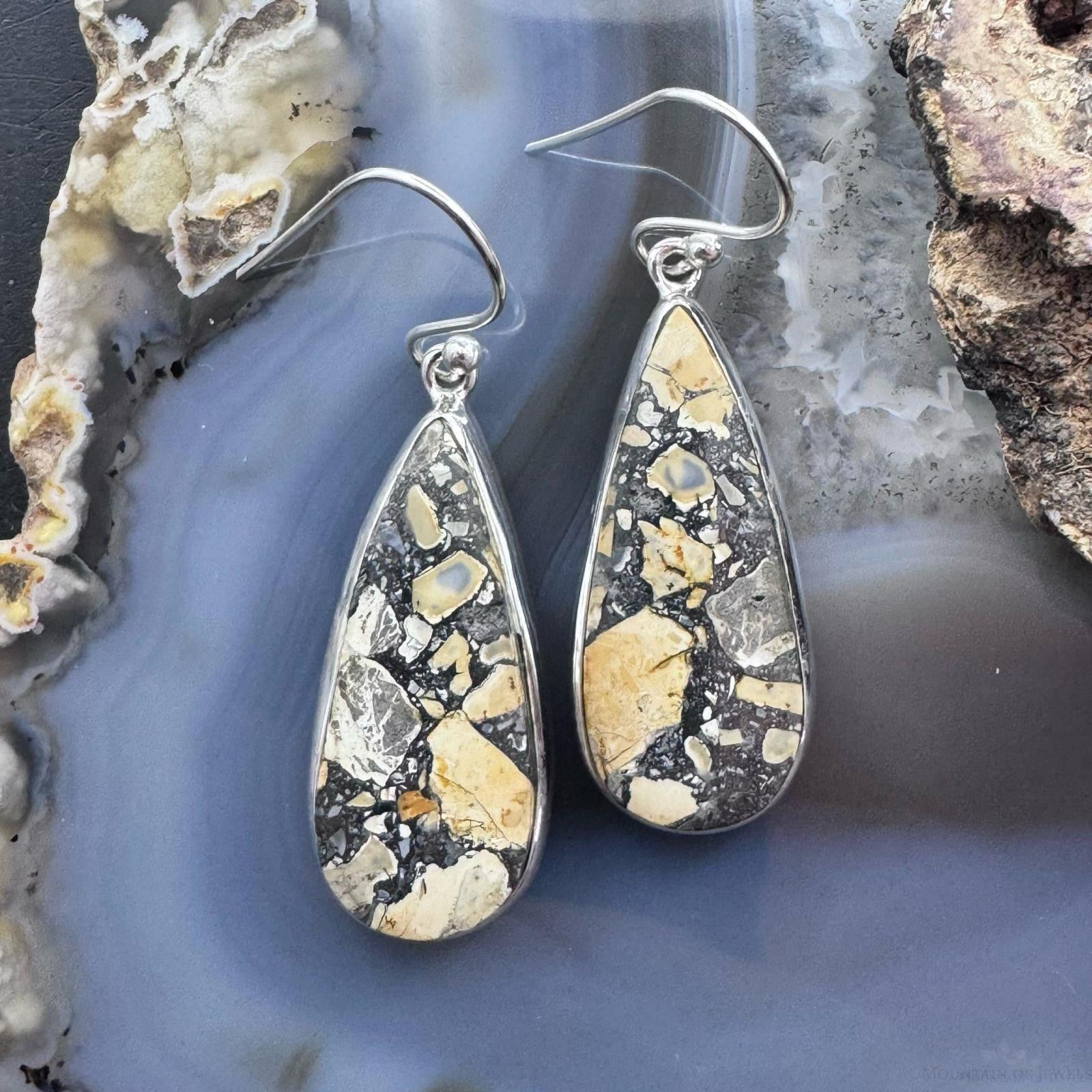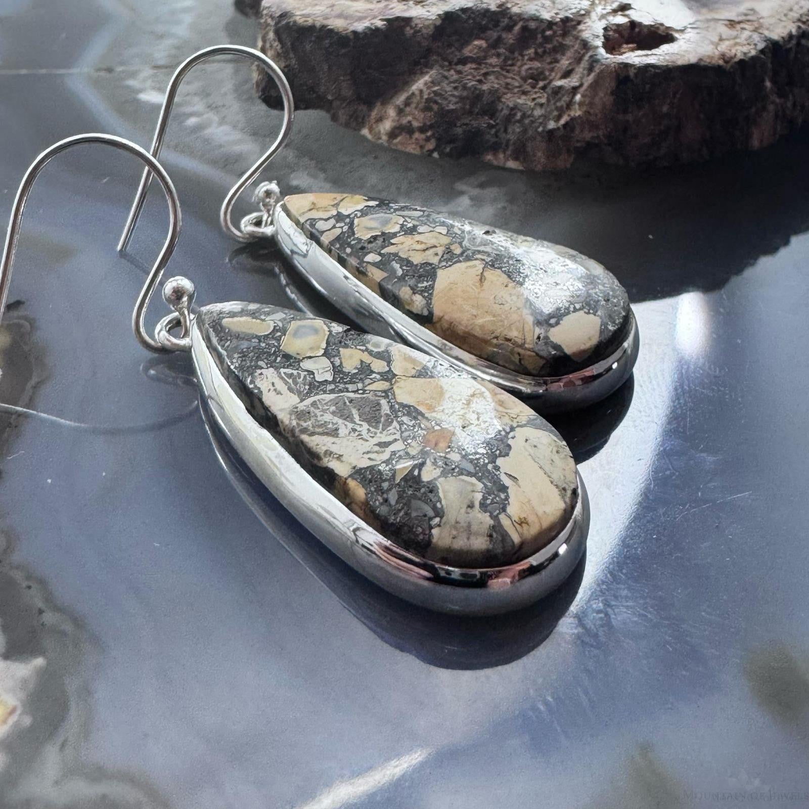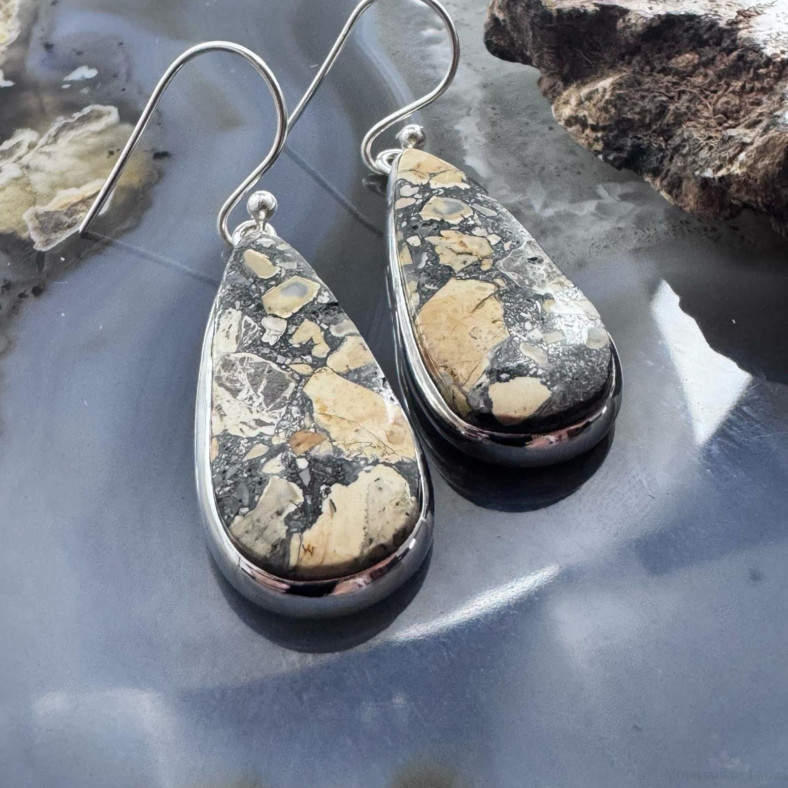 Sterling Silver Southwestern Style Teardrop Maligano Jasper Dangle Earrings For Women
