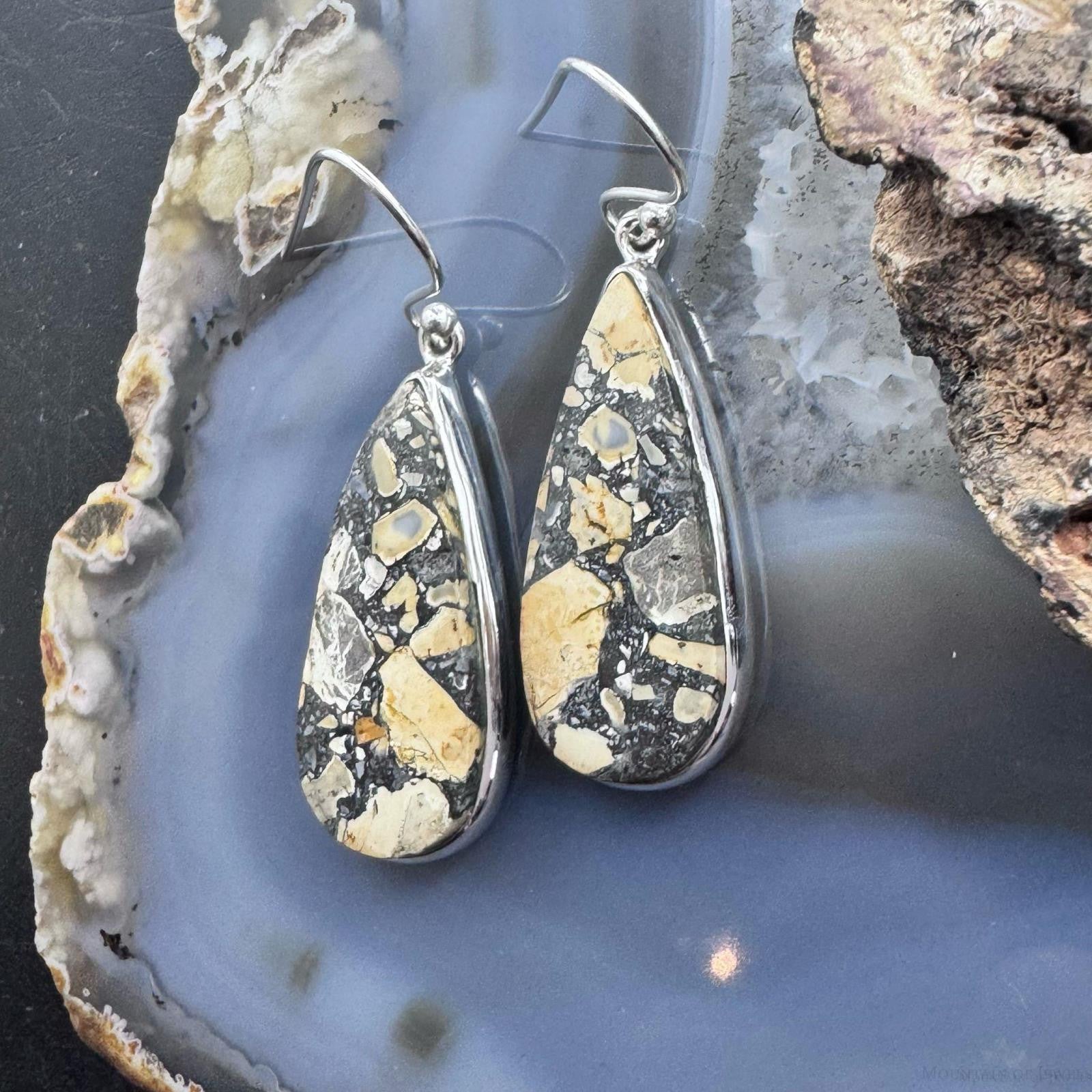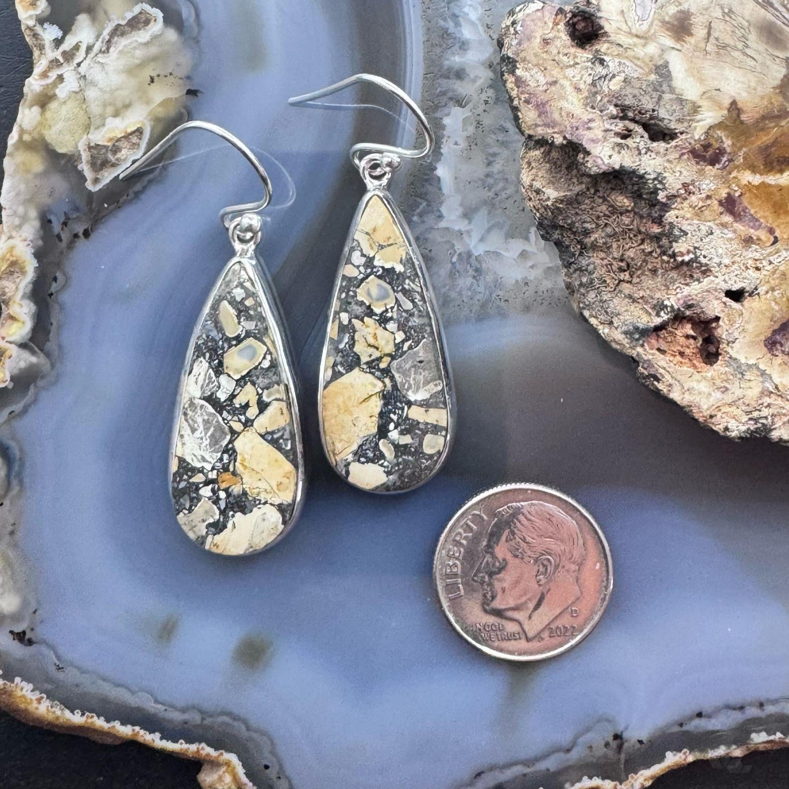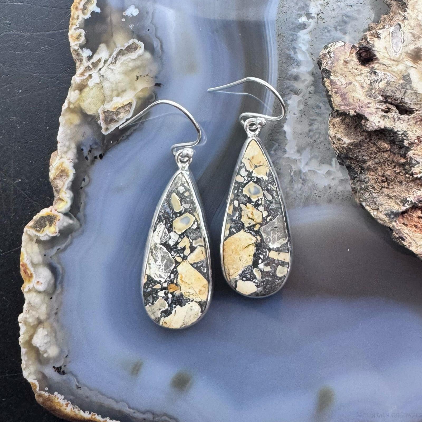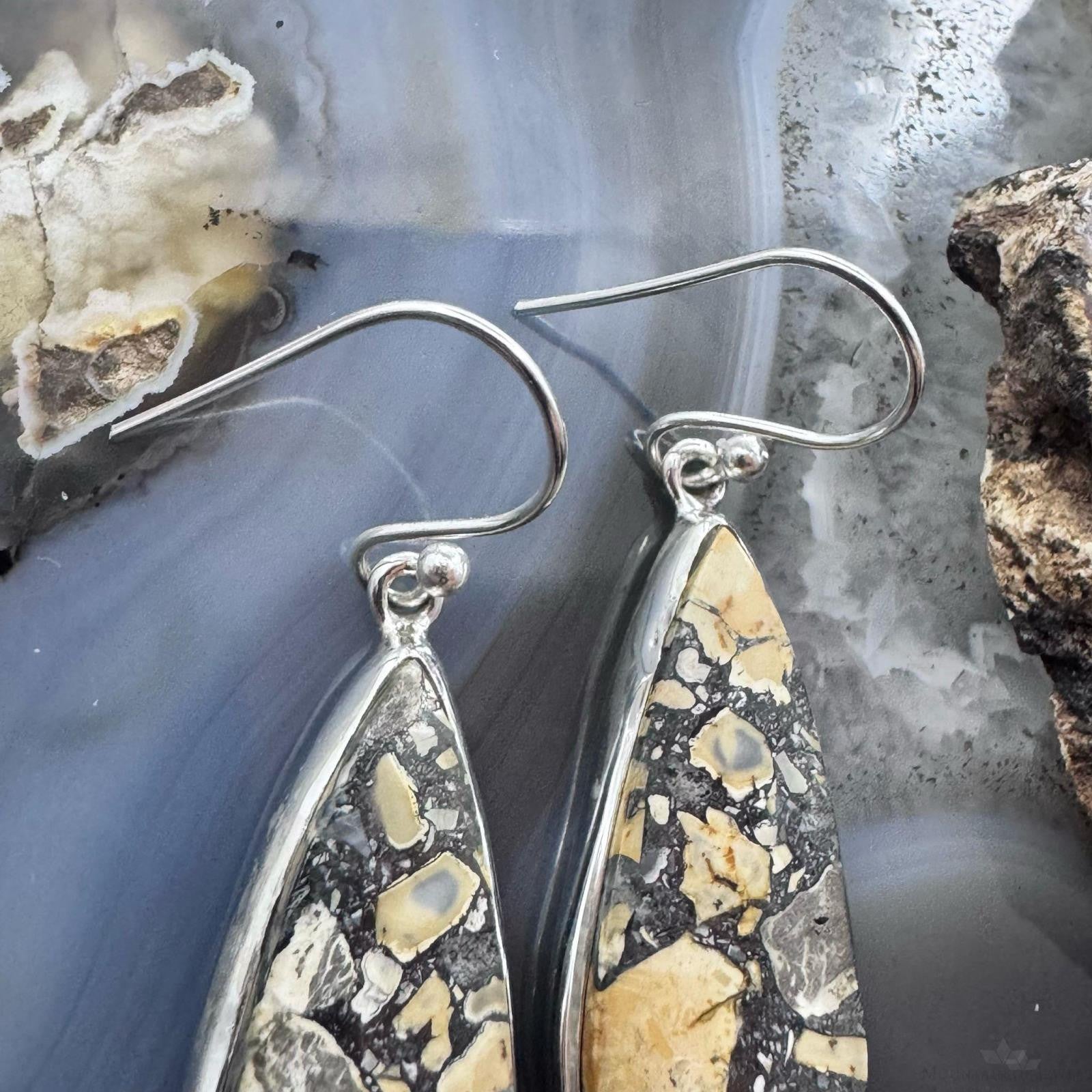 Sterling Silver Southwestern Style Teardrop Maligano Jasper Dangle Earrings For Women