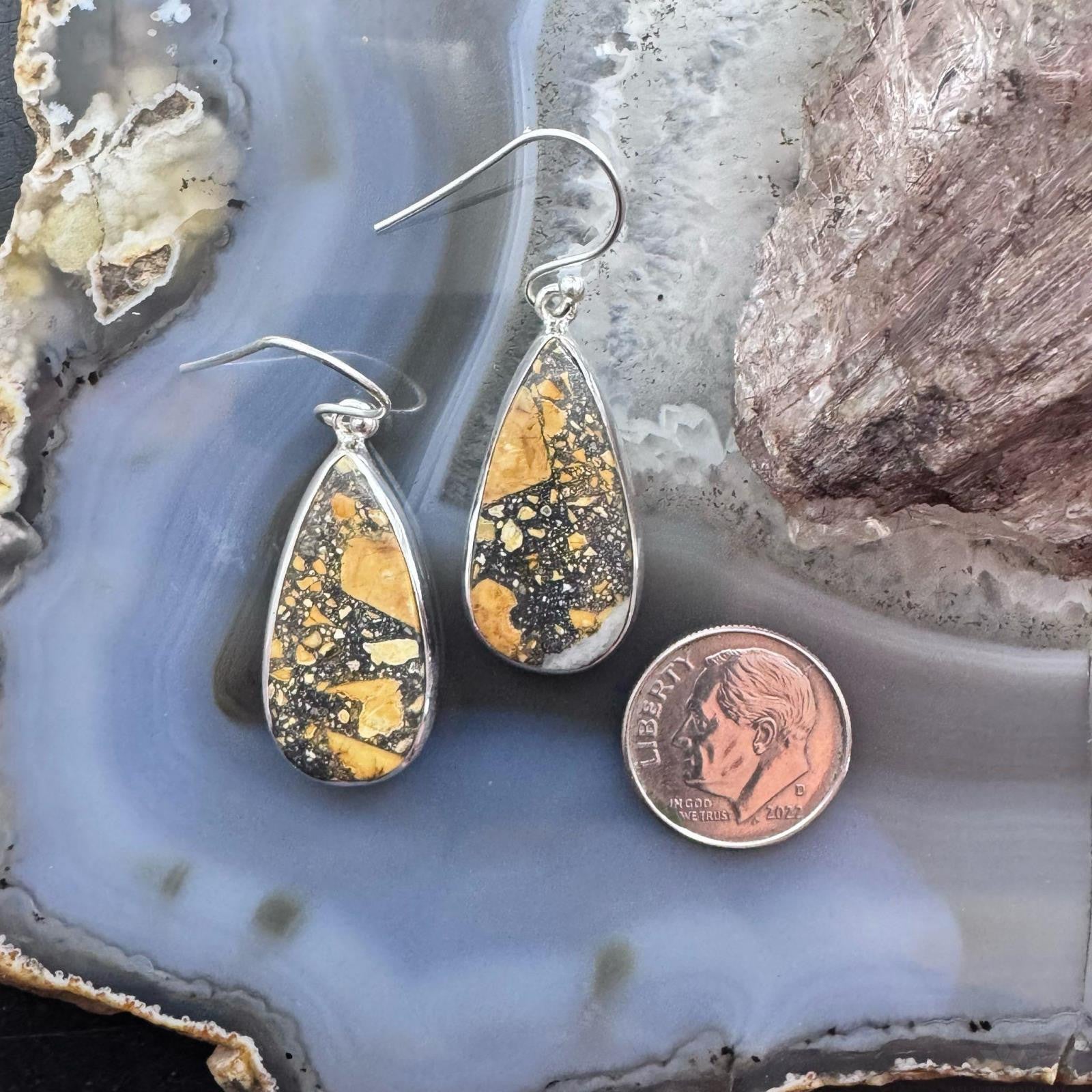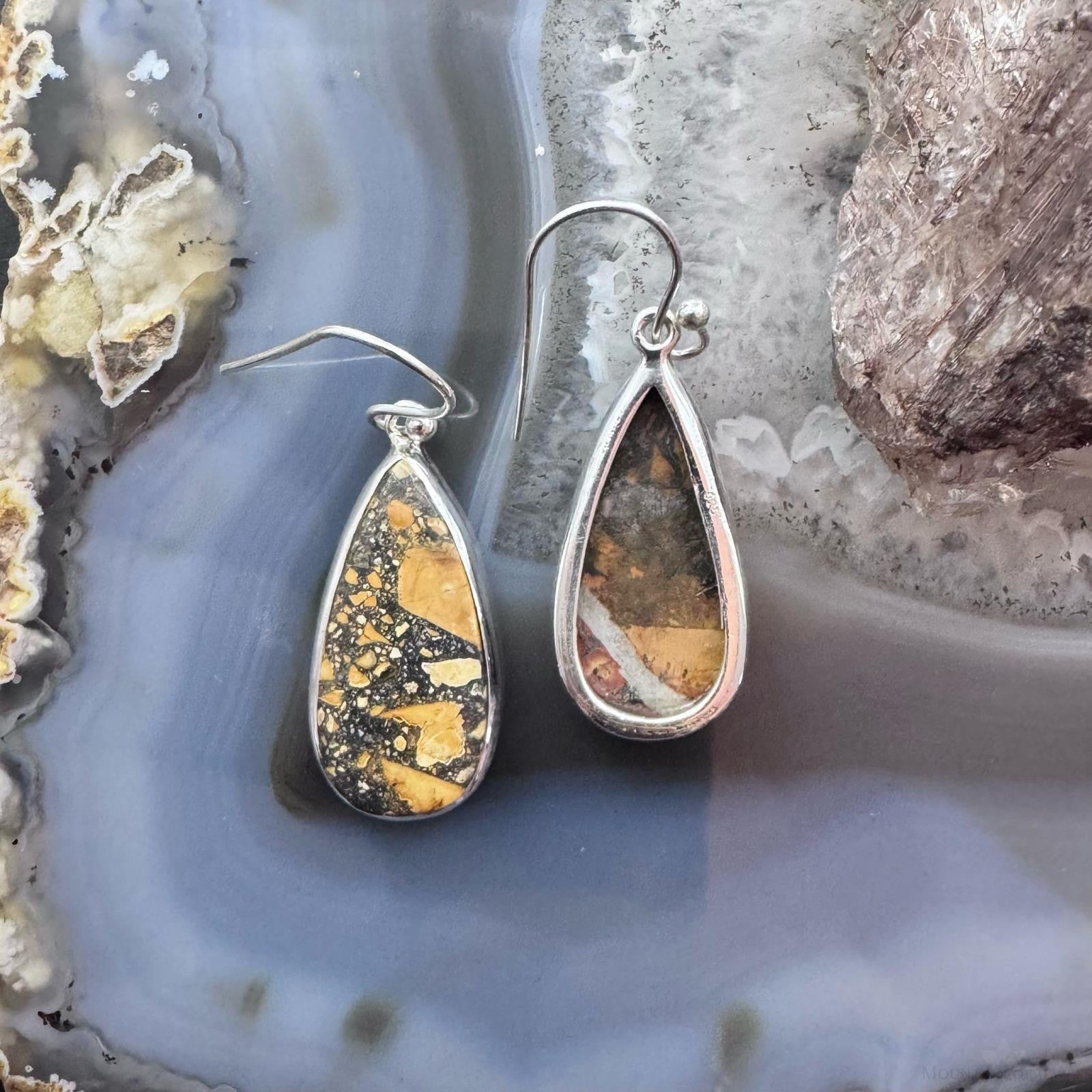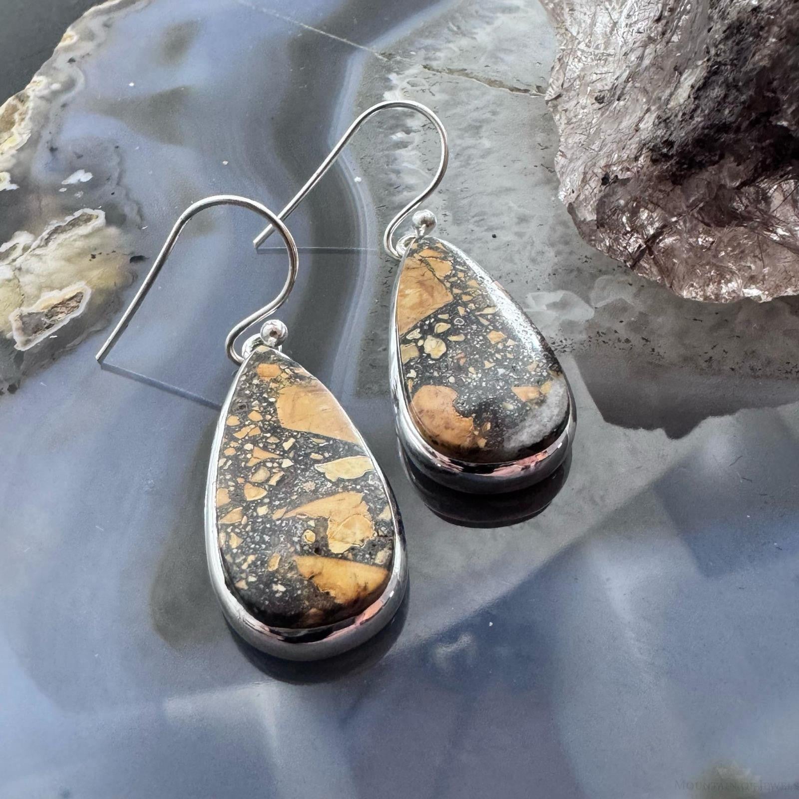 Sterling Silver Southwestern Style Teardrop Maligano Jasper Dangle Earrings For Women