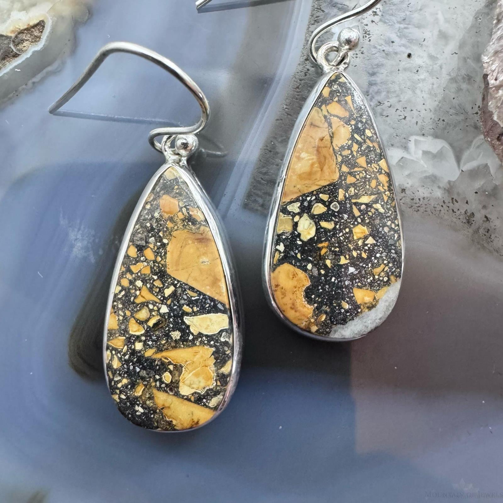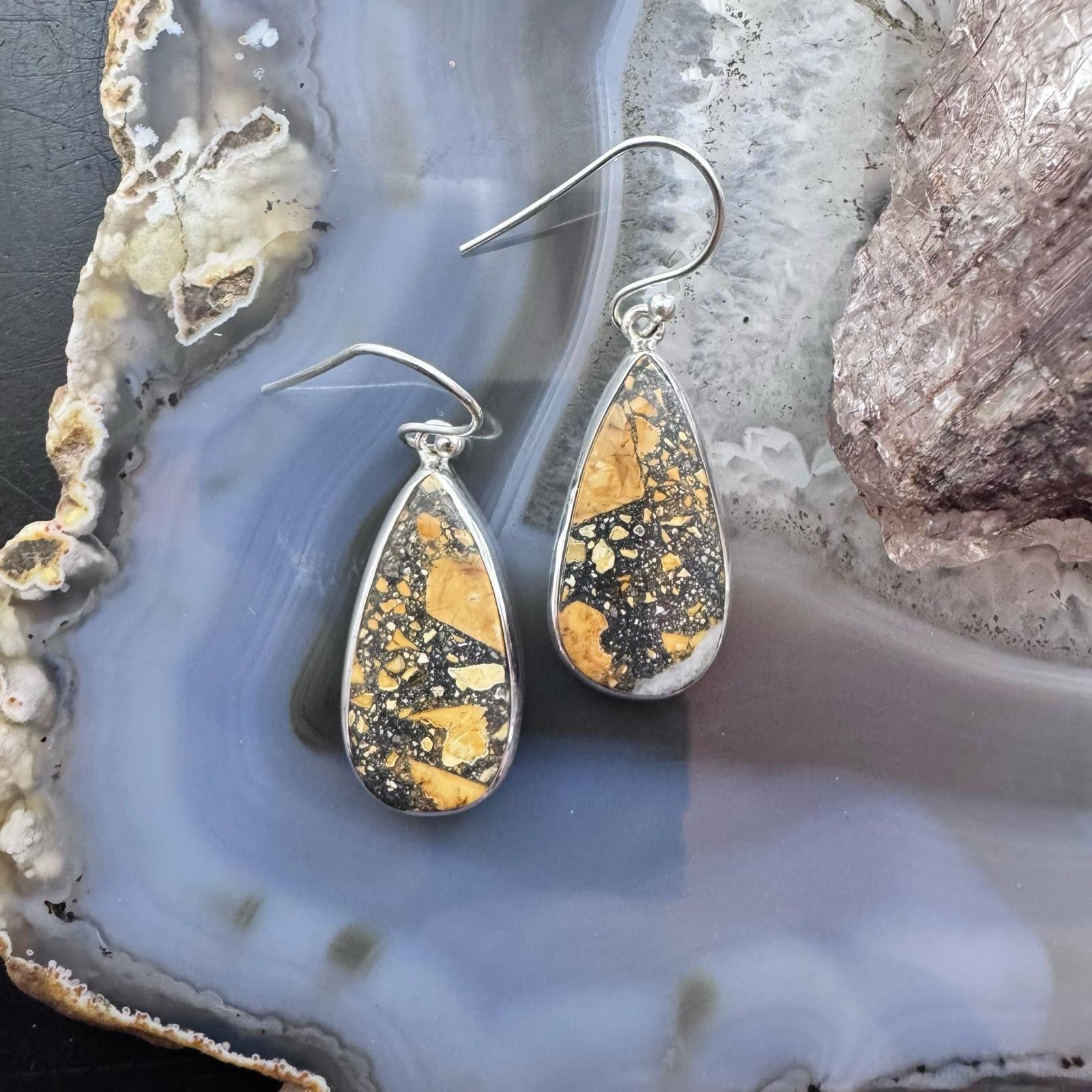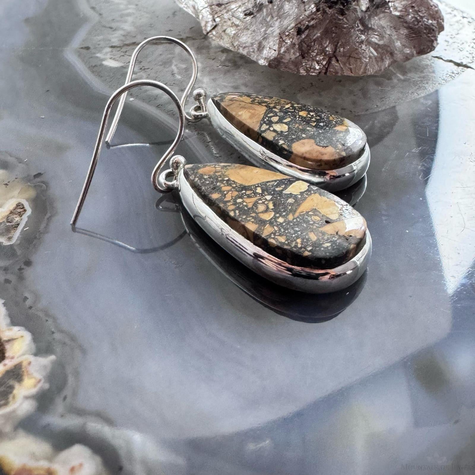 Sterling Silver Southwestern Style Teardrop Maligano Jasper Dangle Earrings For Women