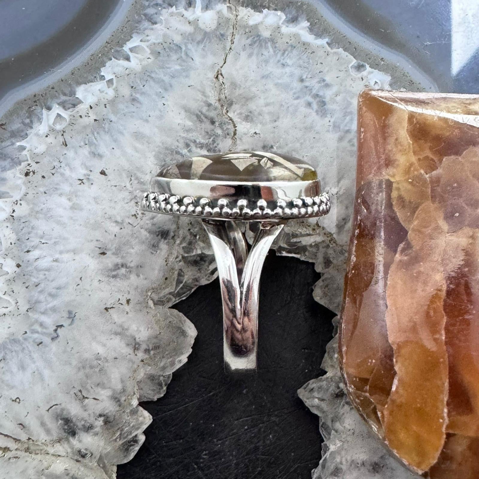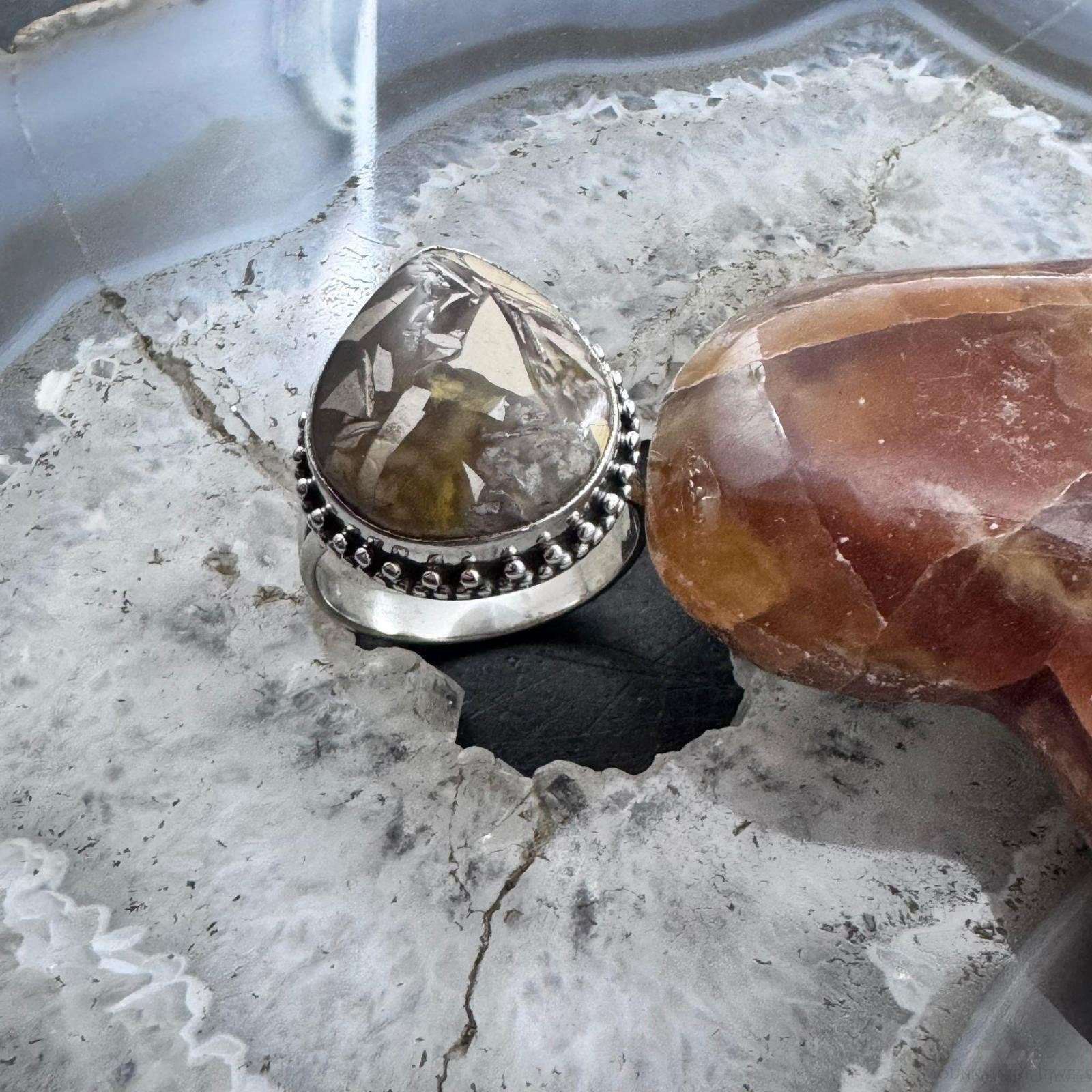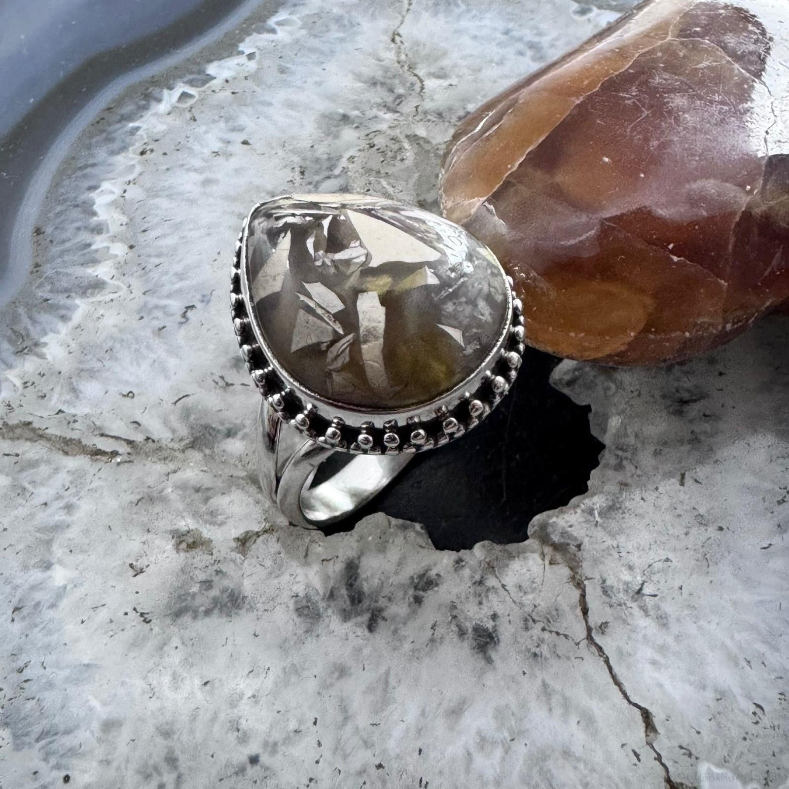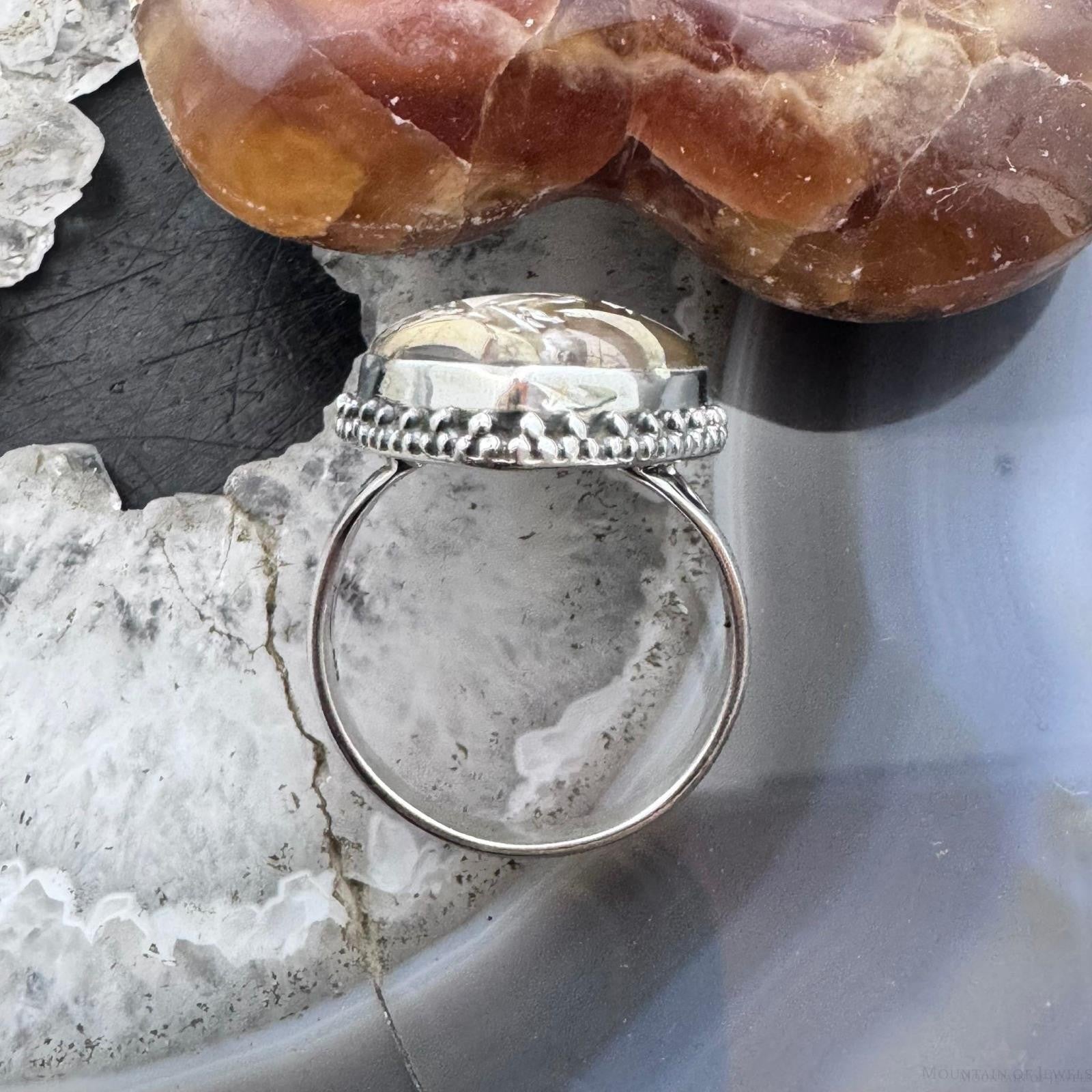 Sterling Silver Southwestern Style Teardrop Peanut Wood Decorated Ring Size 10 For Women