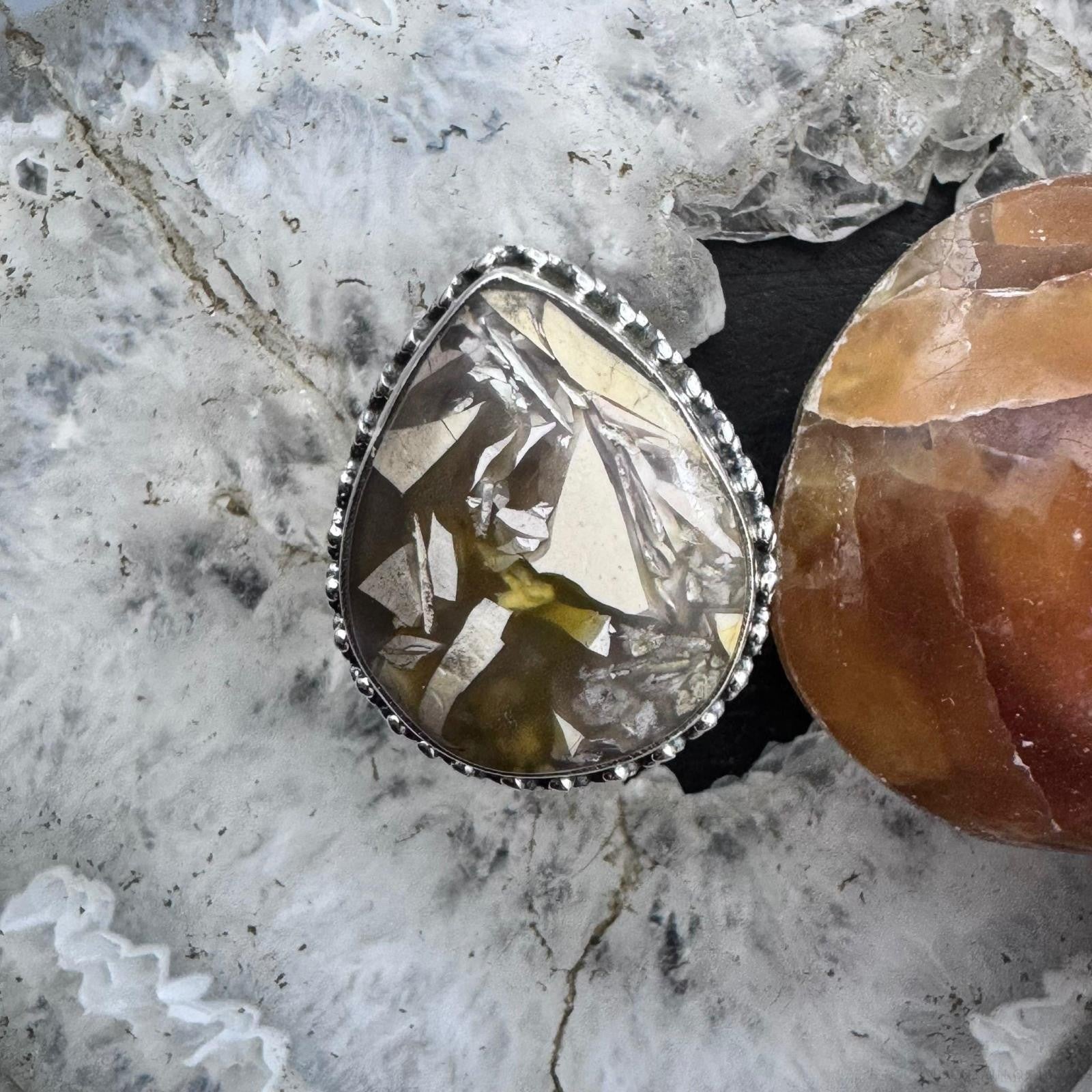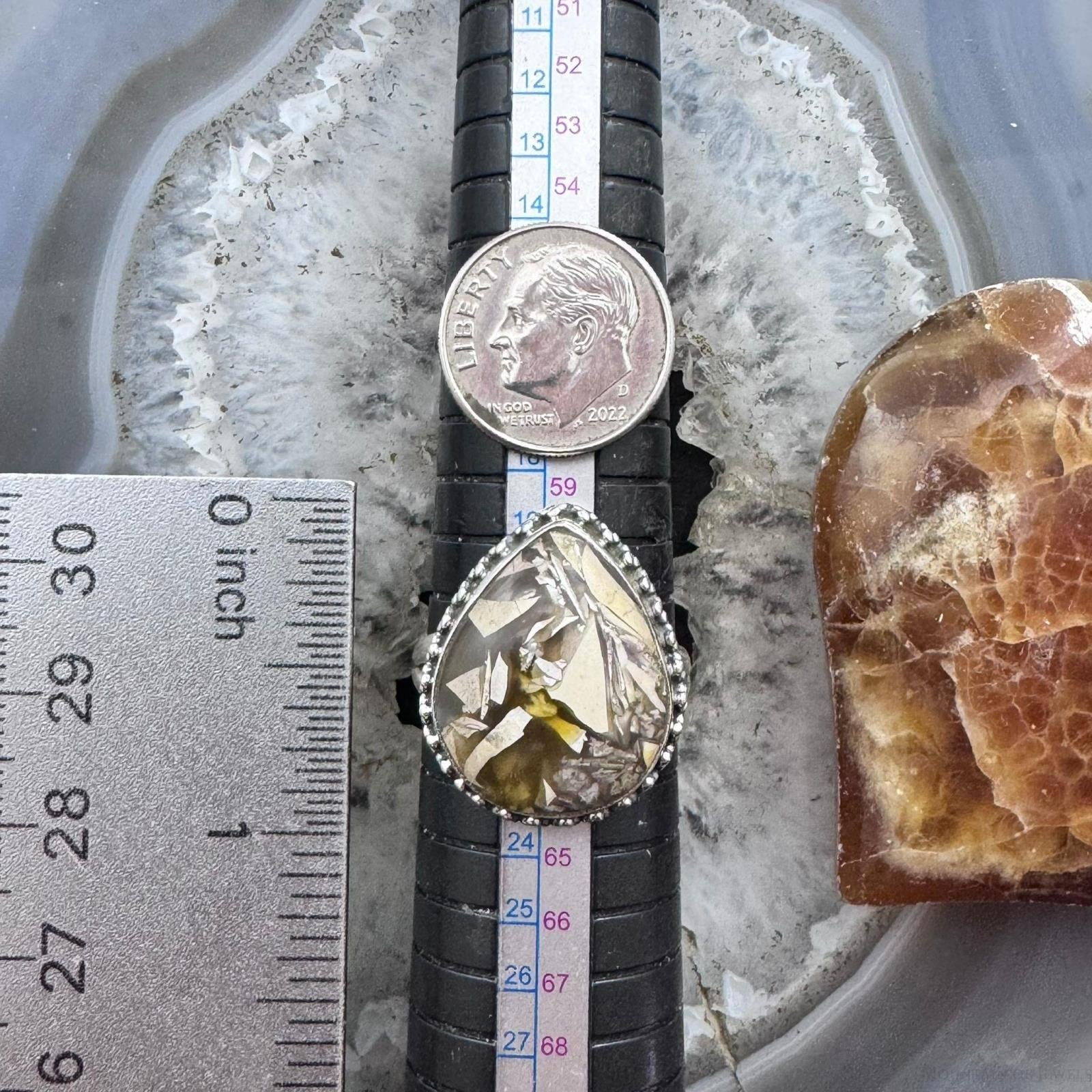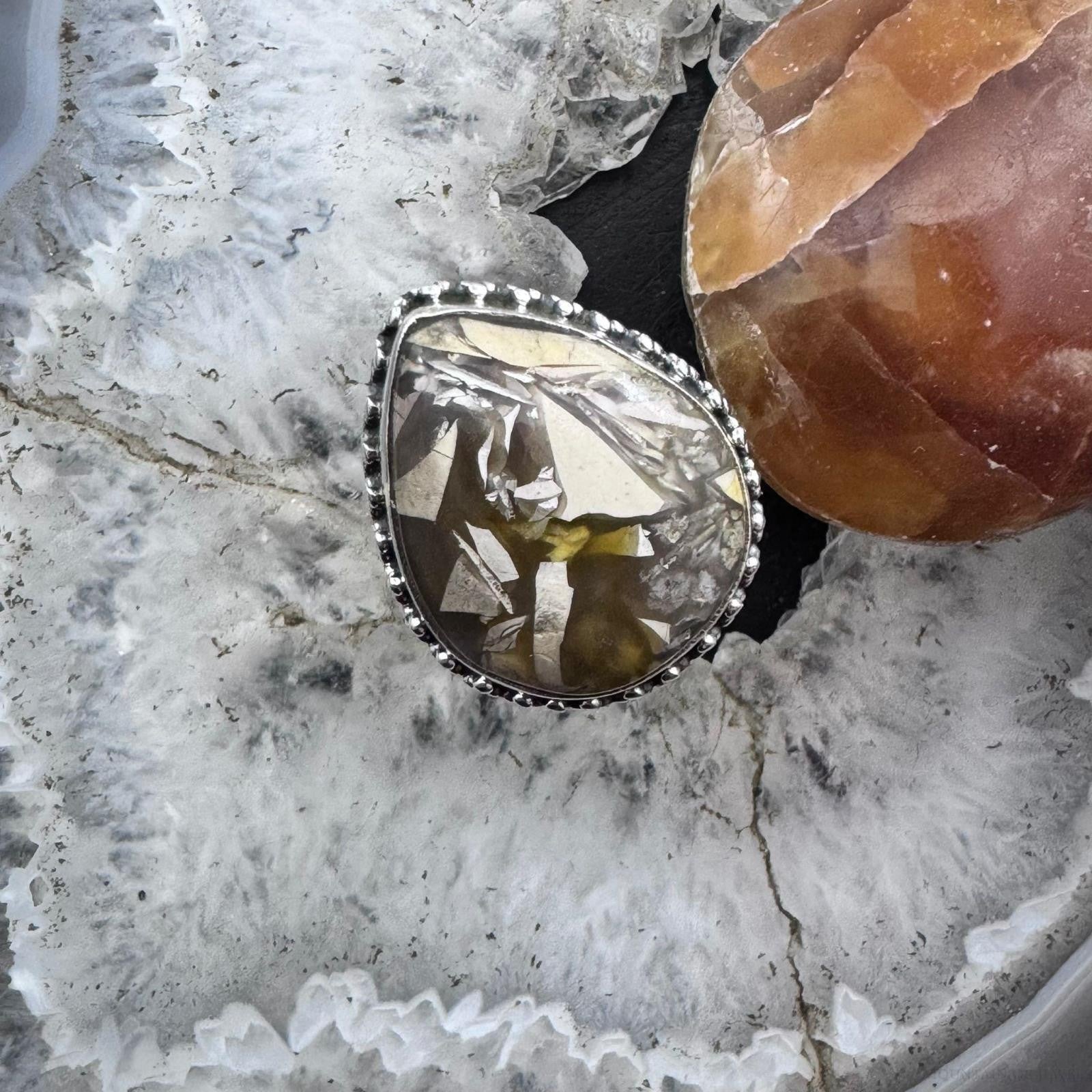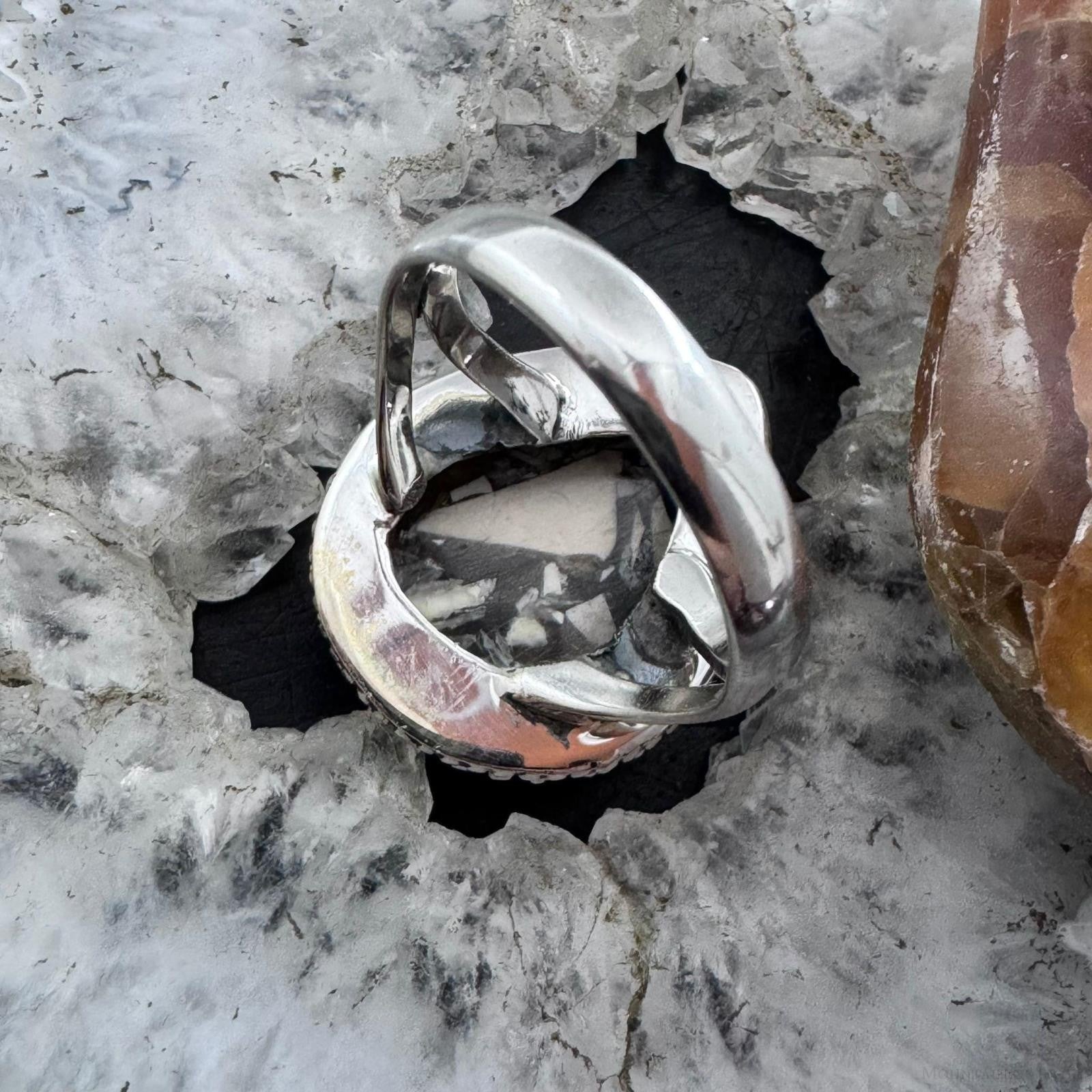 Sterling Silver Southwestern Style Teardrop Peanut Wood Decorated Ring Size 10 For Women