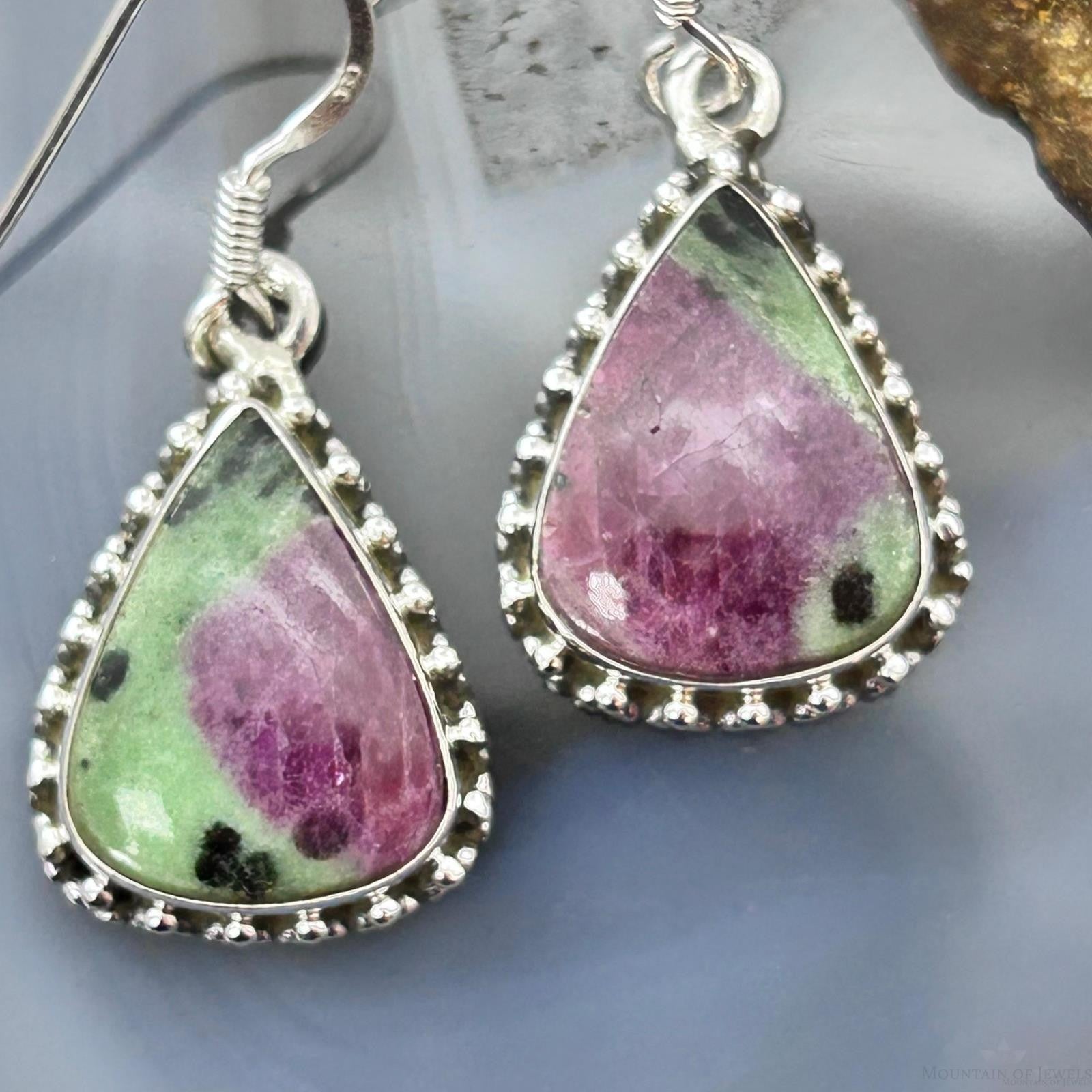 Sterling Silver Southwestern Style Teardrop Ruby Zoisite Dangle Earrings For Women
