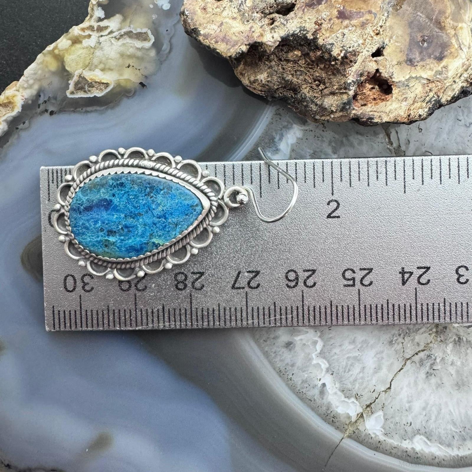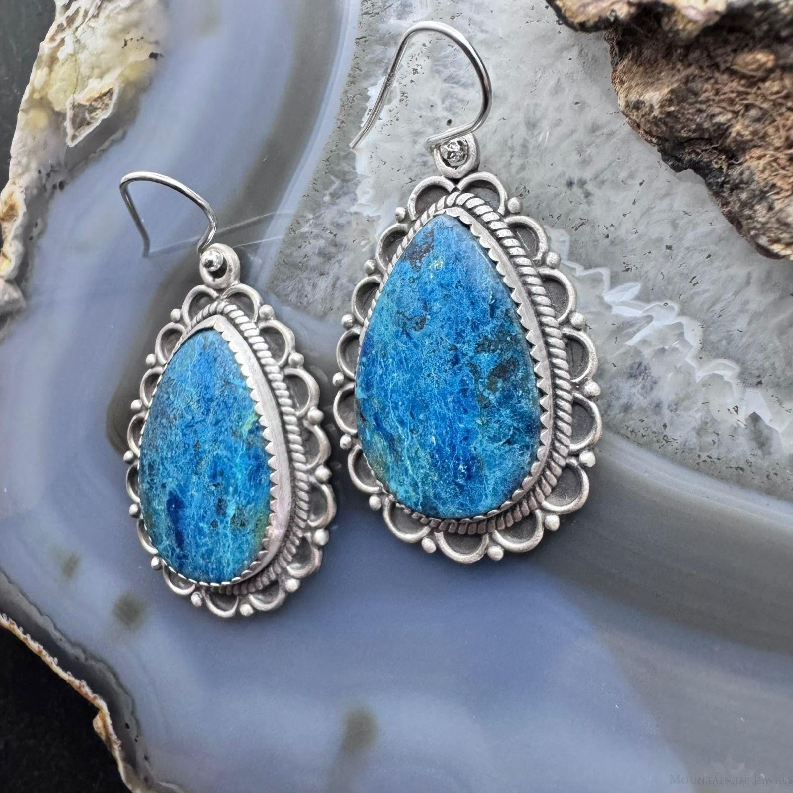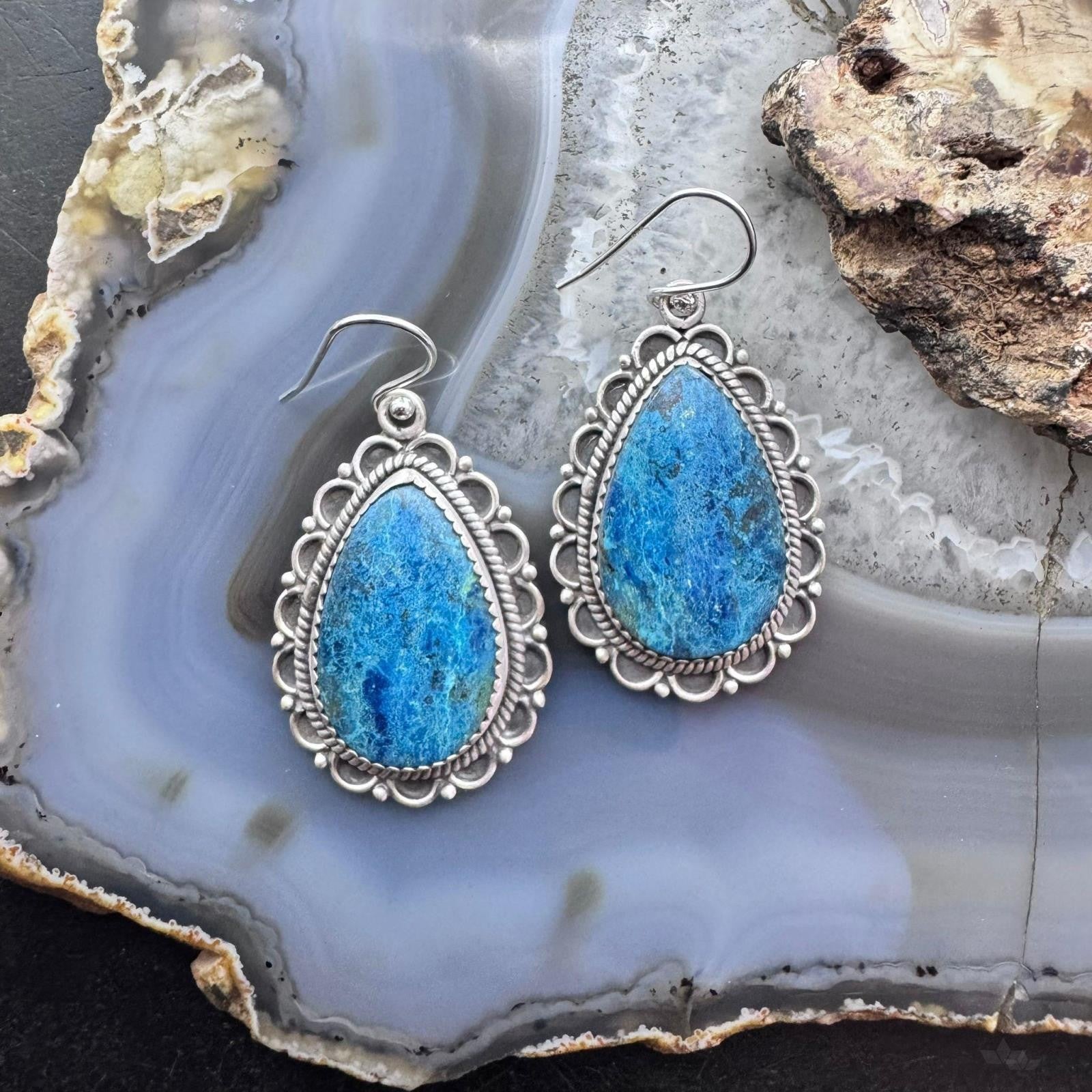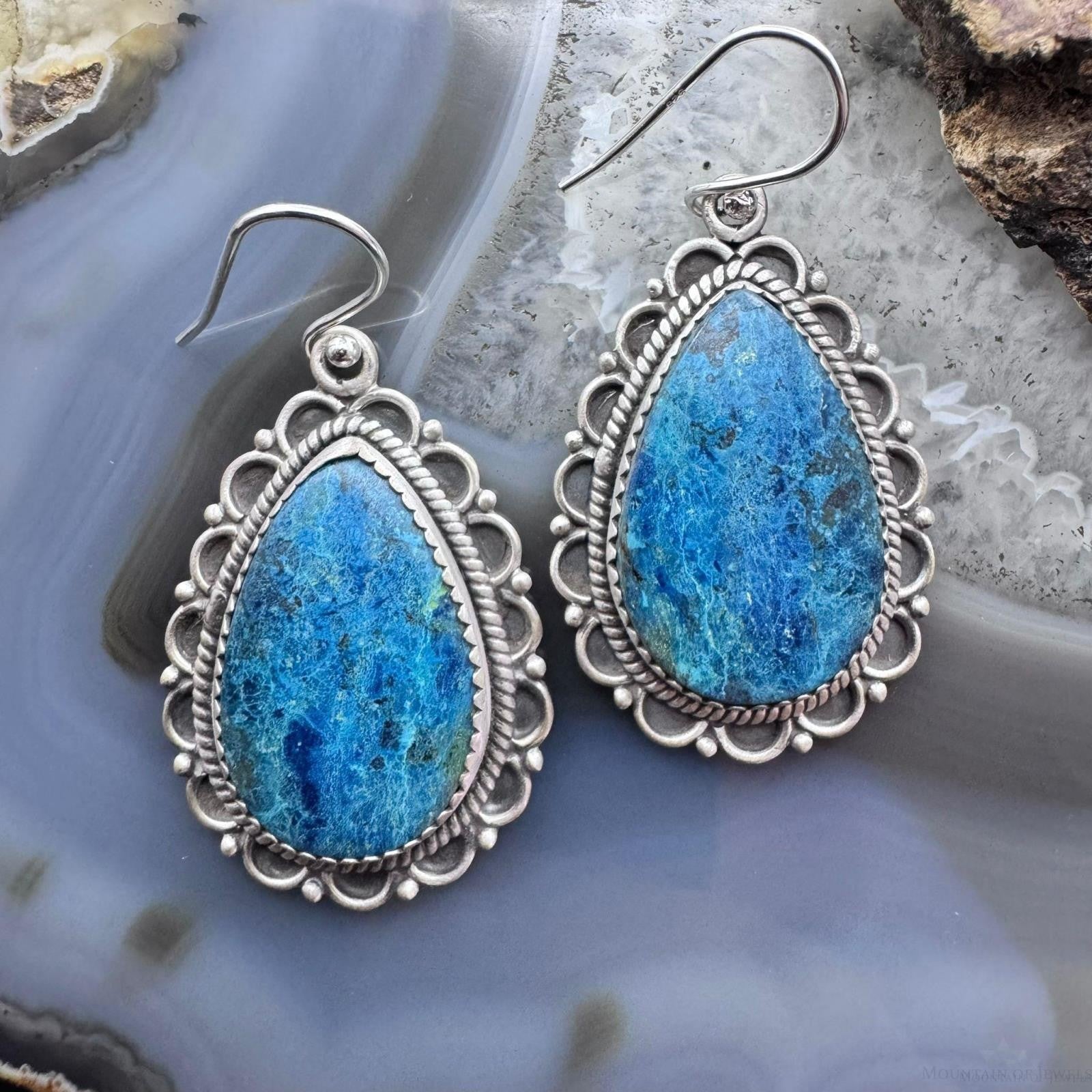 Sterling Silver Southwestern Style Teardrop Shattuckite Dangle Earrings For Women