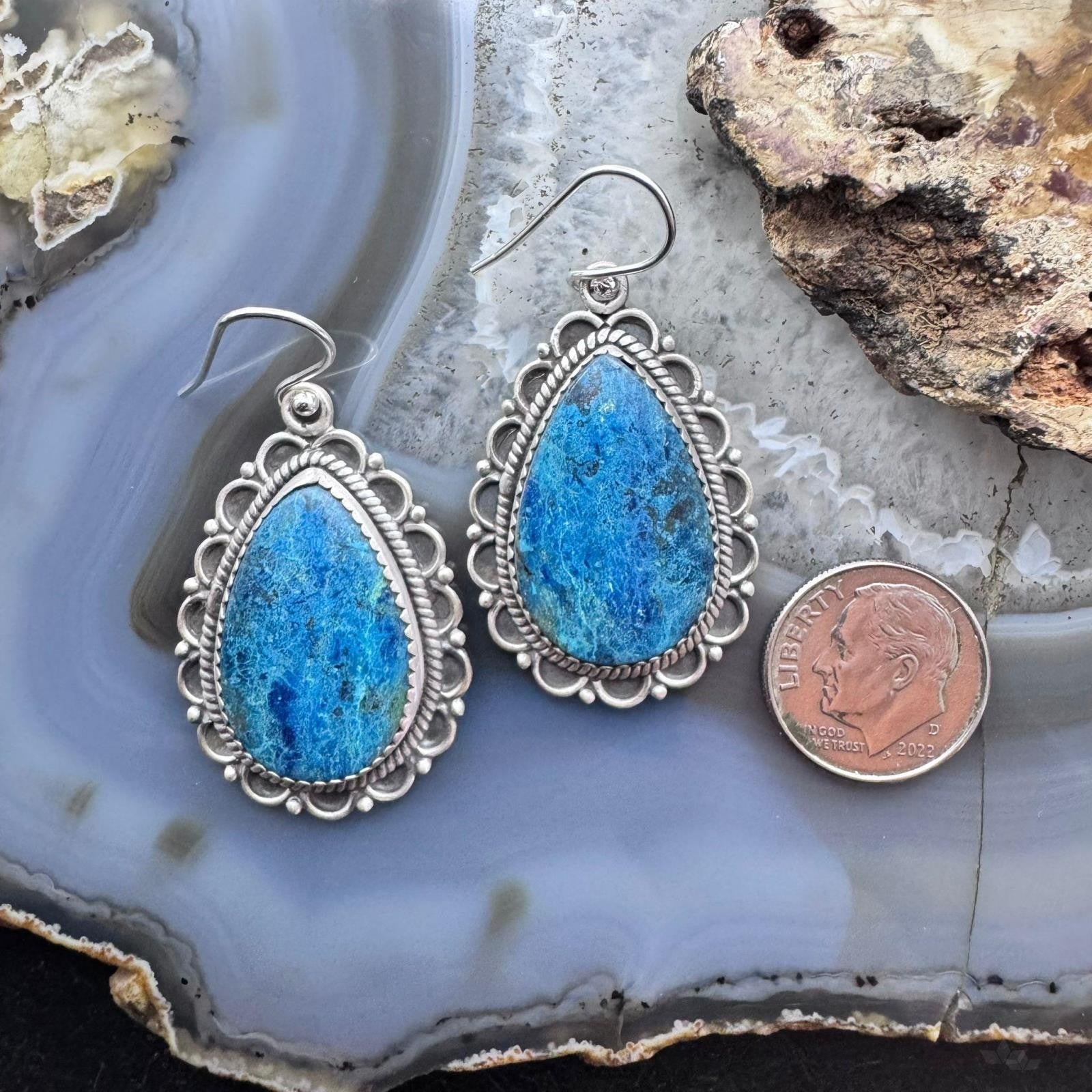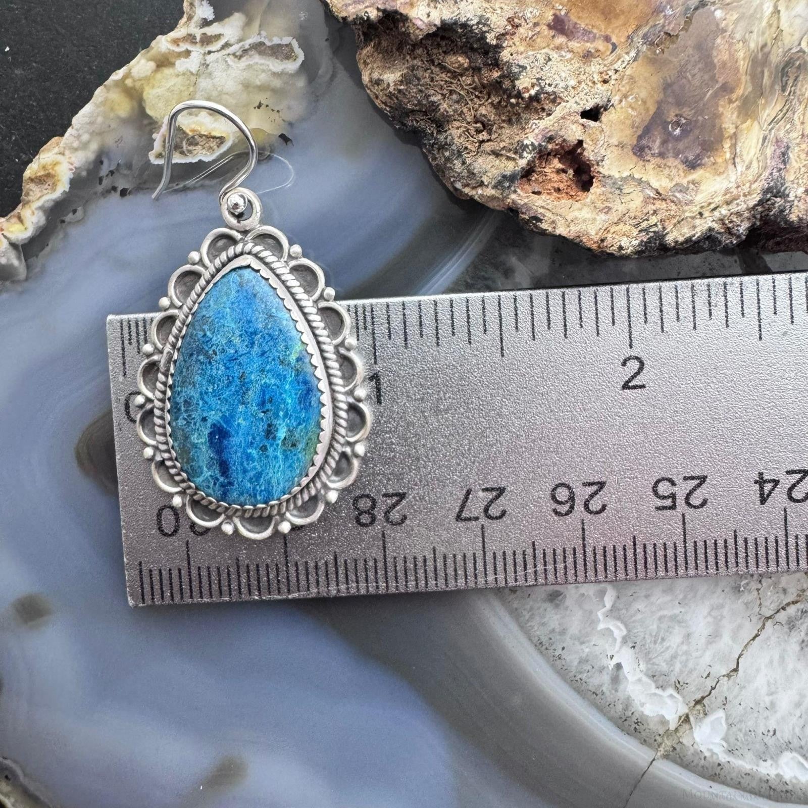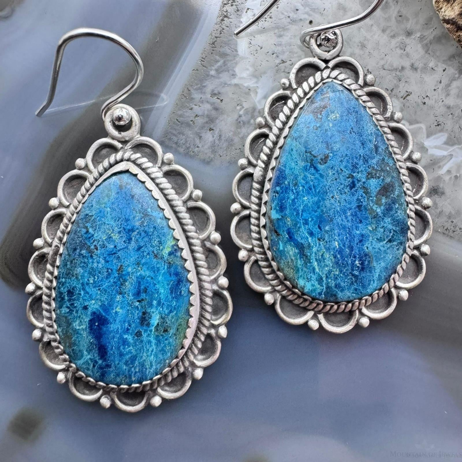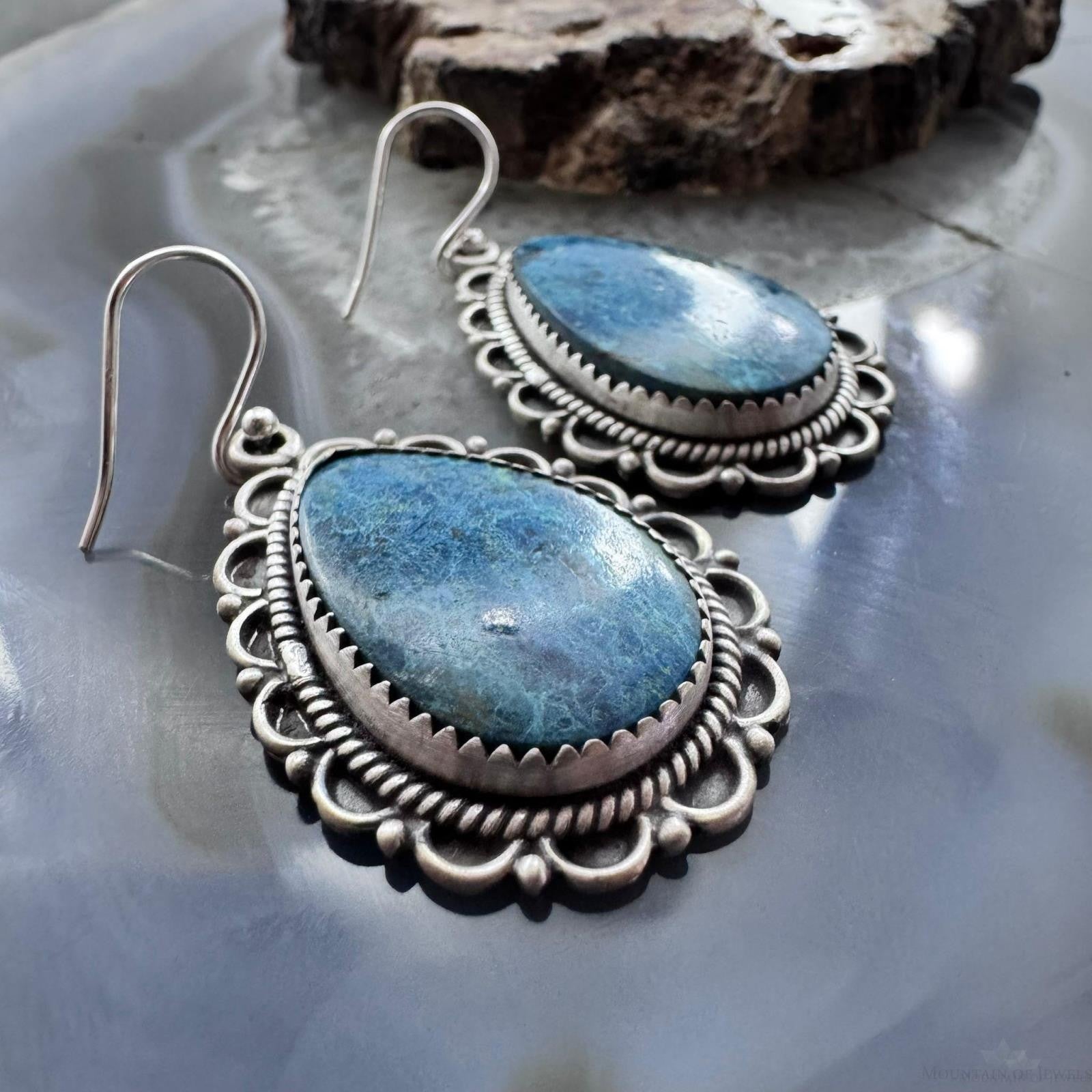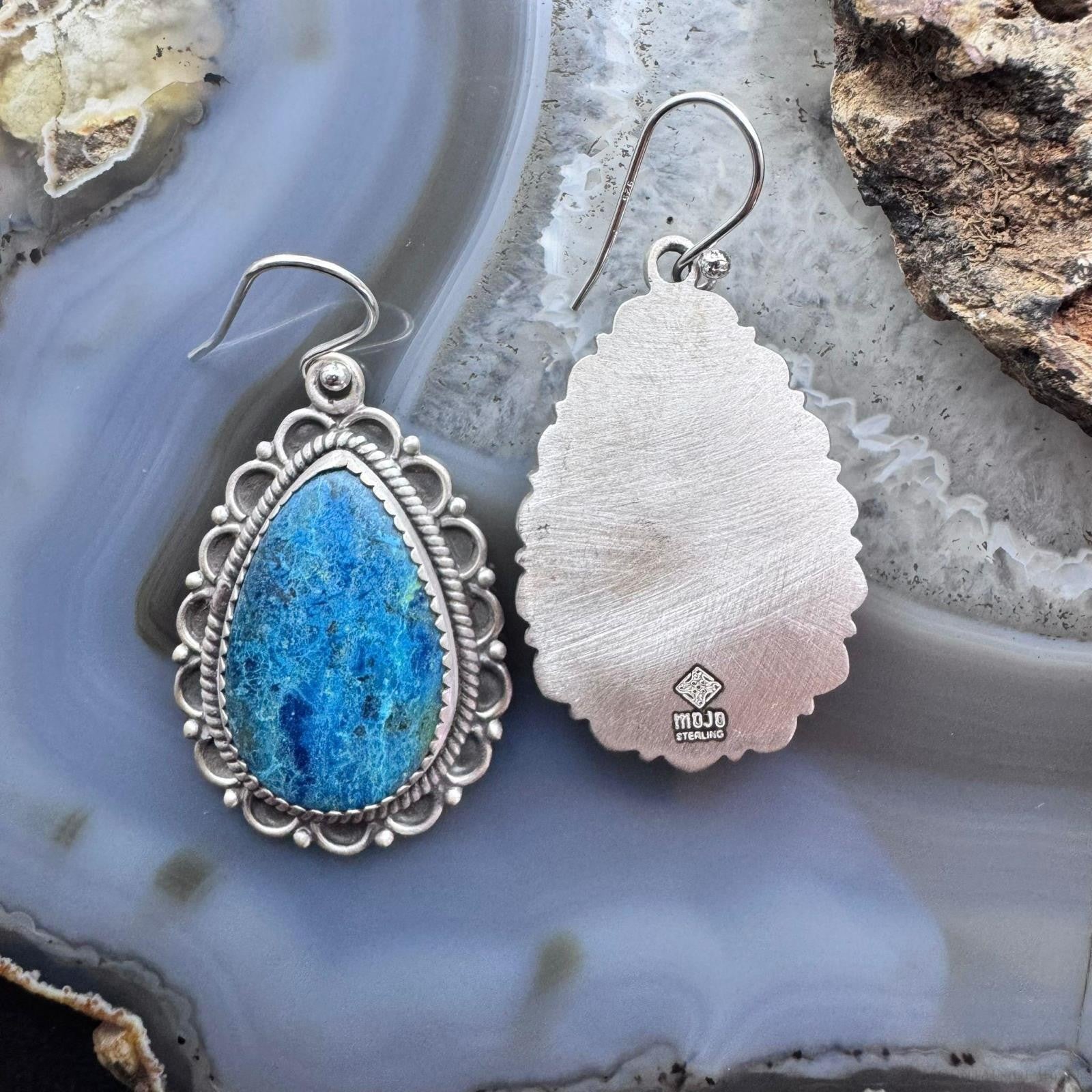 Sterling Silver Southwestern Style Teardrop Shattuckite Dangle Earrings For Women