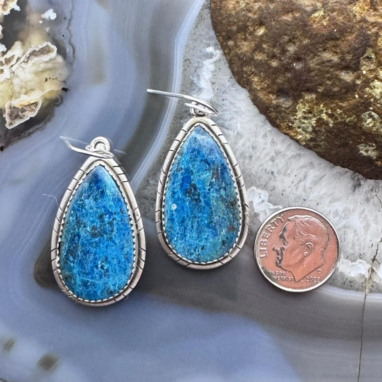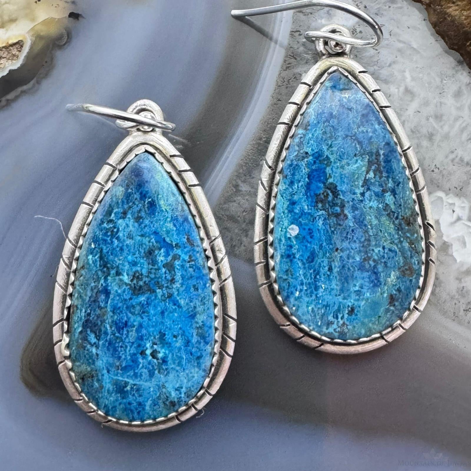 Sterling Silver Southwestern Style Teardrop Shattuckite Dangle Earrings For Women #2
