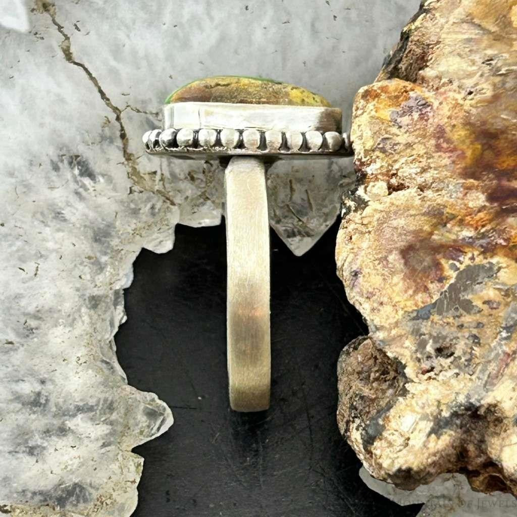 Sterling Silver Southwestern Style Teardrop Sonora Gold Turquoise Decorated Ring For Women.