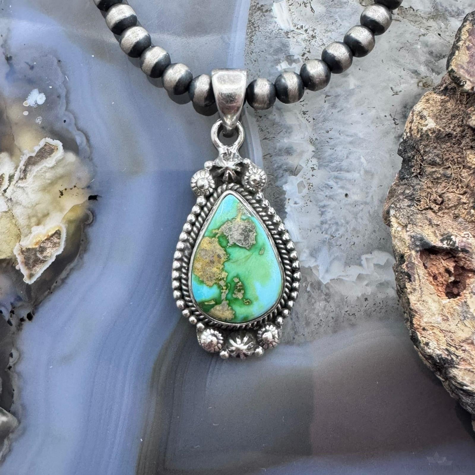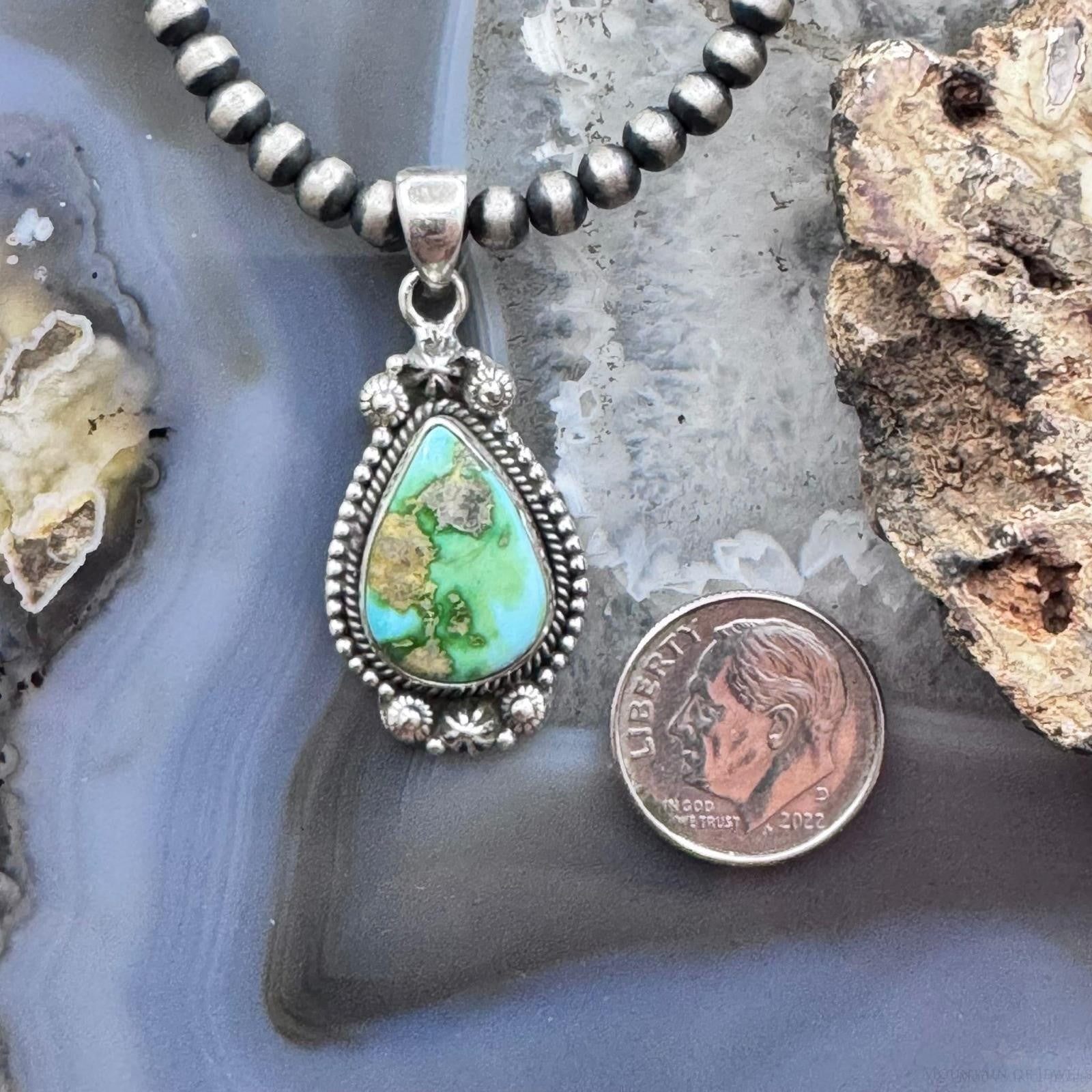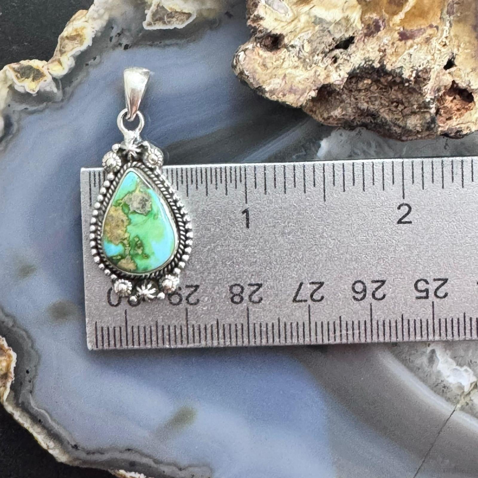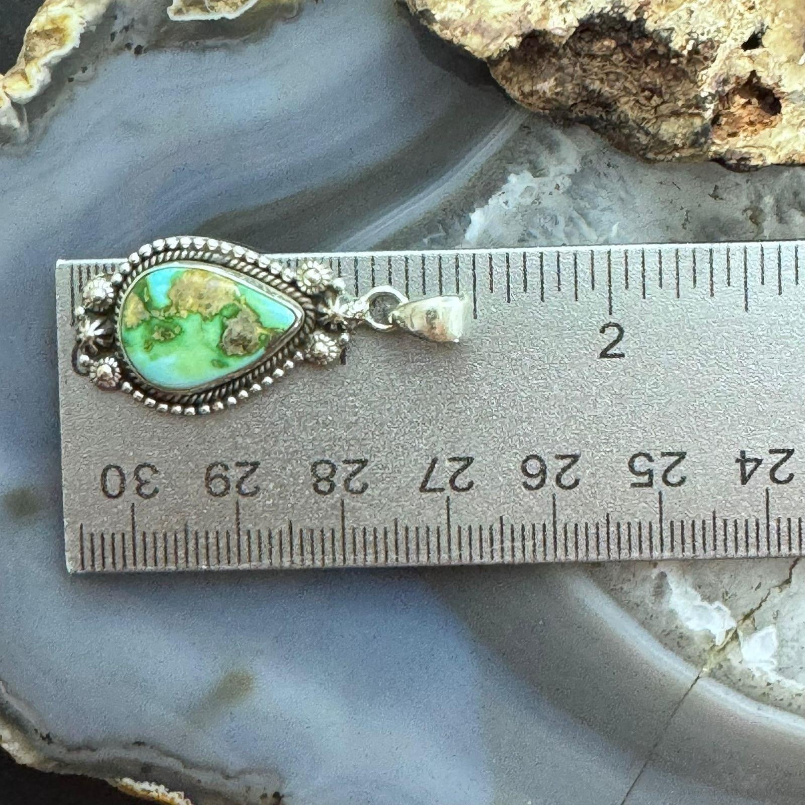 Sterling Silver Southwestern Style Teardrop Sonora Gold Turquoise Decorated Pendant For Women #1